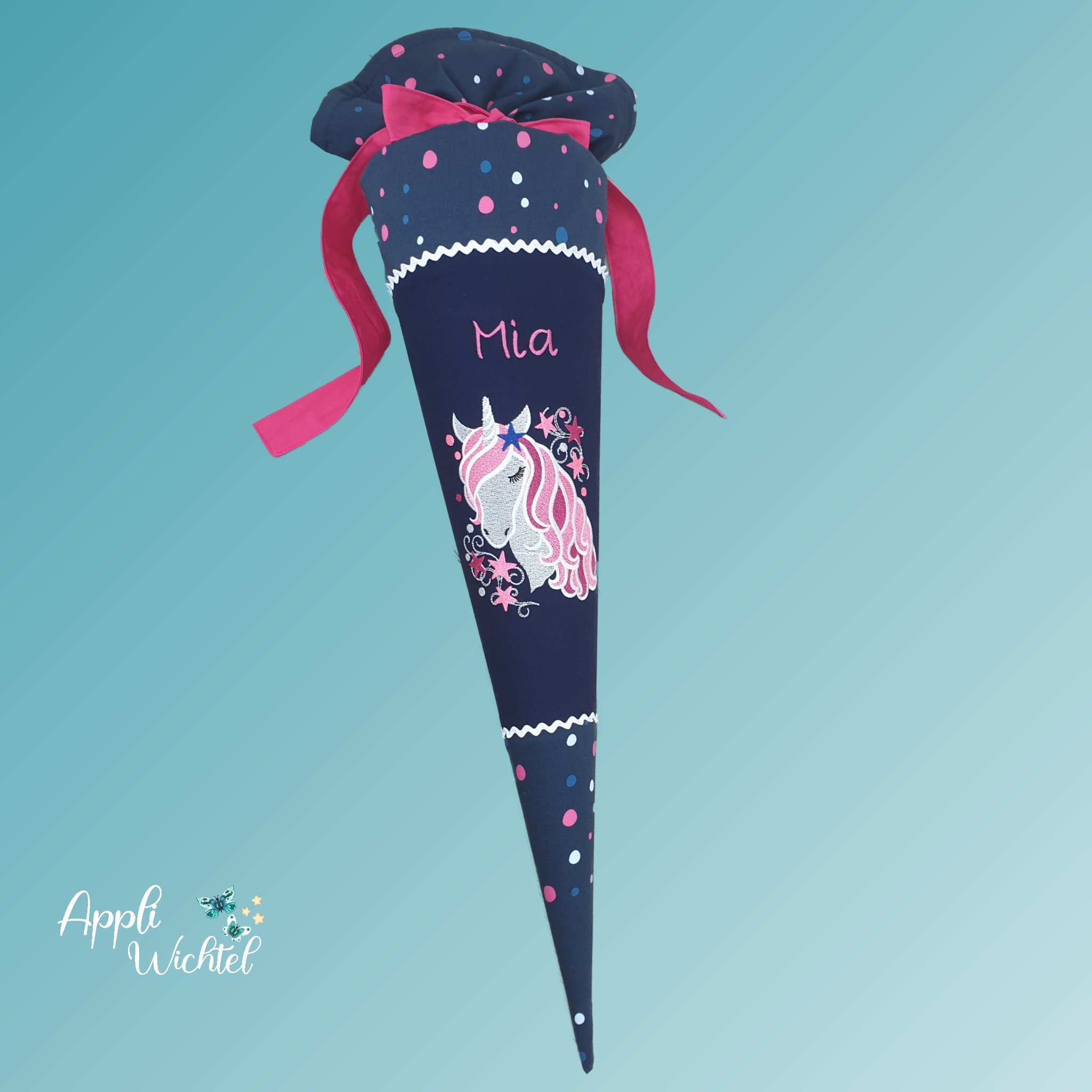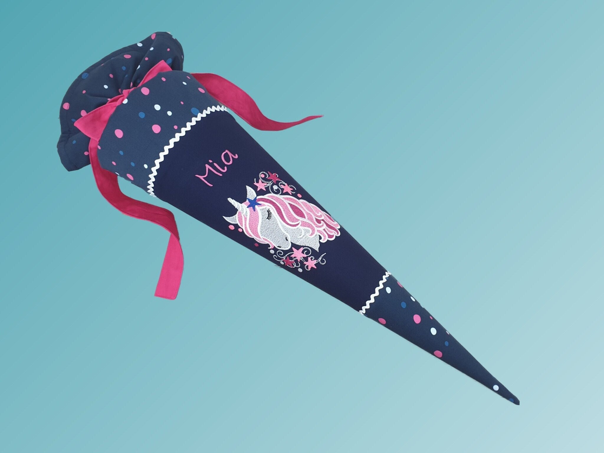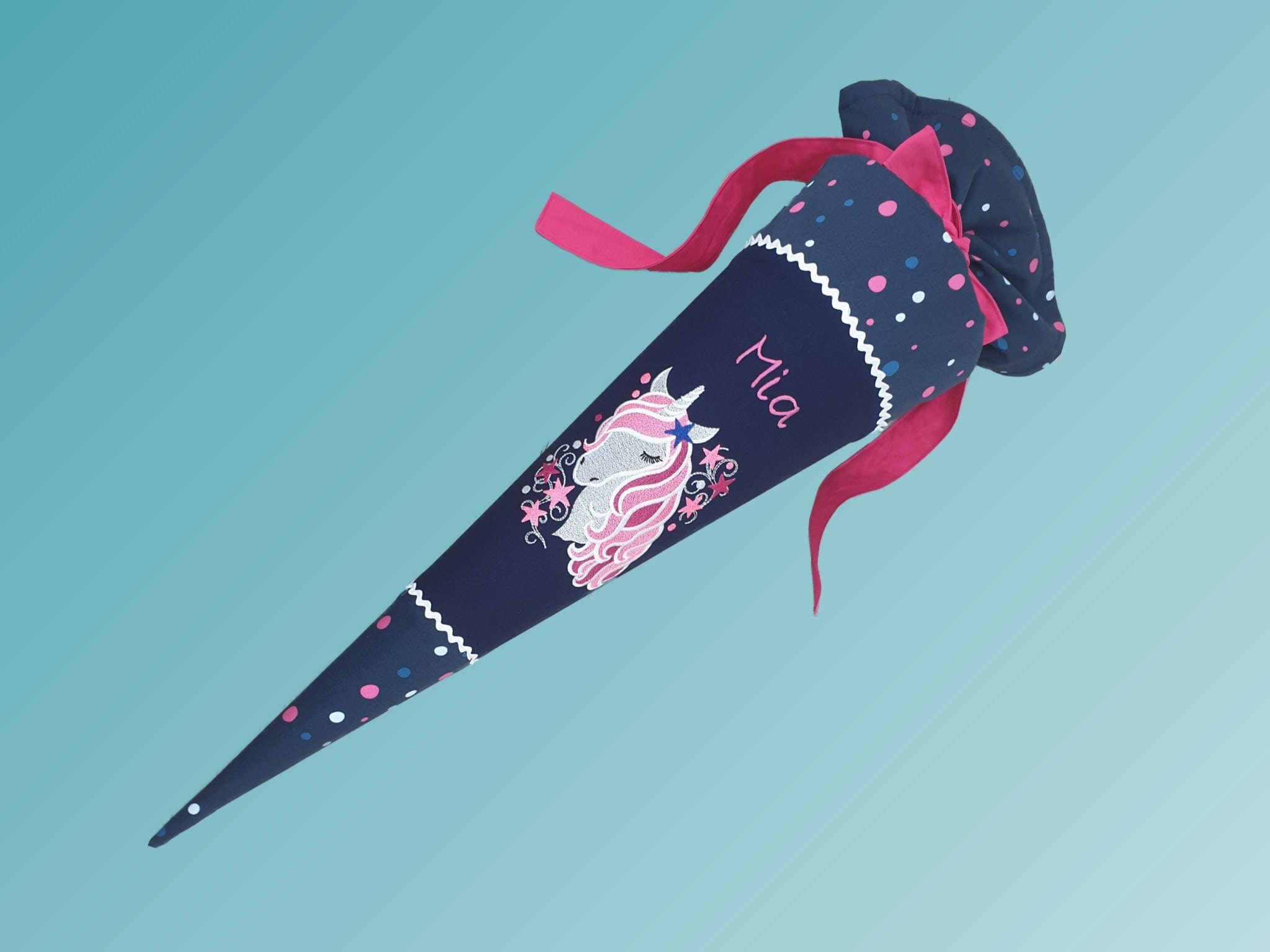 Jede Schultüte wird mit einem gestickten Motiv und dem Namen deines Kindes individuell gestaltet. Auf Wunsch fügen wir auch das Datum des ersten Schultages hinzu.