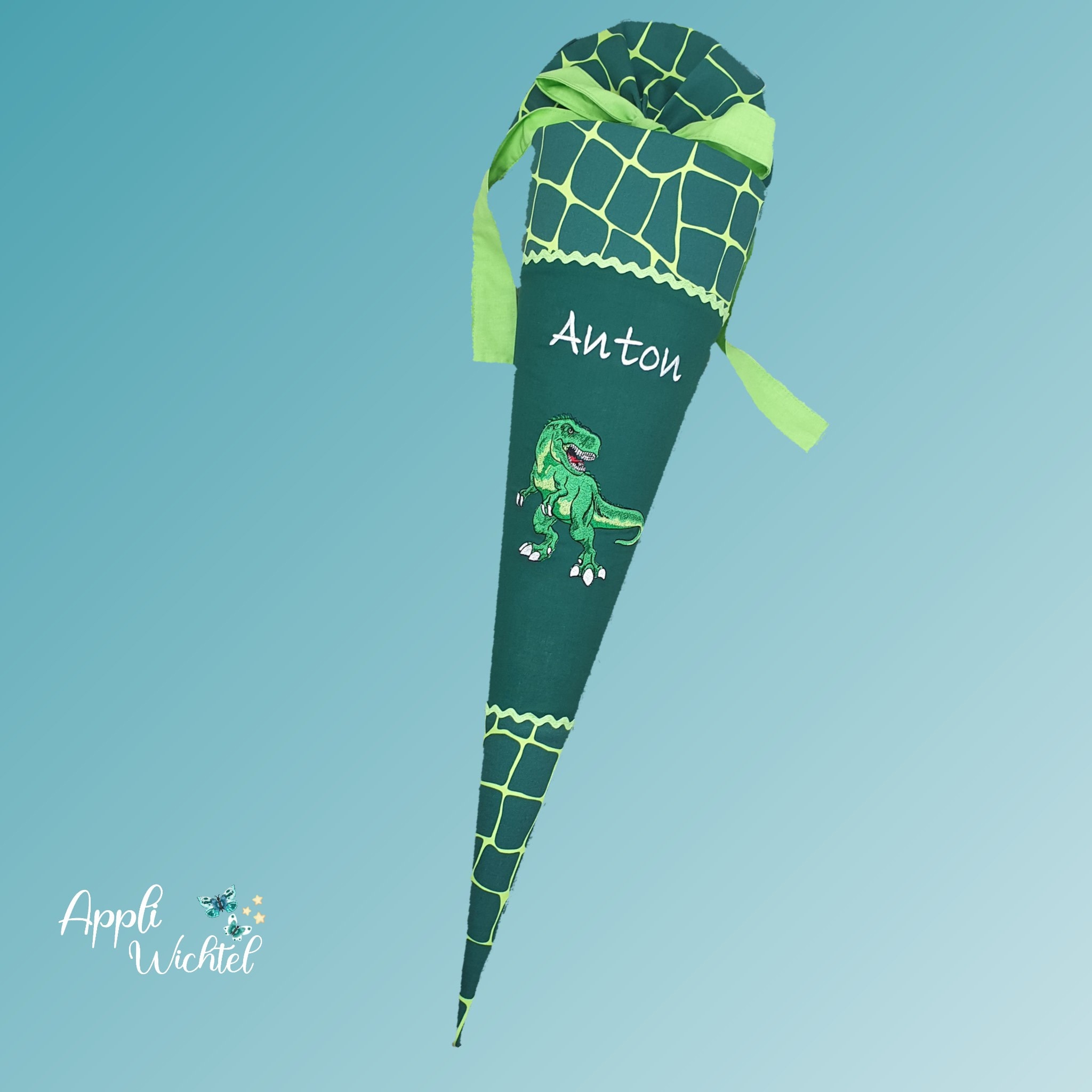 Jede Schultüte wird mit einem gestickten Motiv und dem Namen deines Kindes individuell gestaltet. Auf Wunsch fügen wir auch das Datum des ersten Schultages hinzu.