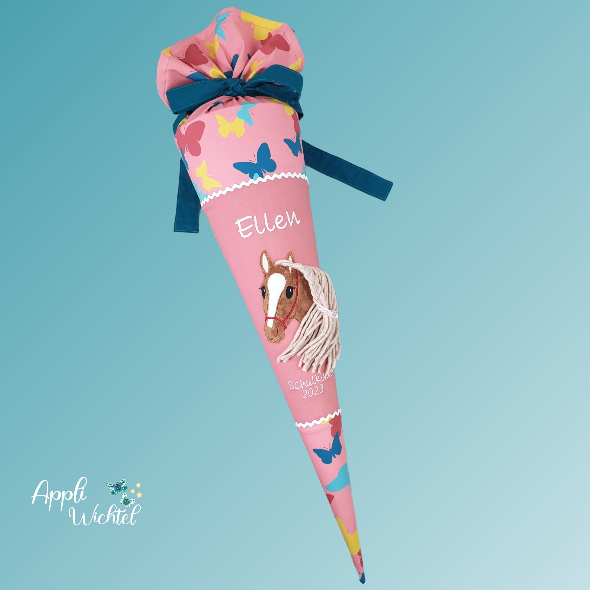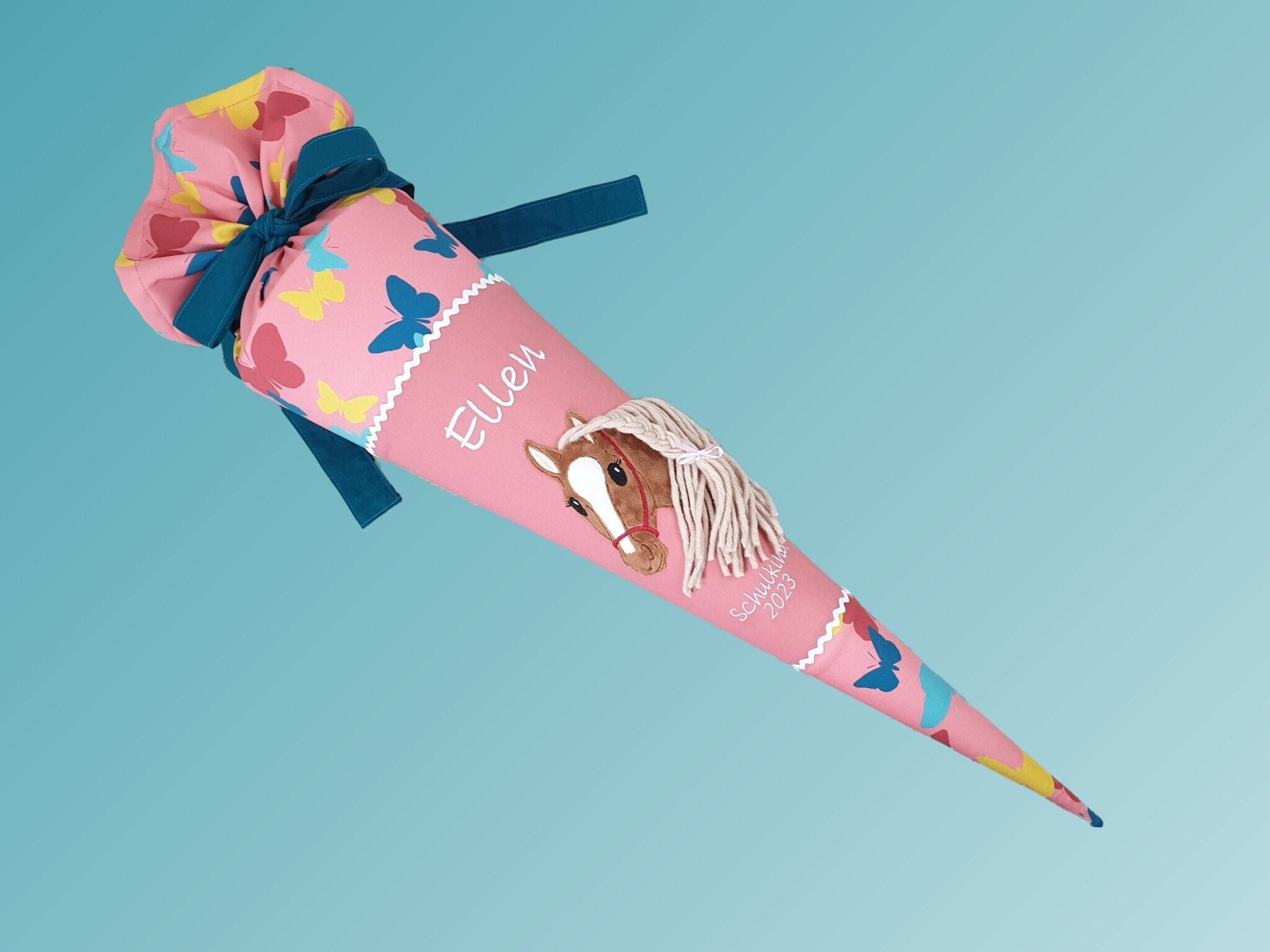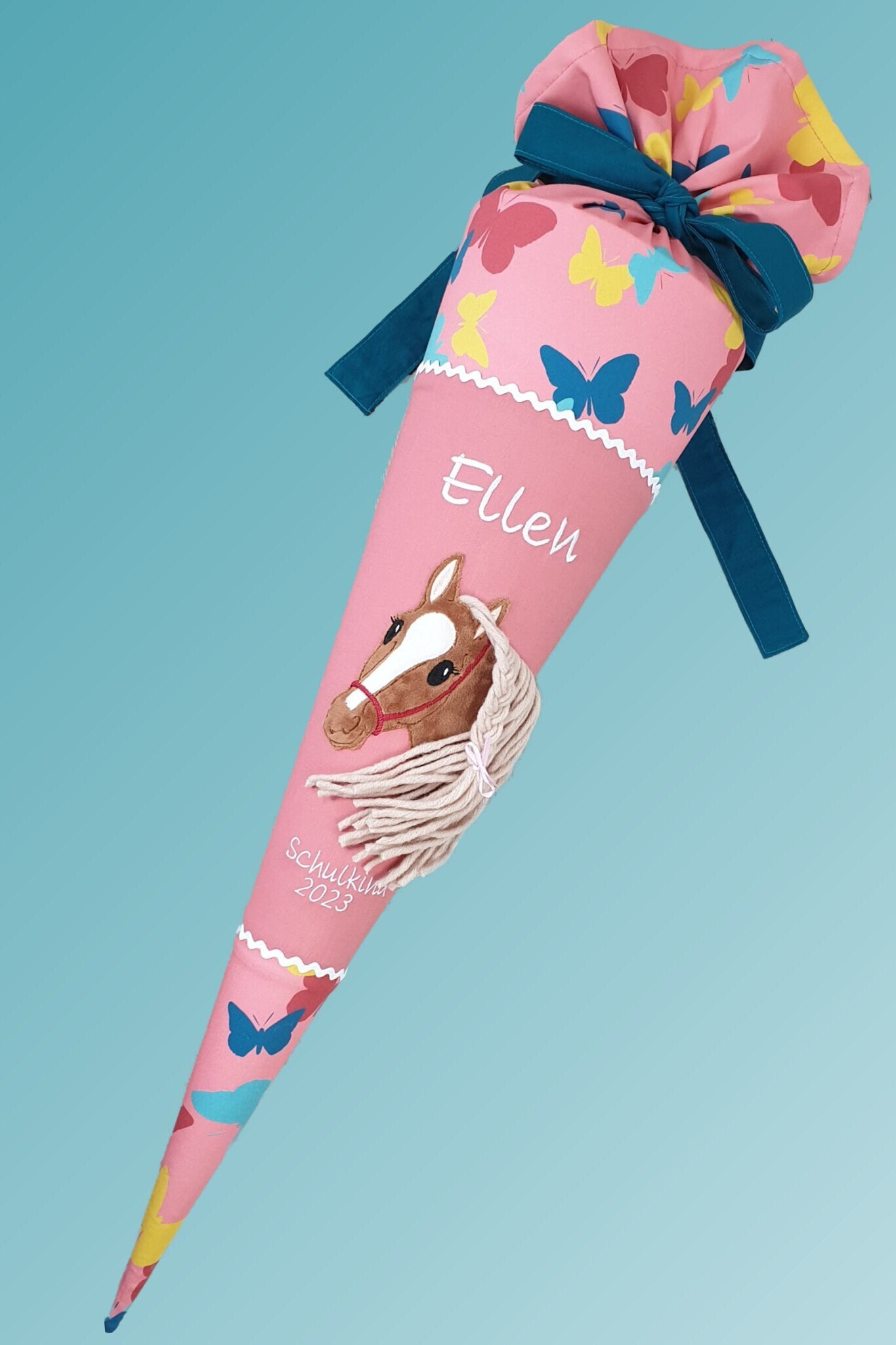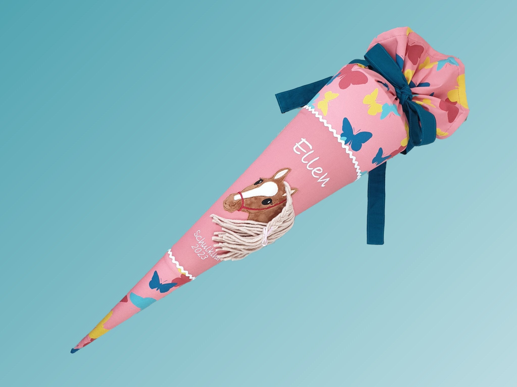 Schultüte oder 85 cm Schultüte mit Pferd und Namen farblich auf den Ergobag Zitronenfaltbär Schulranzen abgestimmt.