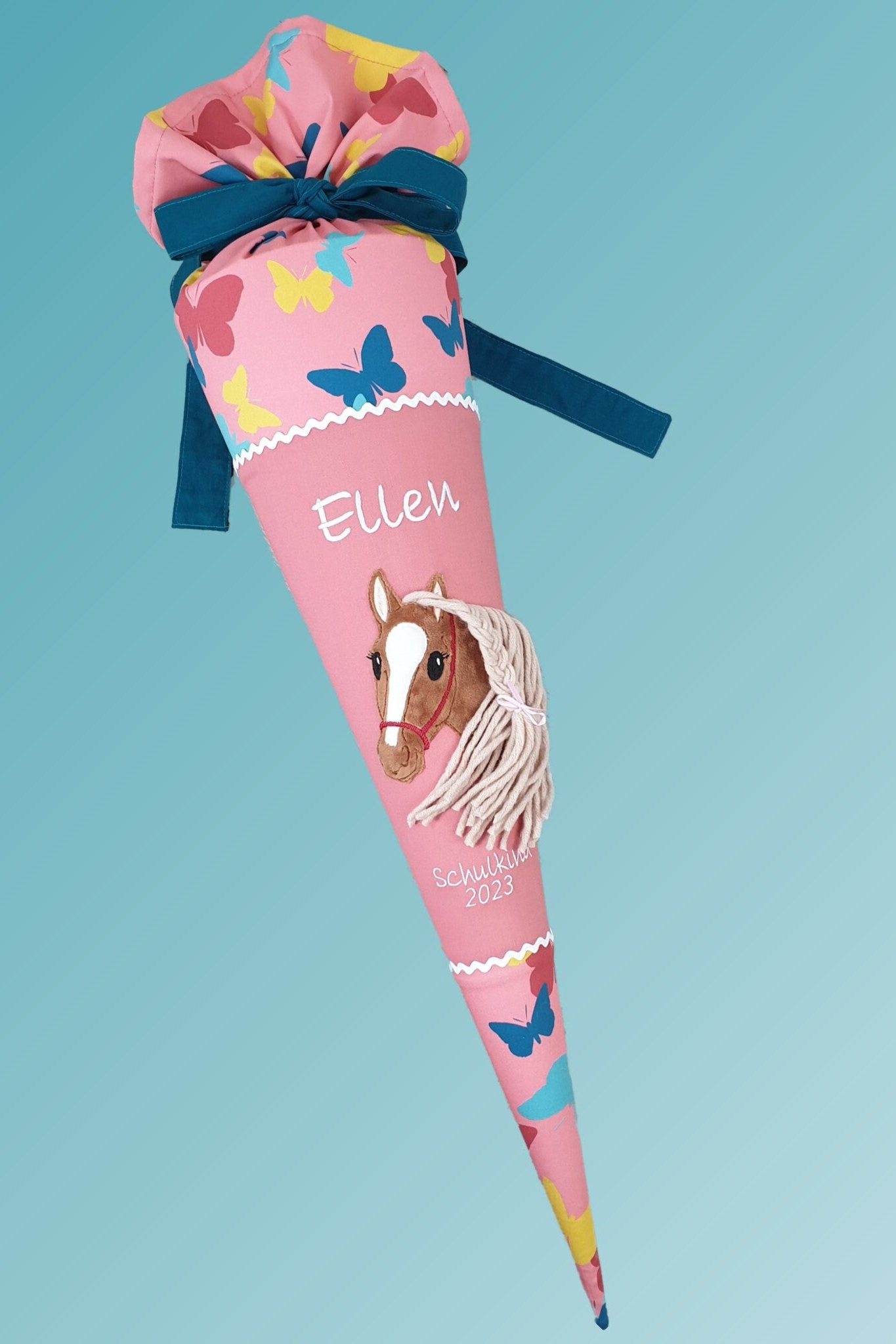 Jede Schultüte wird mit einem gestickten Motiv und dem Namen deines Kindes individuell gestaltet. Auf Wunsch fügen wir auch das Datum des ersten Schultages hinzu.