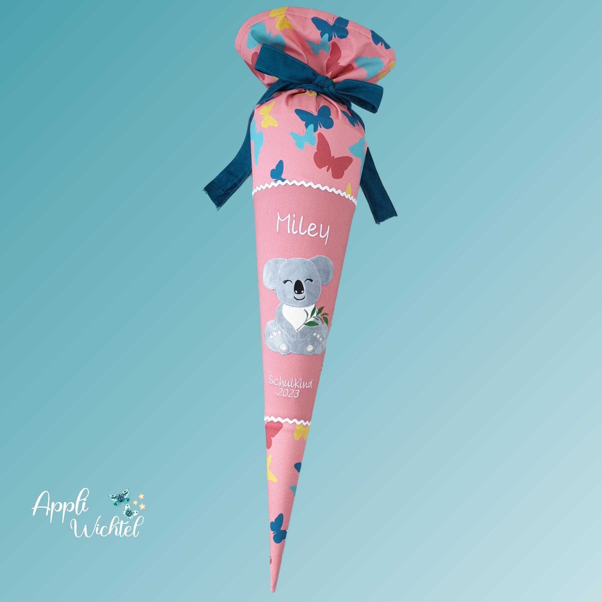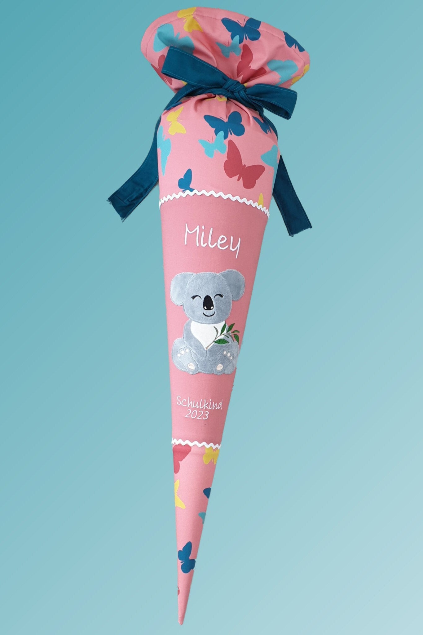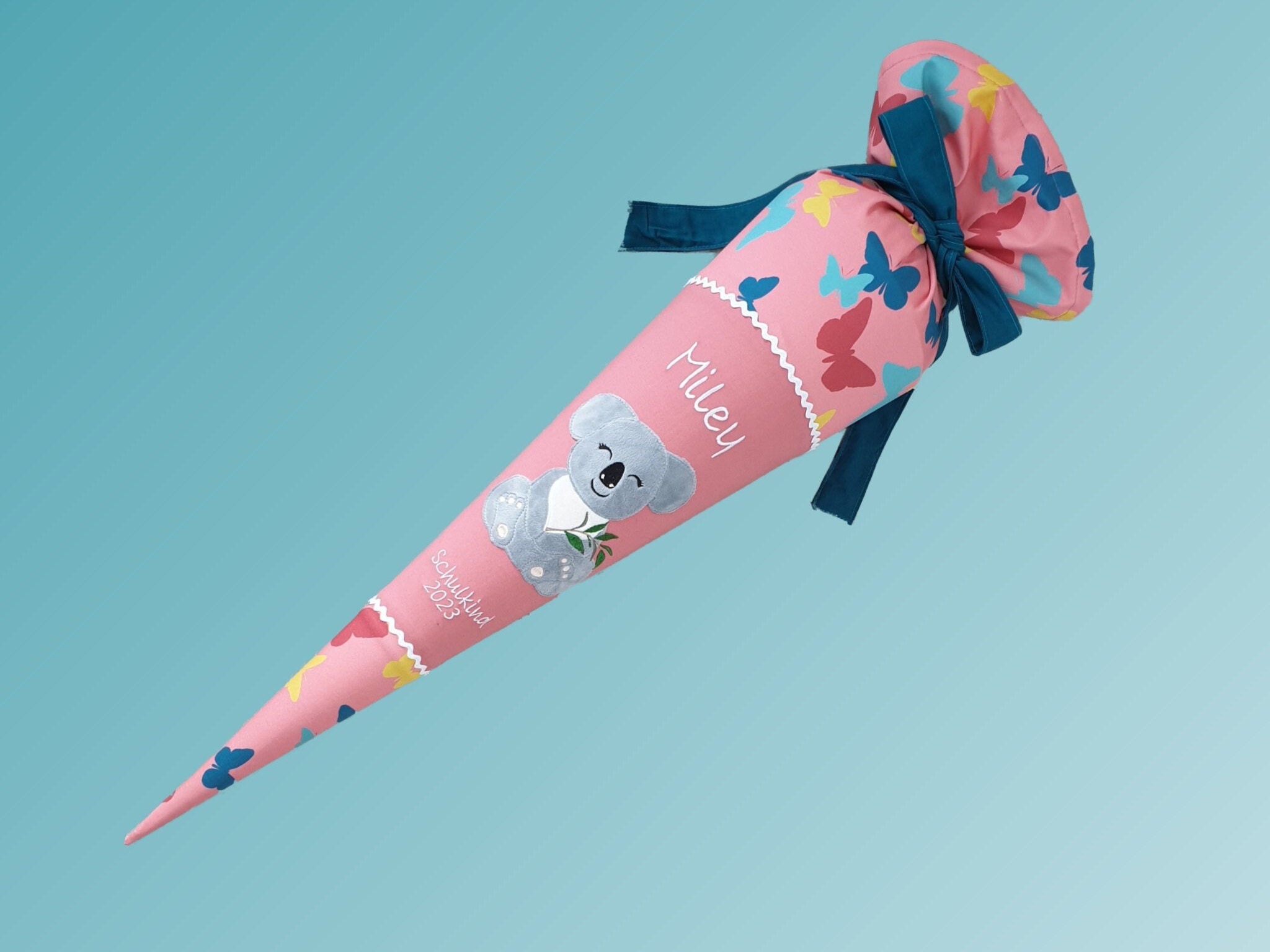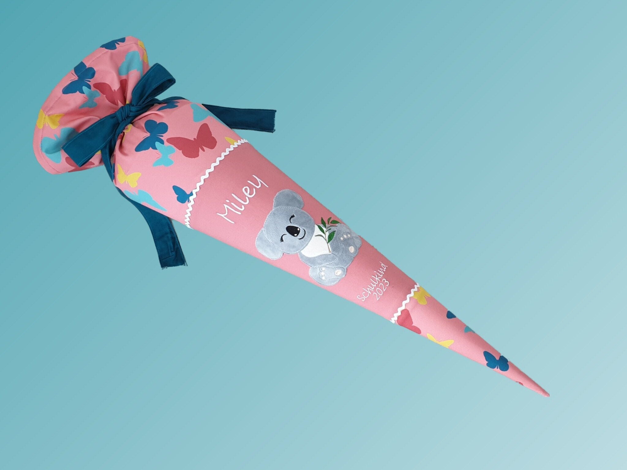 Jede Schultüte wird mit einem gestickten Motiv und dem Namen deines Kindes individuell gestaltet. Auf Wunsch fügen wir auch das Datum des ersten Schultages hinzu.