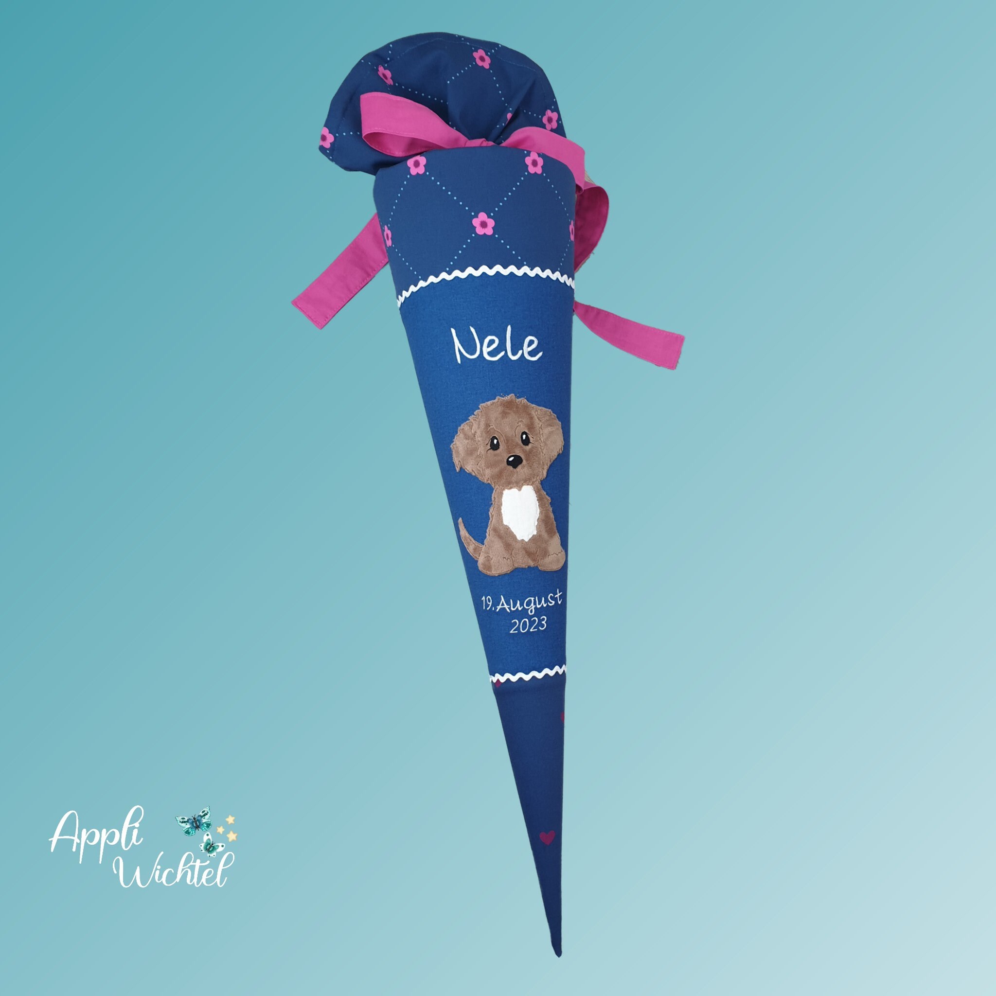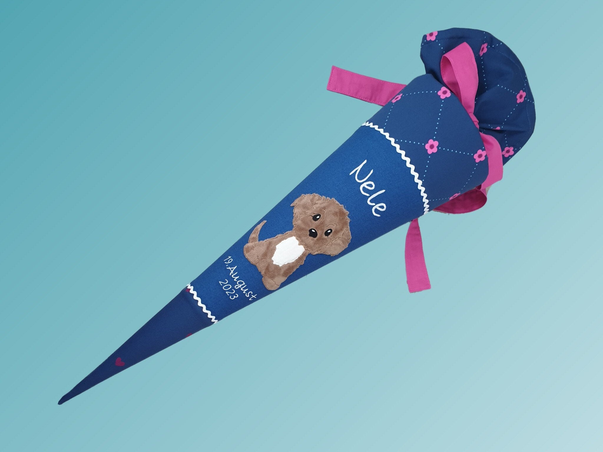 Schultüte mit Hund und Namen farblich auf den Step by Step Horse Lima Schulranzen abgestimmt.