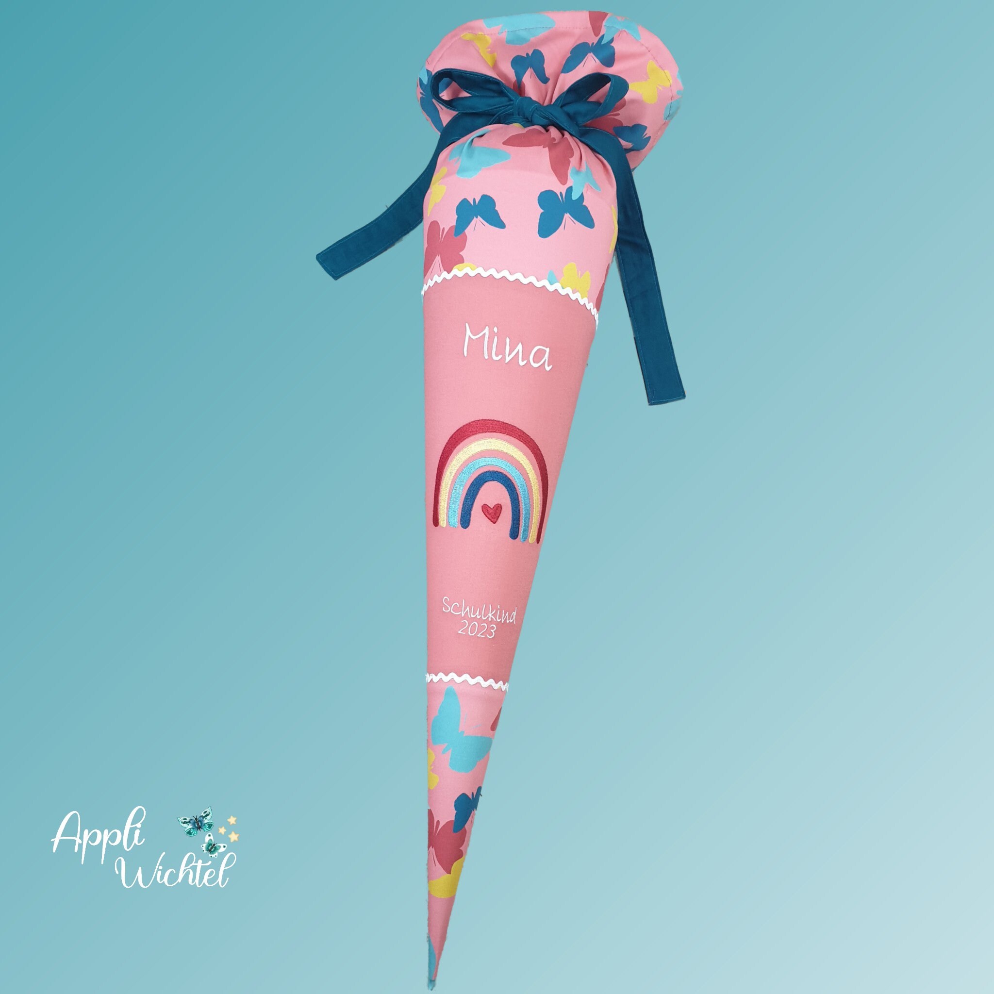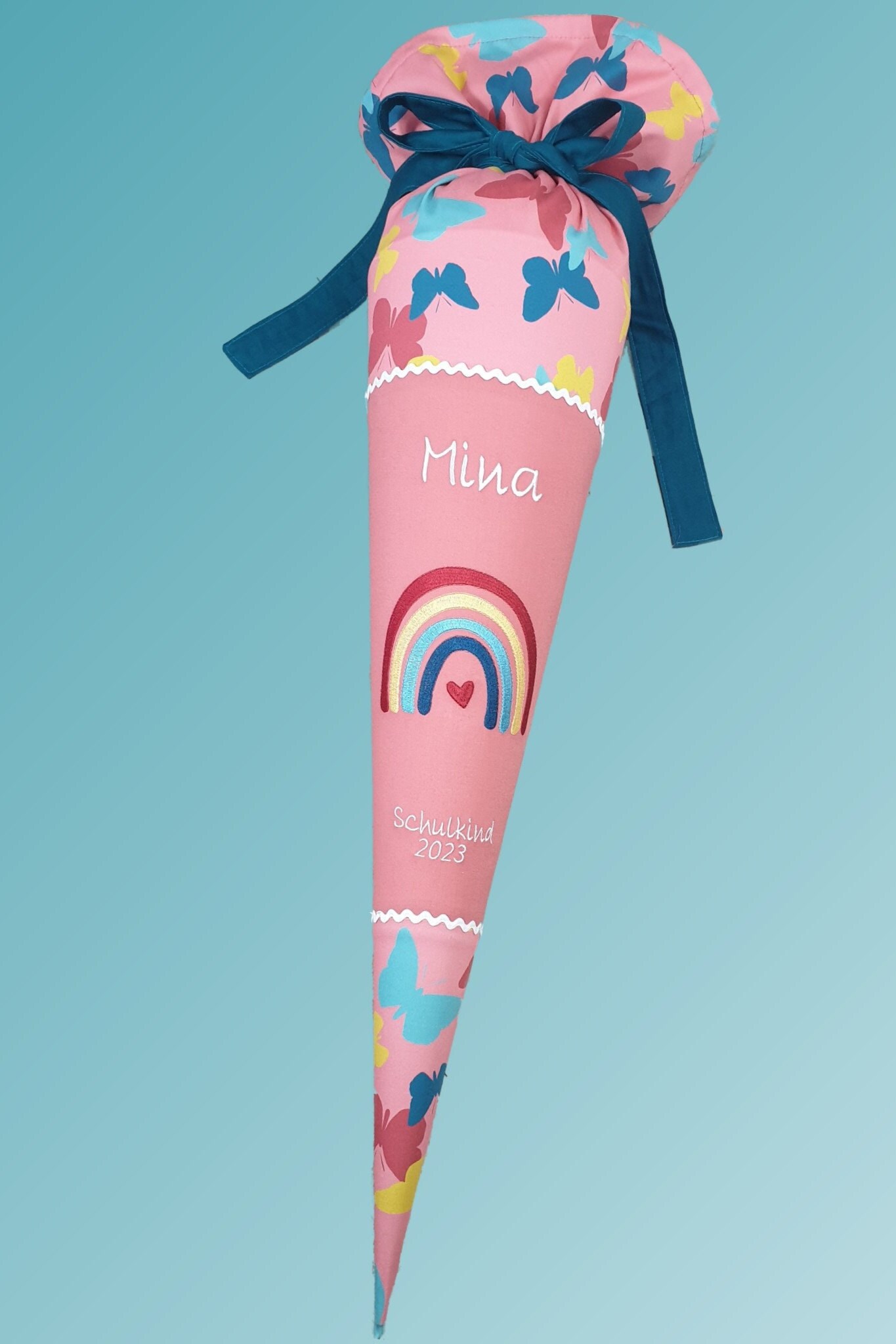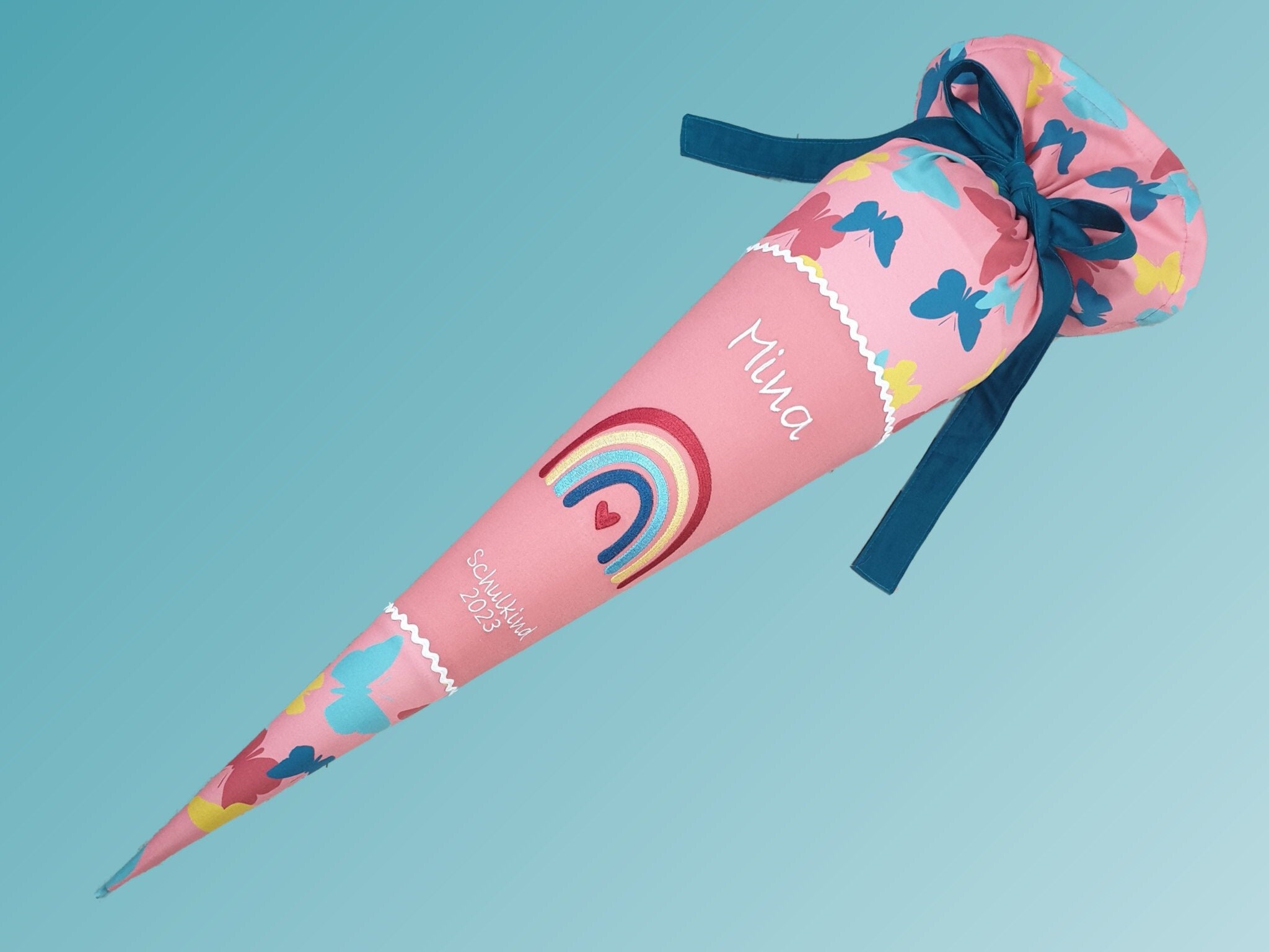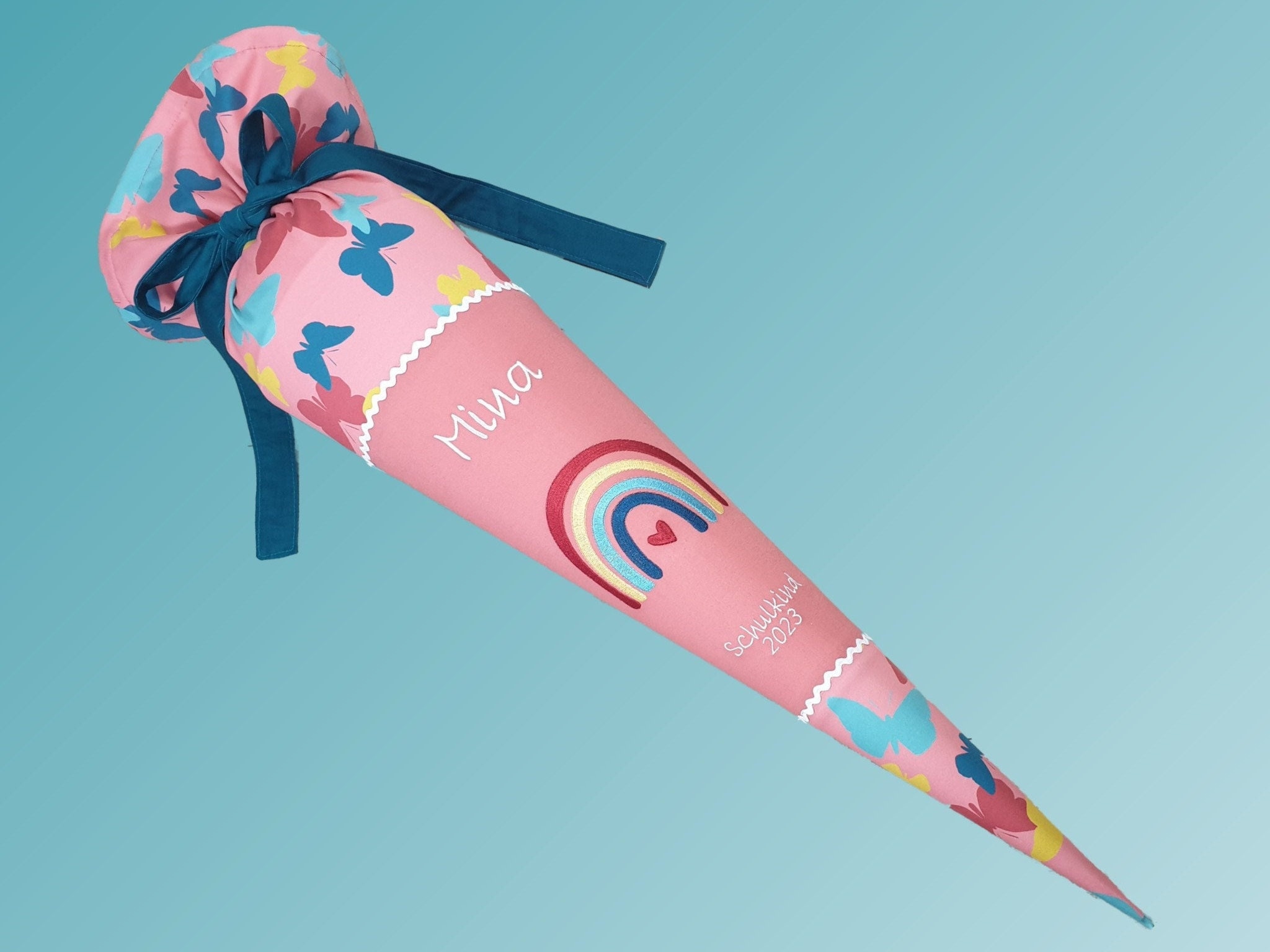 Jede Schultüte wird mit einem gestickten Motiv und dem Namen deines Kindes individuell gestaltet. Auf Wunsch fügen wir auch das Datum des ersten Schultages hinzu.