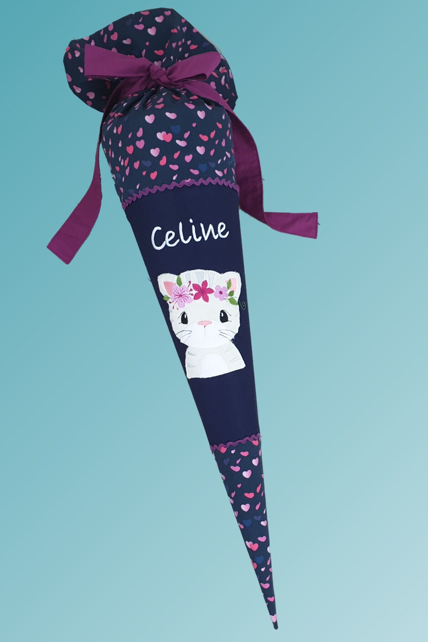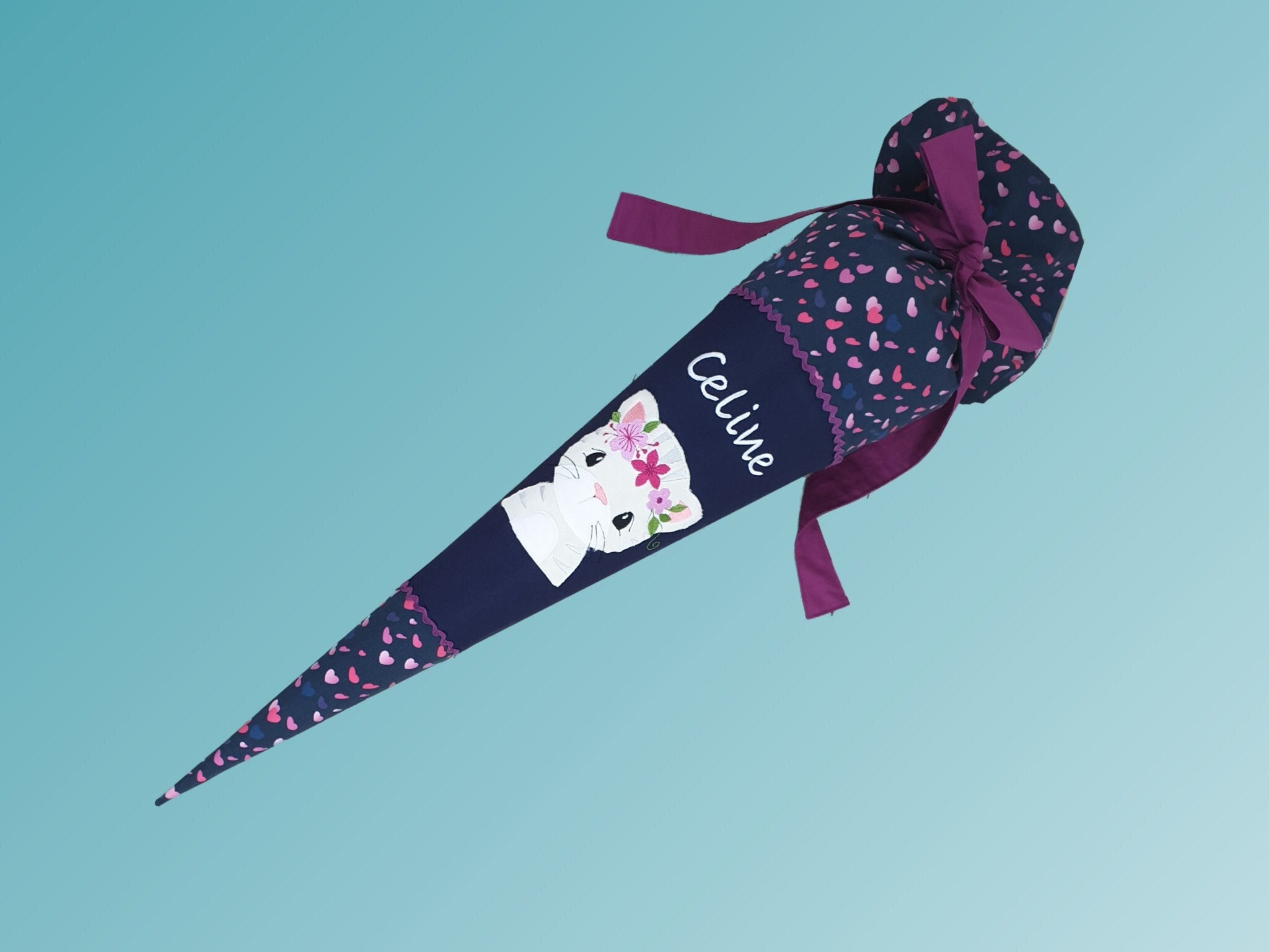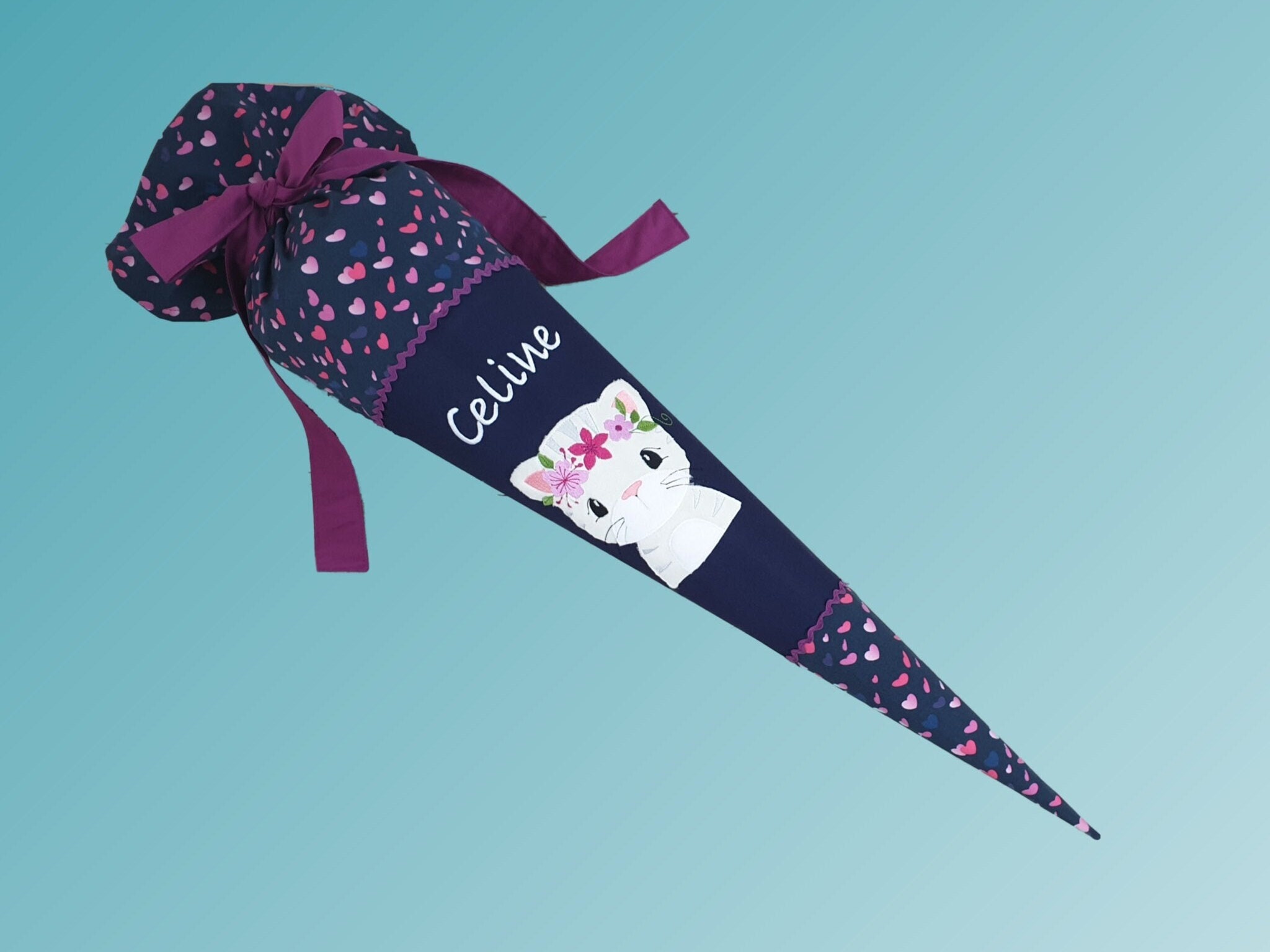 Schultüte mit Katze und Namen farblich auf den McNeill Dream Schulranzen abgestimmt.
