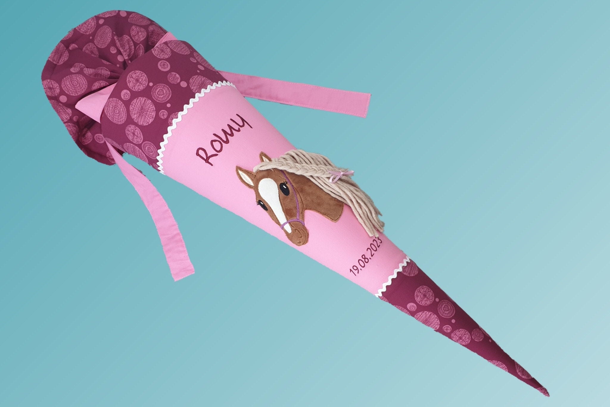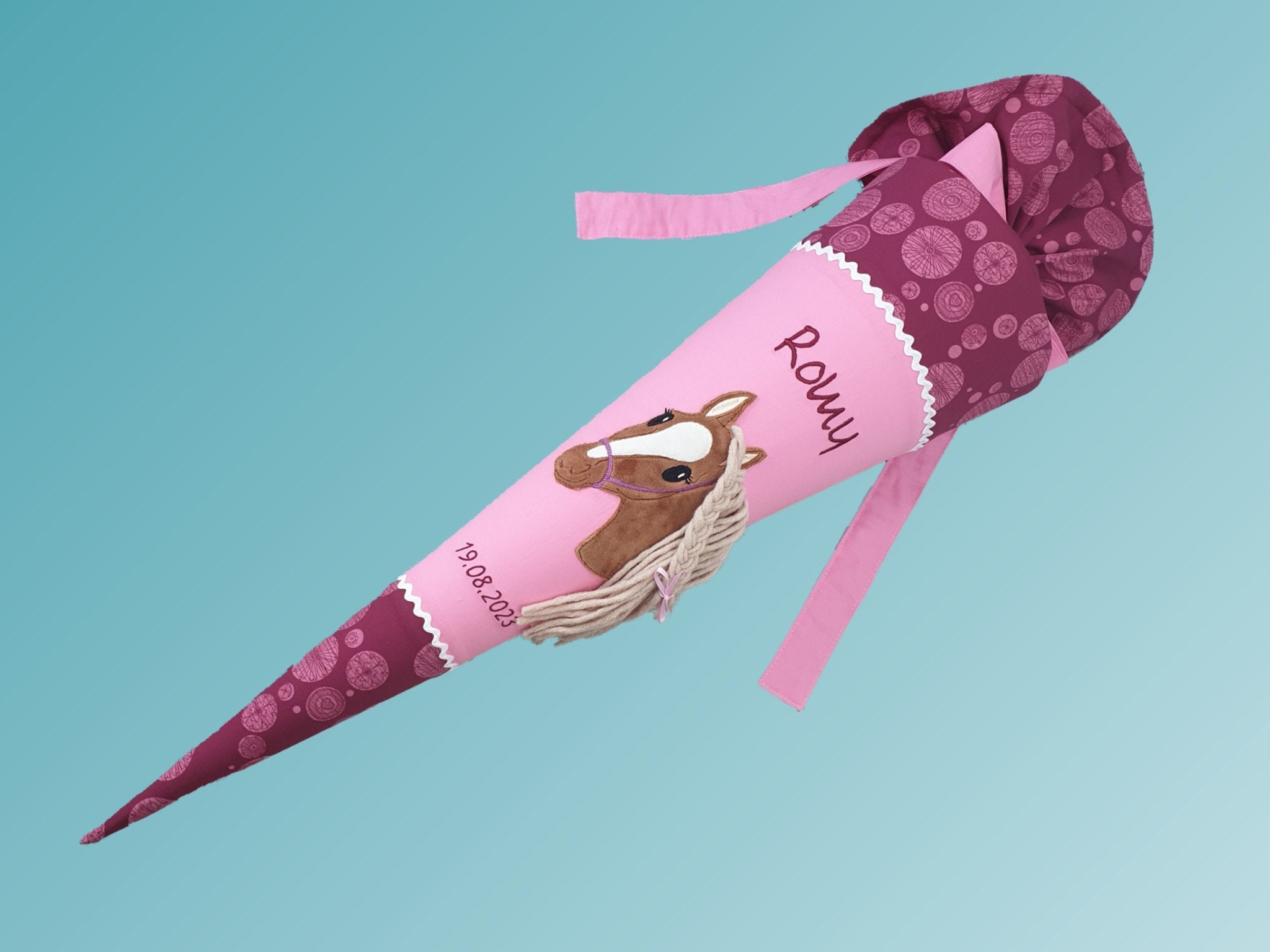 Schultüte mit 3D Pferdekopf und Namen farblich auf den Step by Step Glamour Star Schulranzen abgestimmt.