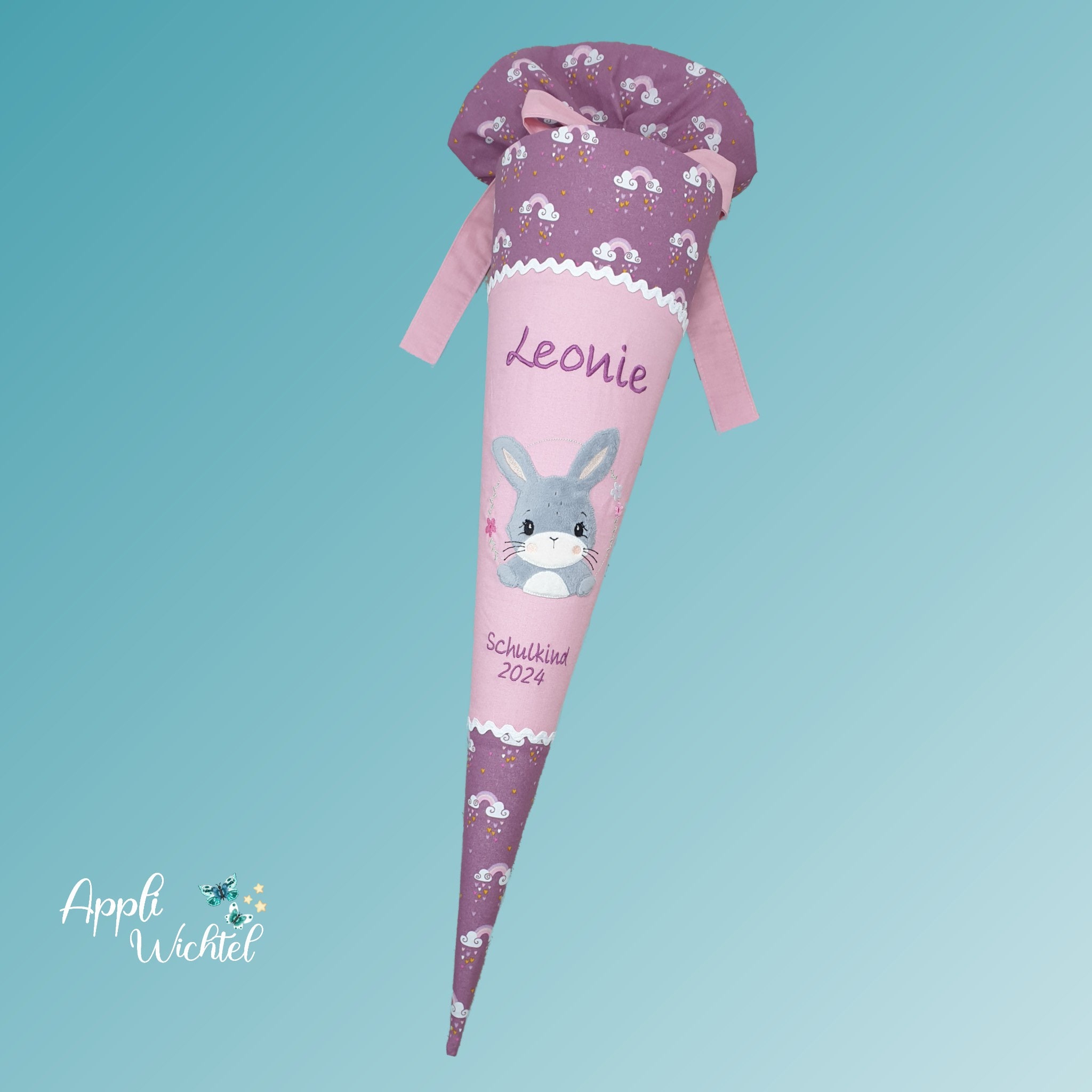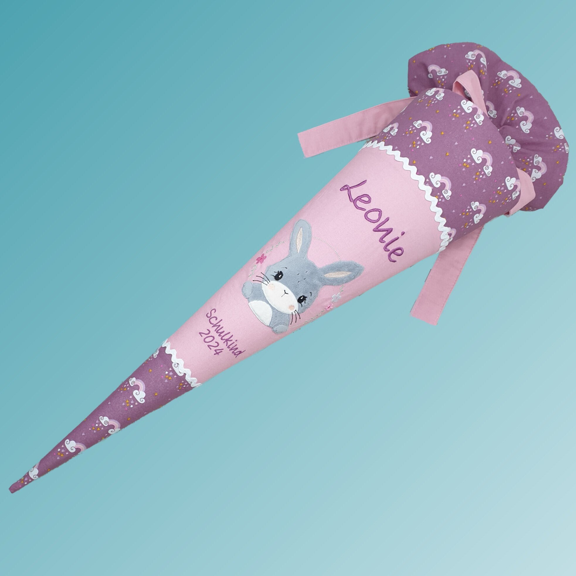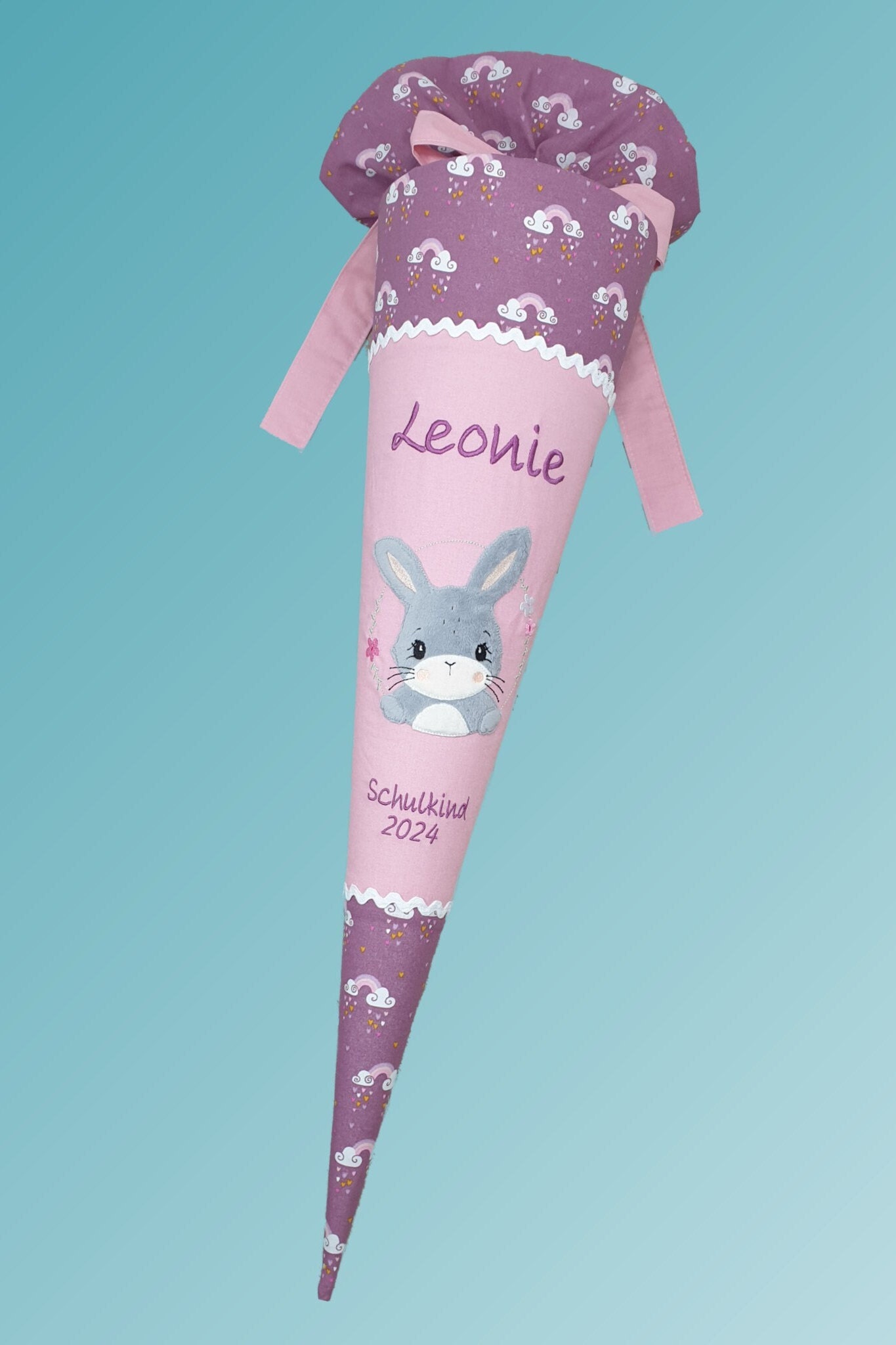 Jede Schultüte wird mit einem gestickten Motiv und dem Namen deines Kindes individuell gestaltet. Auf Wunsch fügen wir auch das Datum des ersten Schultages hinzu.