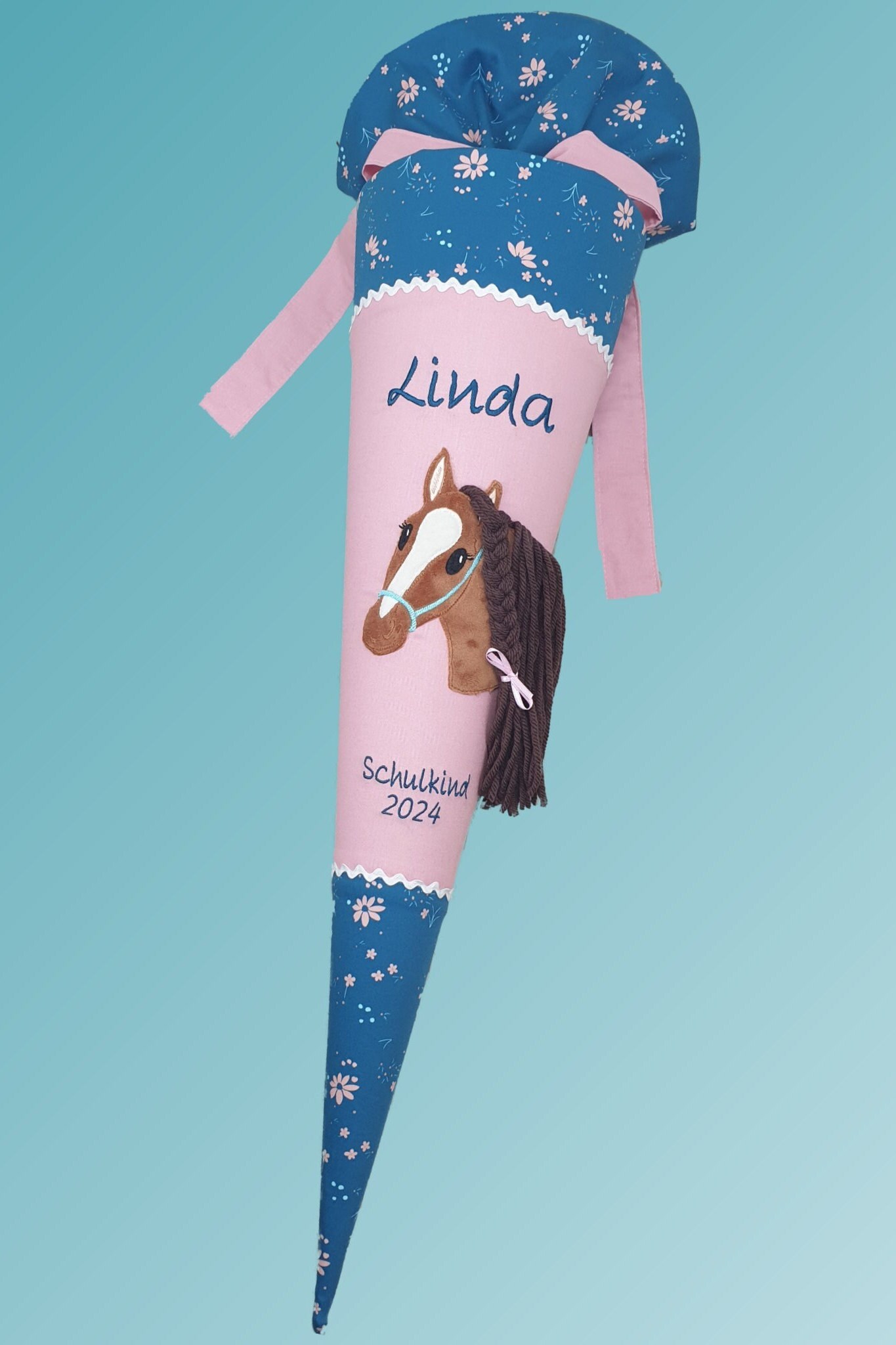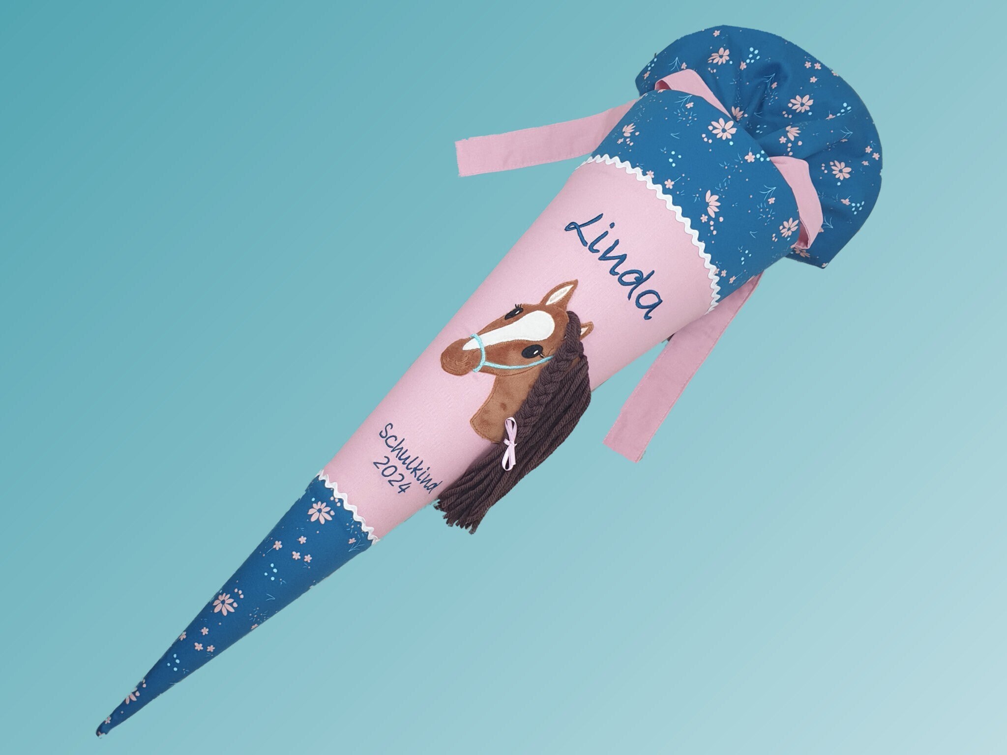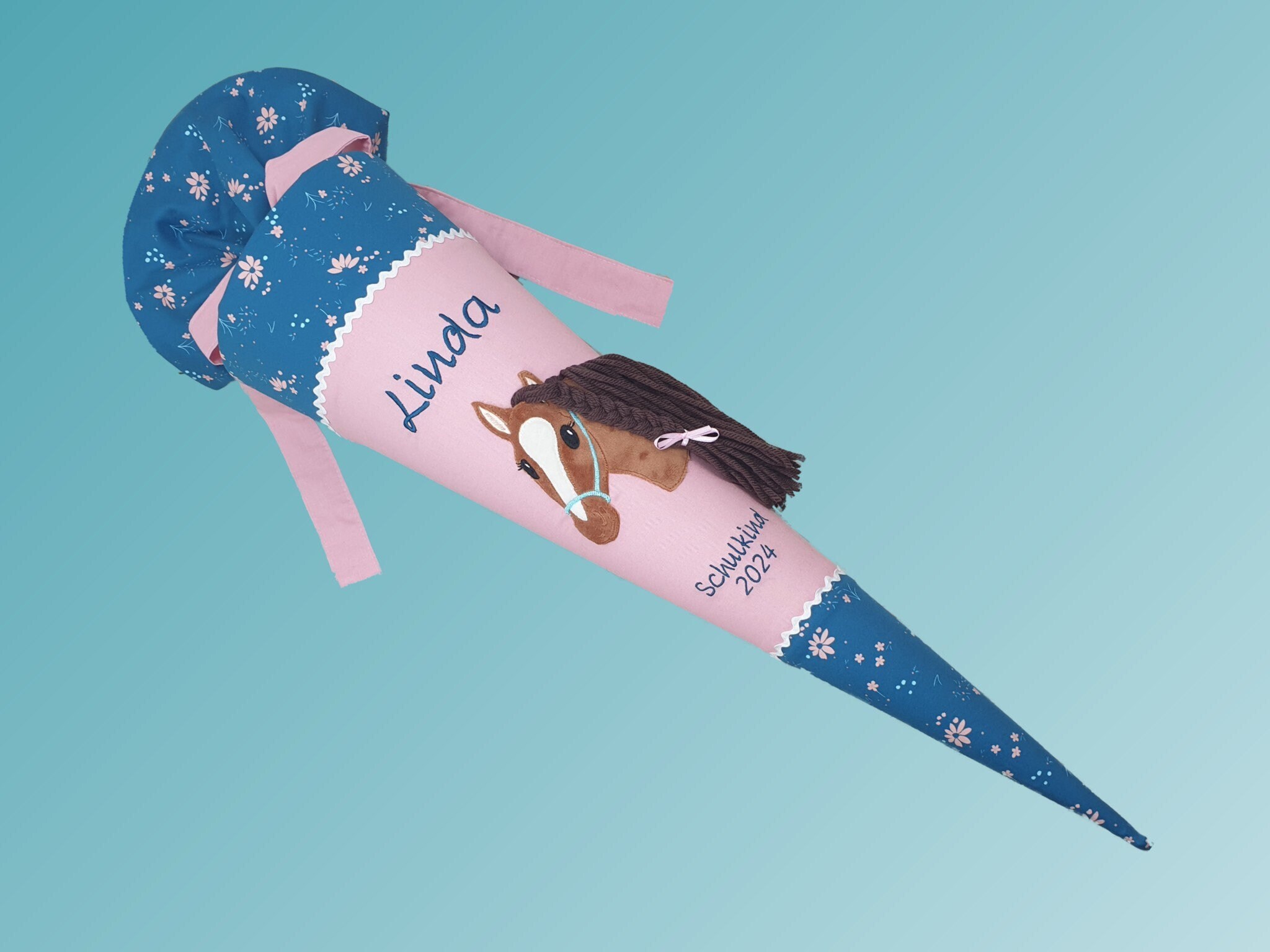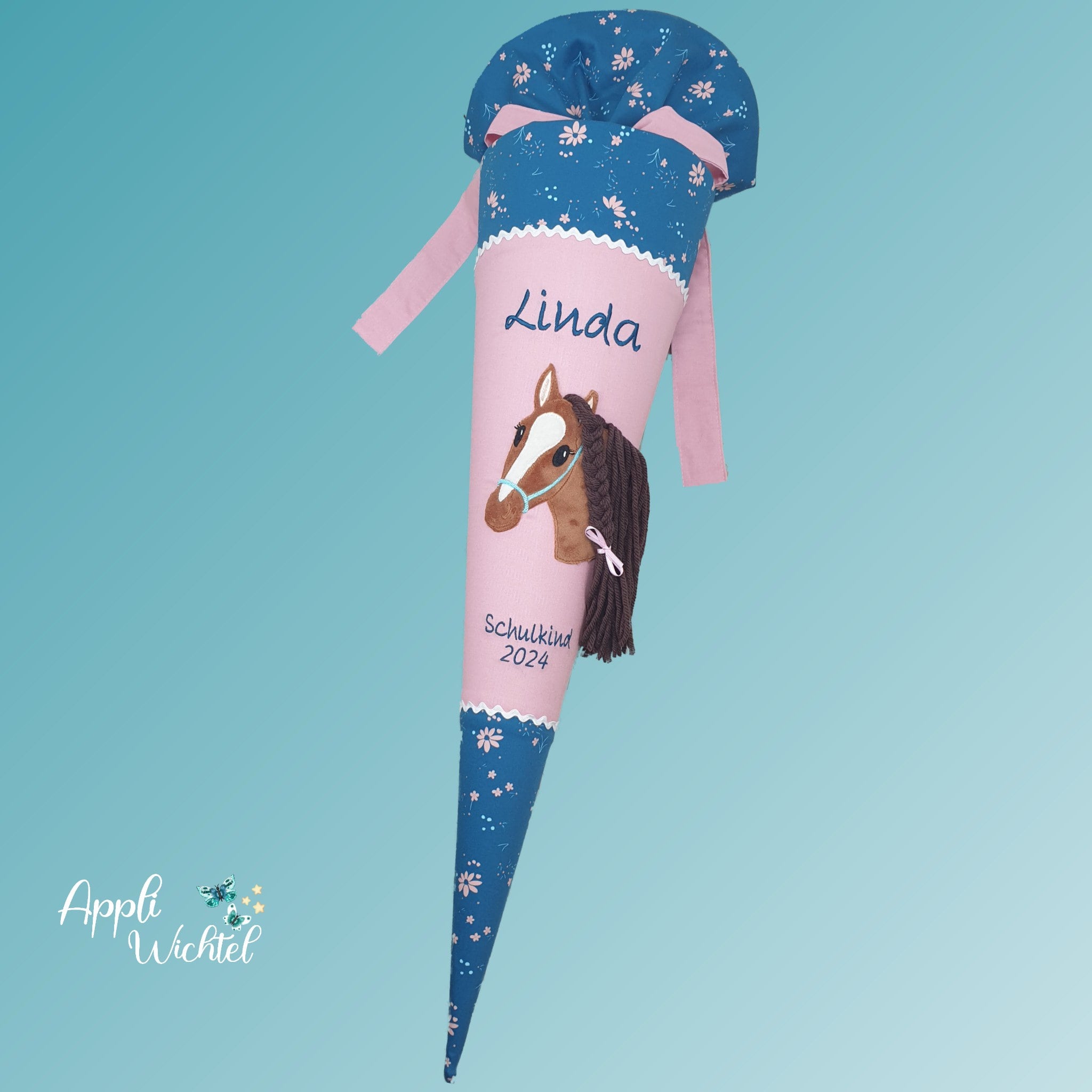 Schultüte mit Pferd und Namen farblich auf den Step by step Wild Horse Ronja abgestimmt.