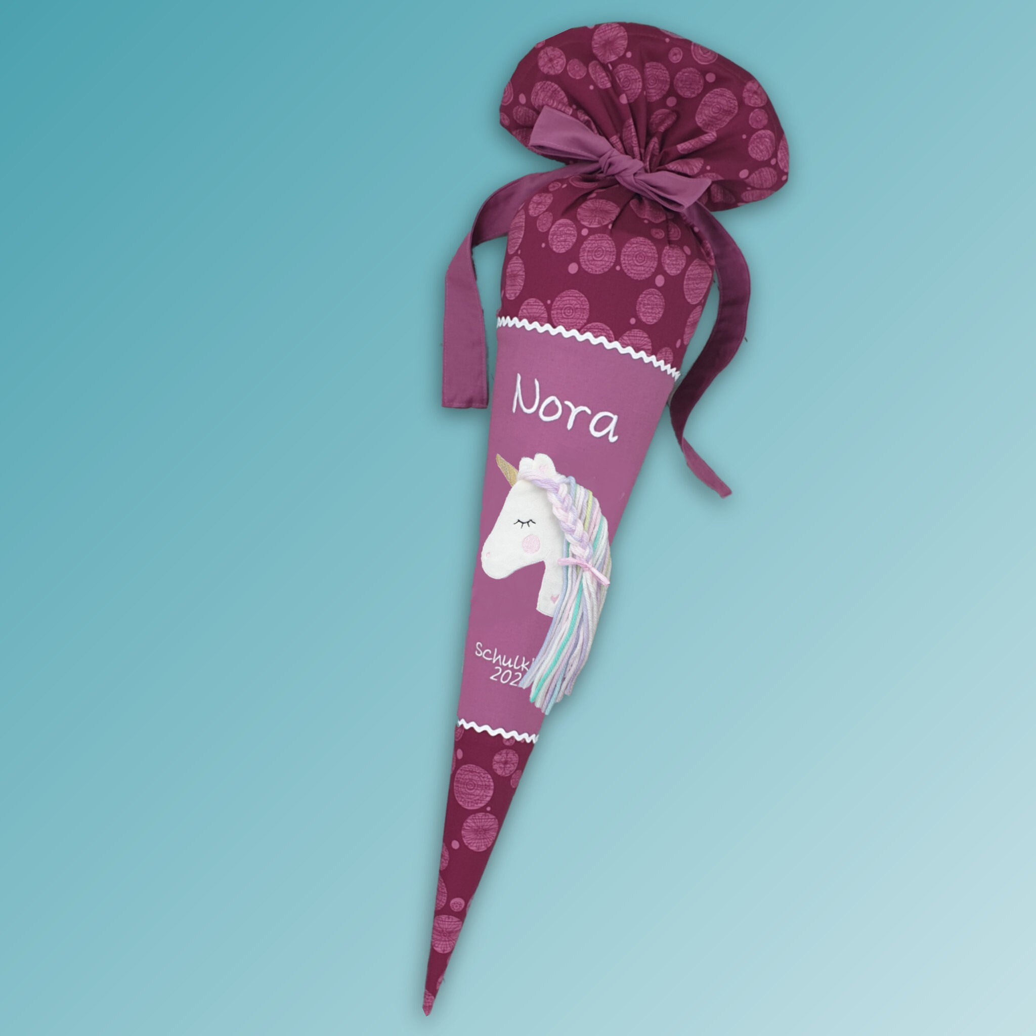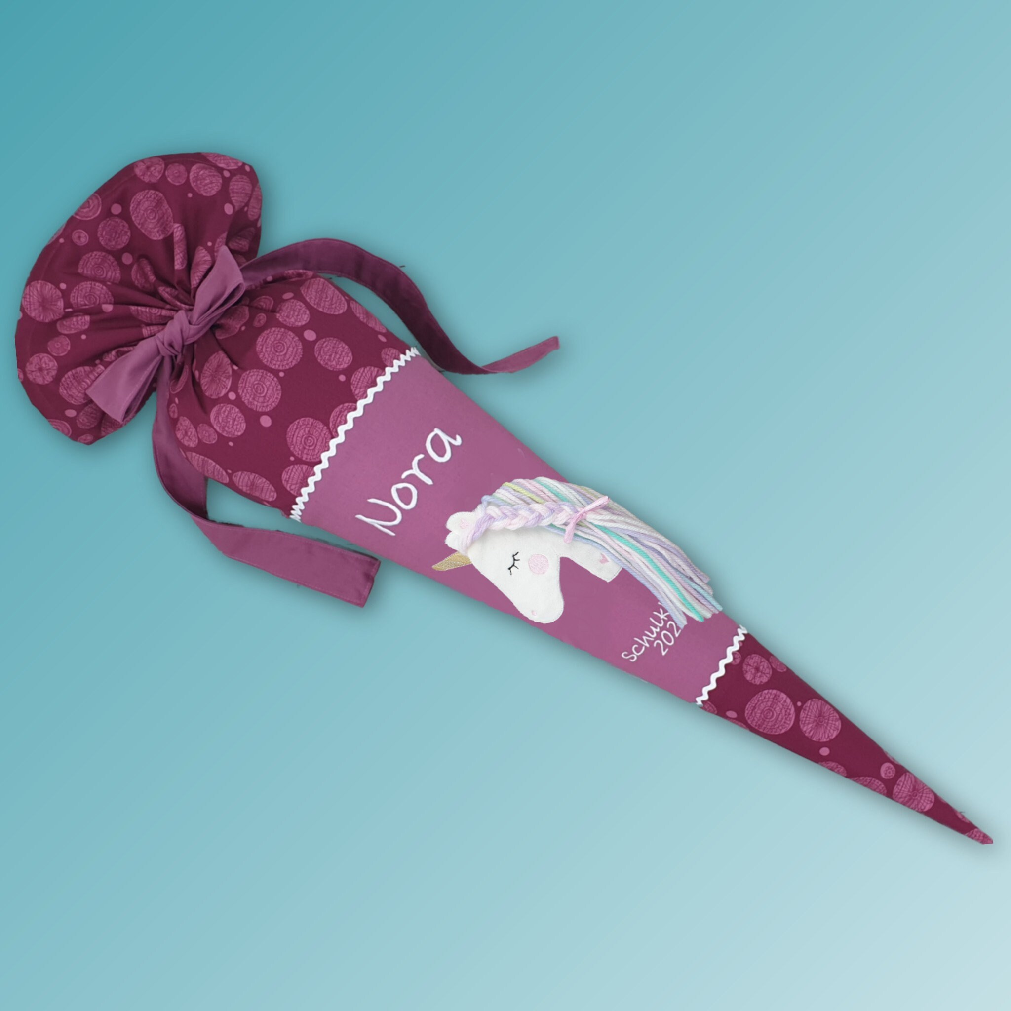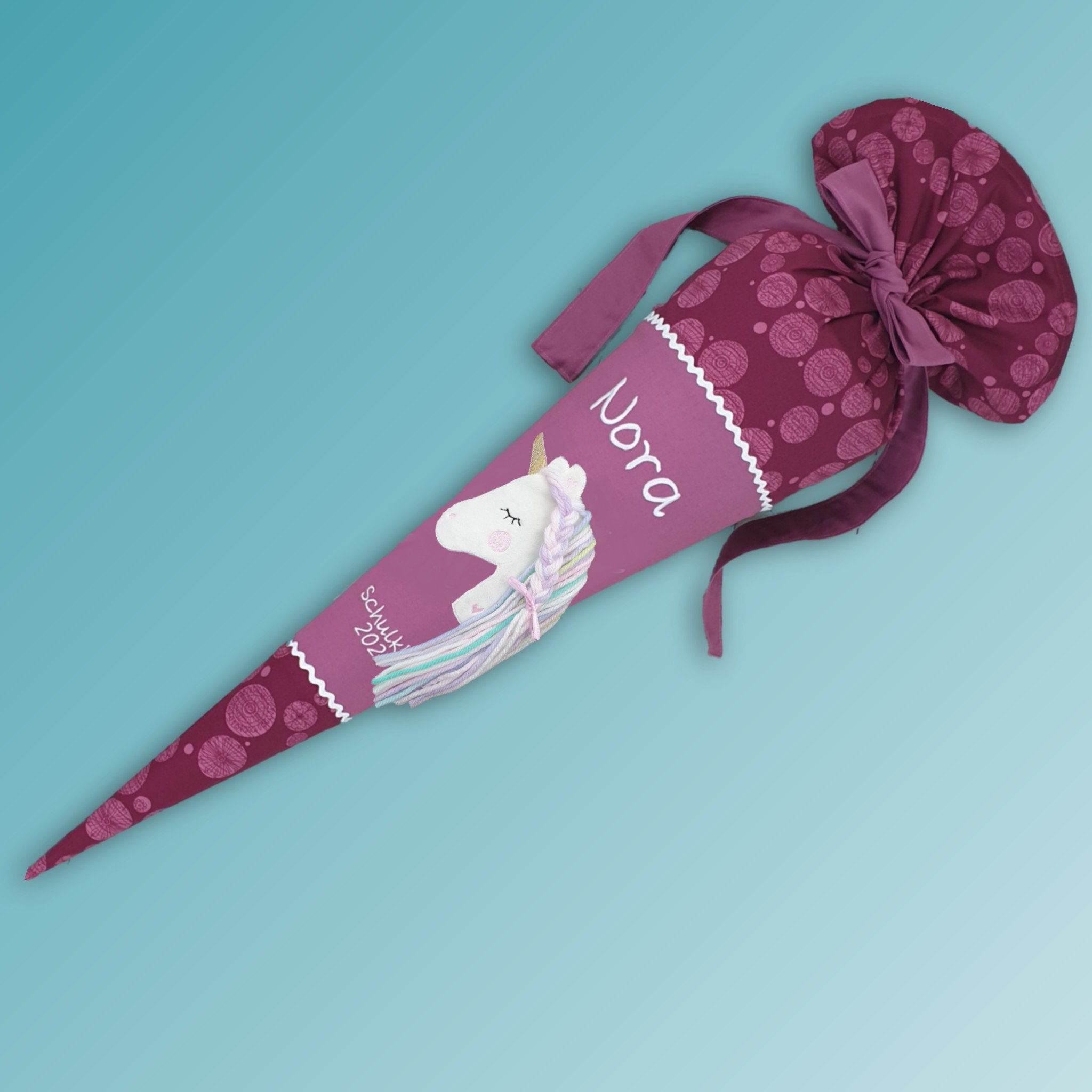 Schultüte mit 3D Einhorn und Namen farblich auf den Step by Step Glamour Star Schulranzen abgestimmt.