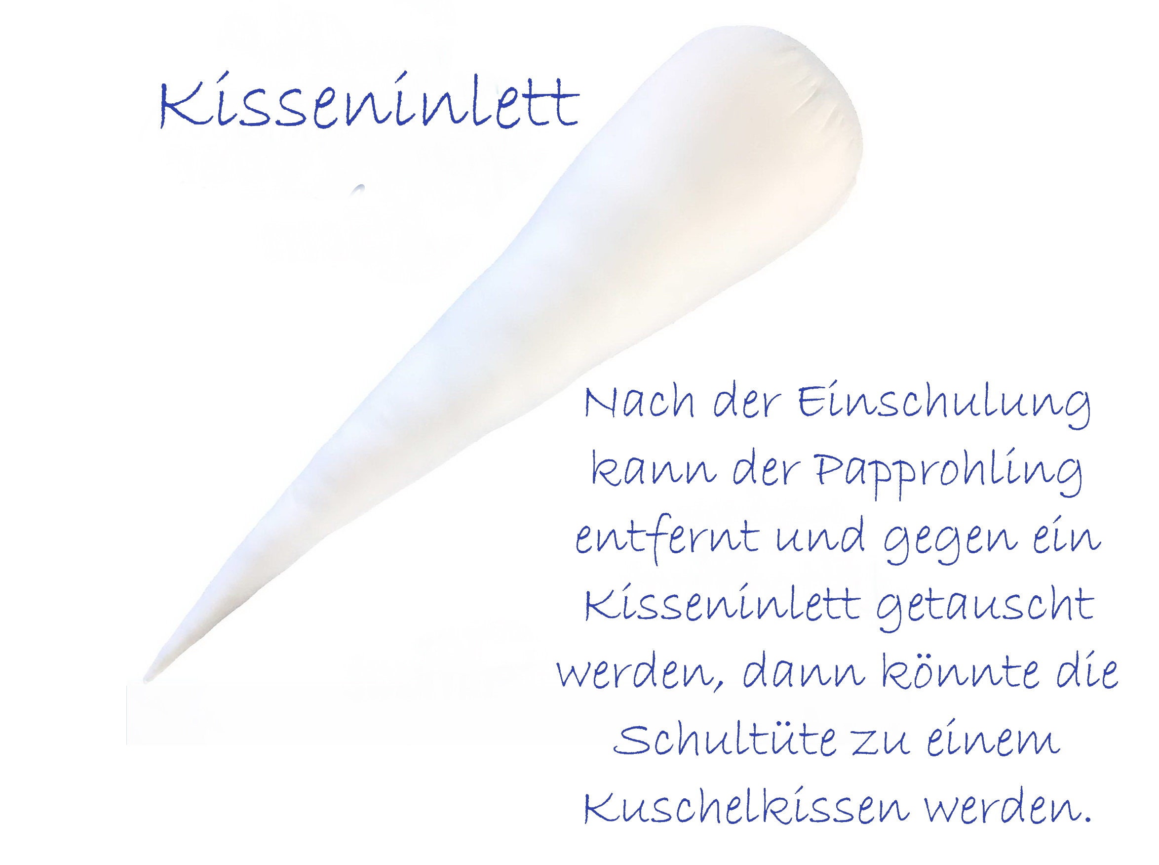 Möchtest du die Schultüte nach dem Schulanfang weiterhin nutzen? Kein Problem! Ein Kisseninlett kann dazu bestellt werden, damit die Schultüte später als gemütliches Kissen weiterverwendet werden kann.