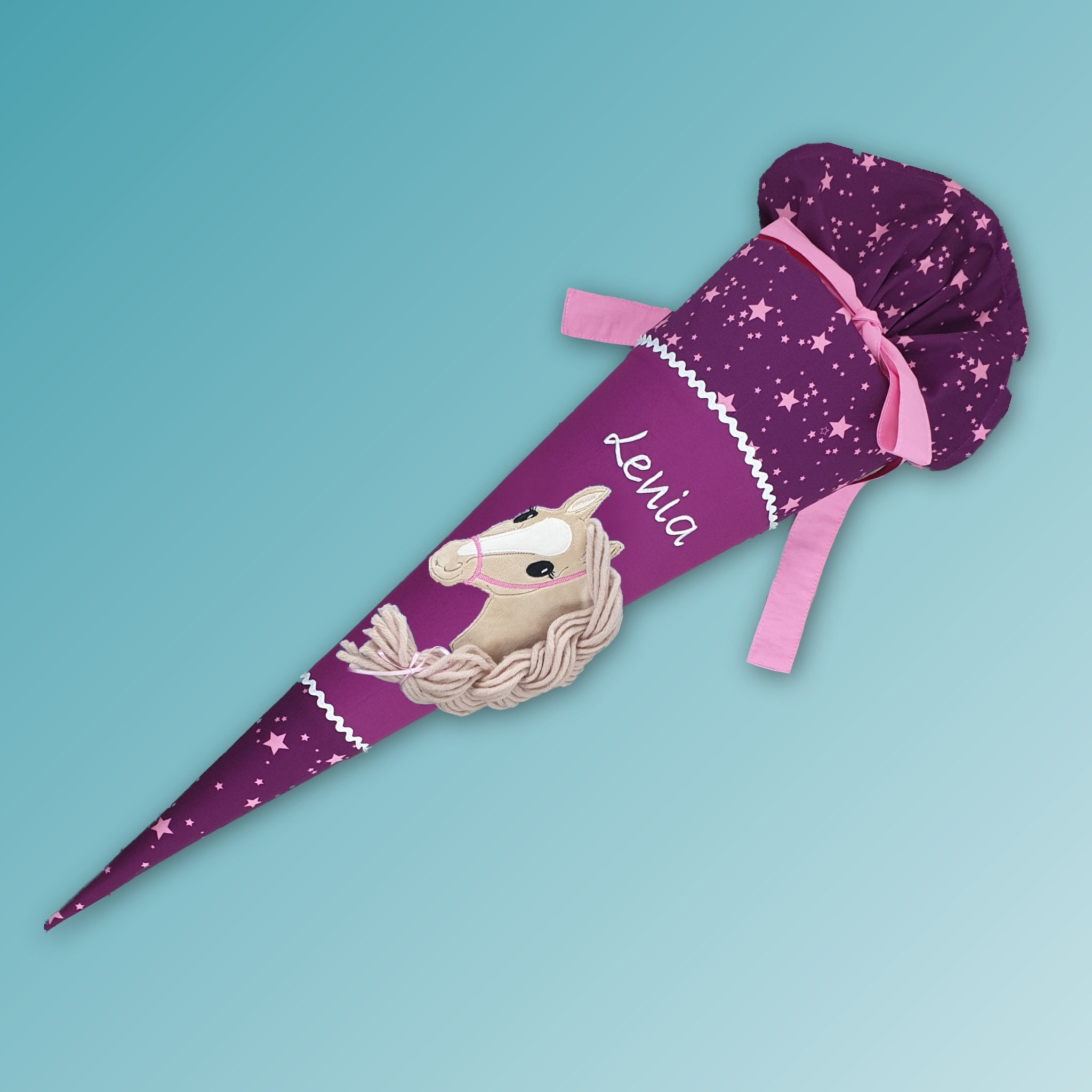 Schultüte mit Pferd und Namen farblich auf den Step by step Unicorn Nuala Schulranzen abgestimmt.