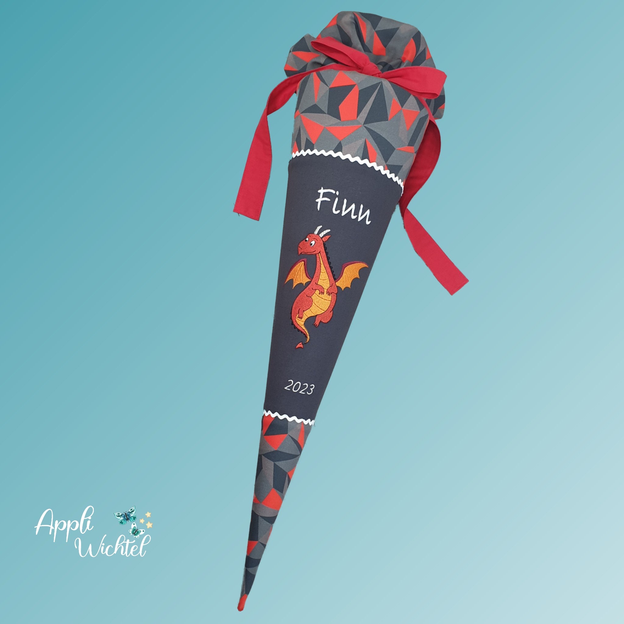 Jede Schultüte wird mit einem gestickten Motiv und dem Namen deines Kindes individuell gestaltet. Auf Wunsch fügen wir auch das Datum des ersten Schultages hinzu.
