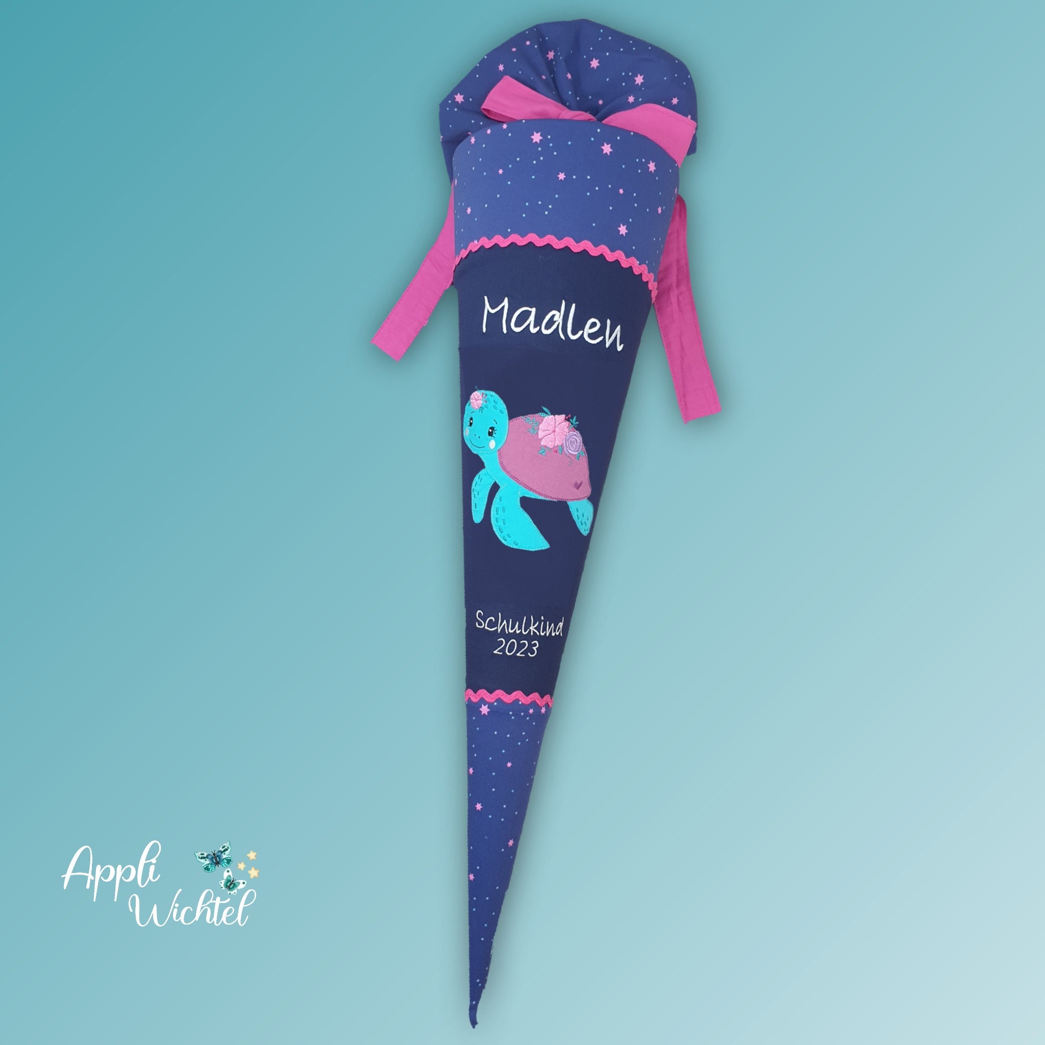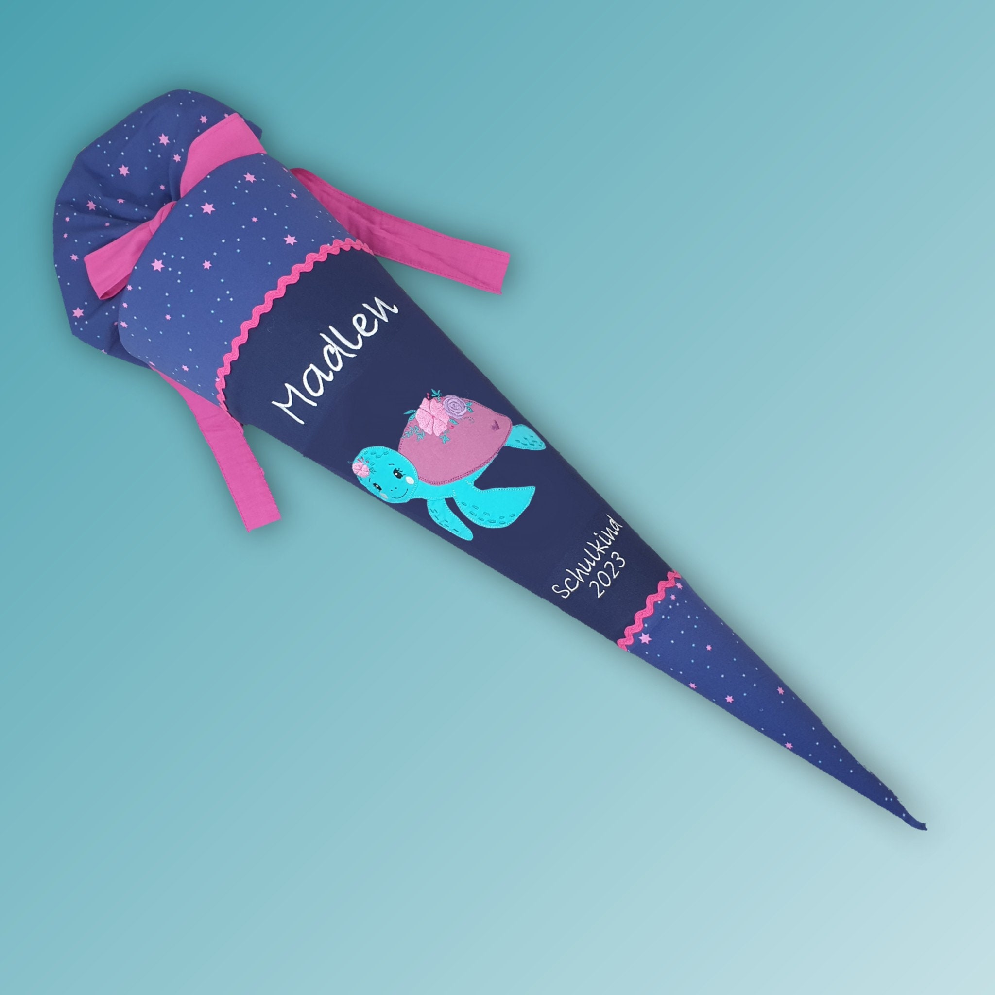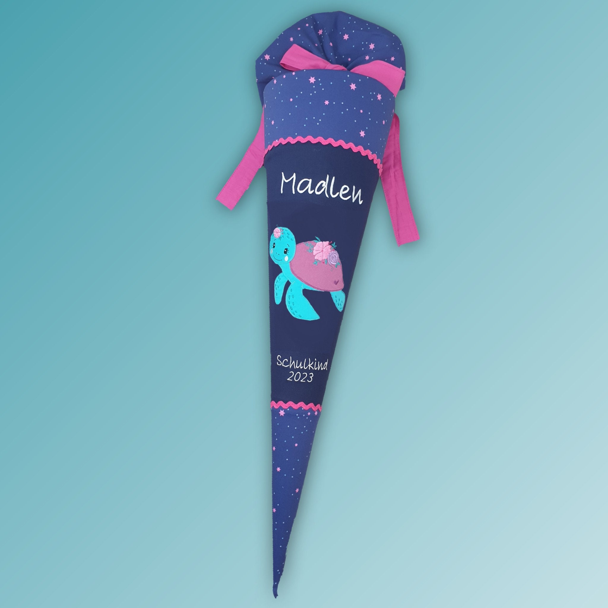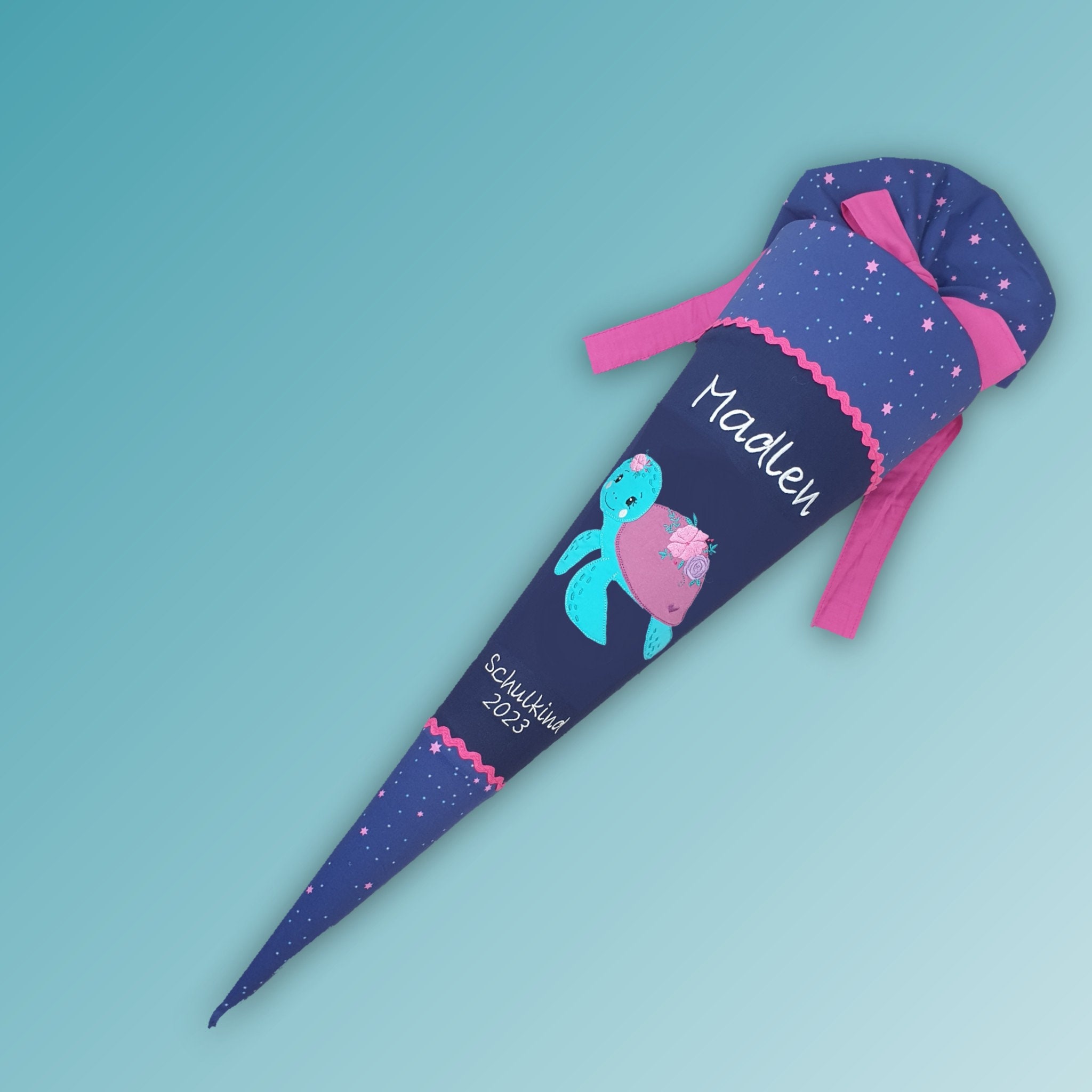 Schultüte mit Schildkröte und Namen farblich auf den Star Seahorse Zoe Schulranzen abgestimmt.