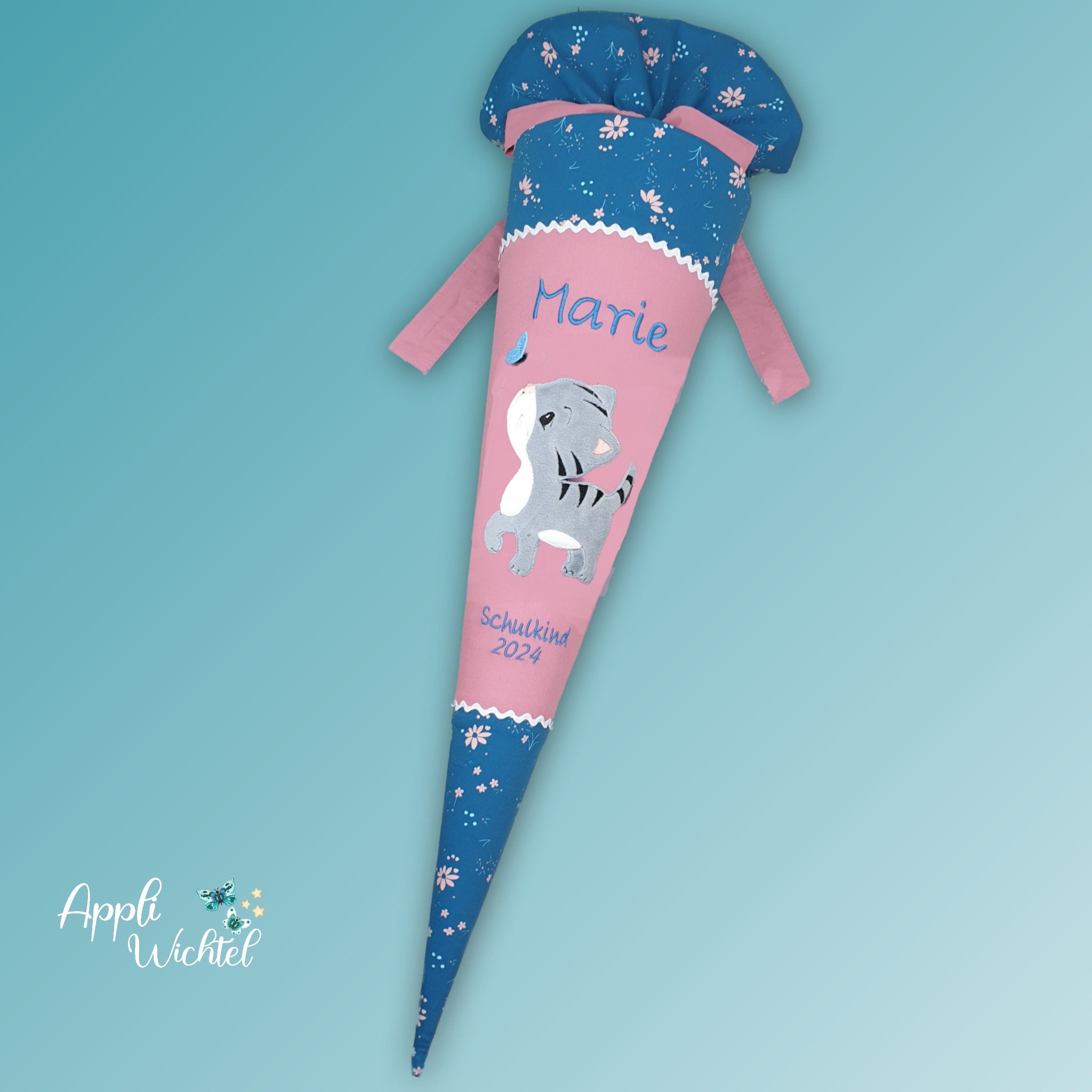 Schultüte mit Katze und Namen farblich auf den Step by step Wild Horse Ronja abgestimmt.