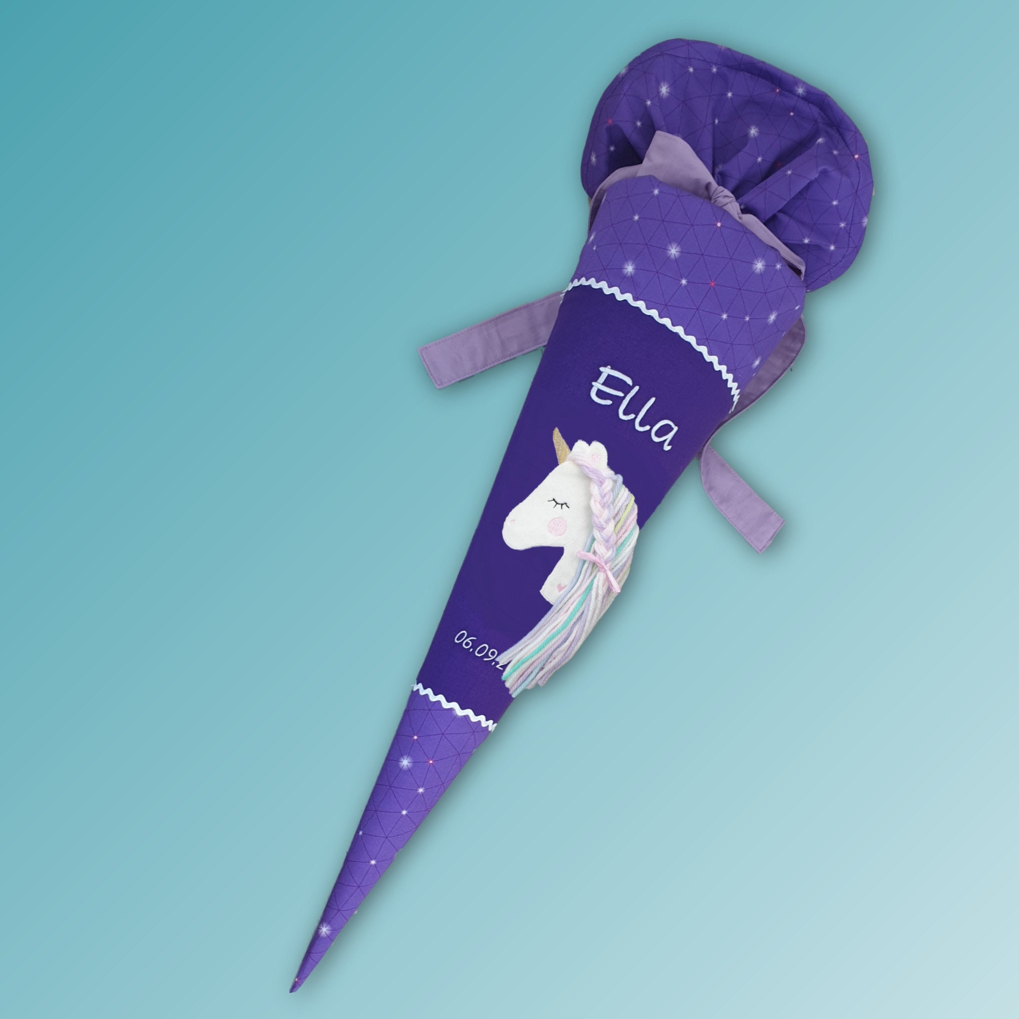Schultüte mit Einhorn und Namen farblich auf den Step by step Dreamy Pegasus Schulranzen abgestimmt.