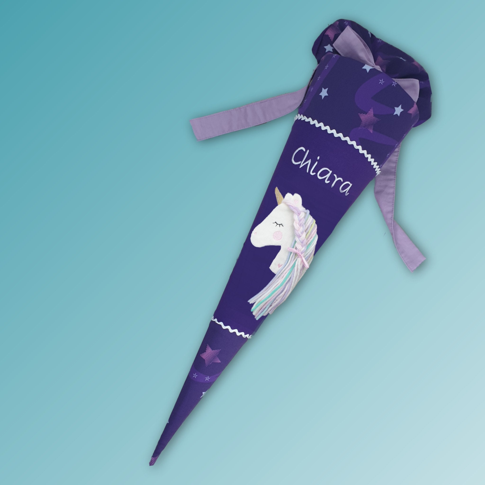 Die Stoffhülle ist aus Baumwollstoffen gefertigt und mindestens 20 cm länger als die eigentliche Schultüte, sodass sie perfekt passt und sich gut befüllen und verschließen lässt.