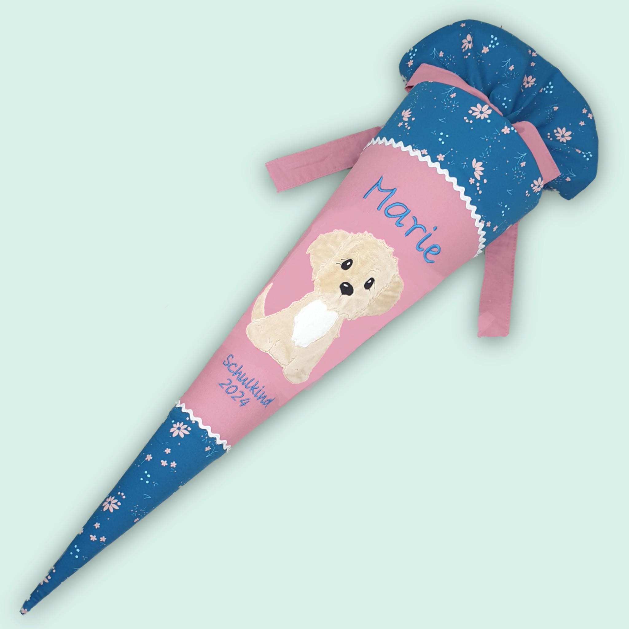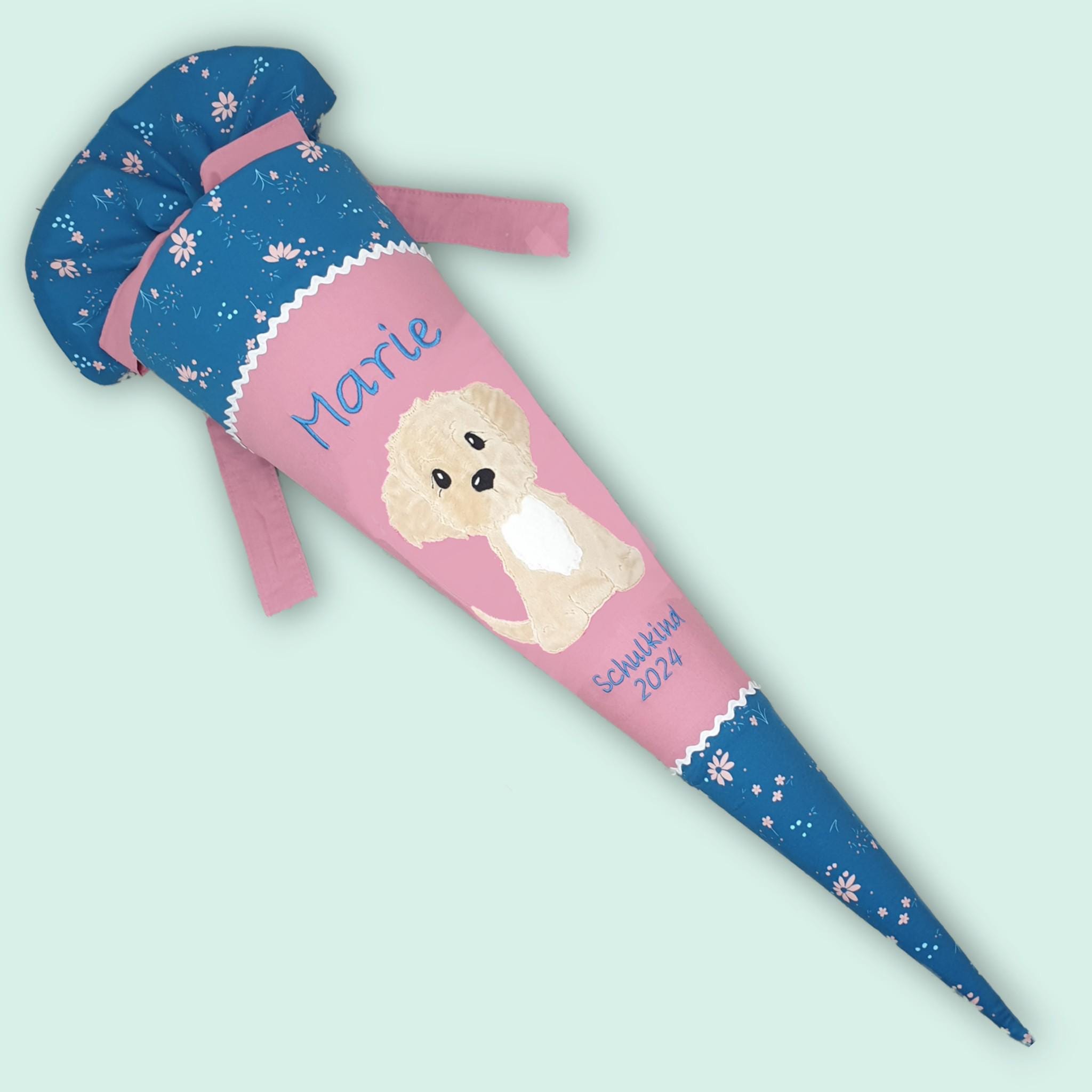 Schultüte mit Hund und Namen farblich auf den Step by step Wild Horse Ronja abgestimmt.