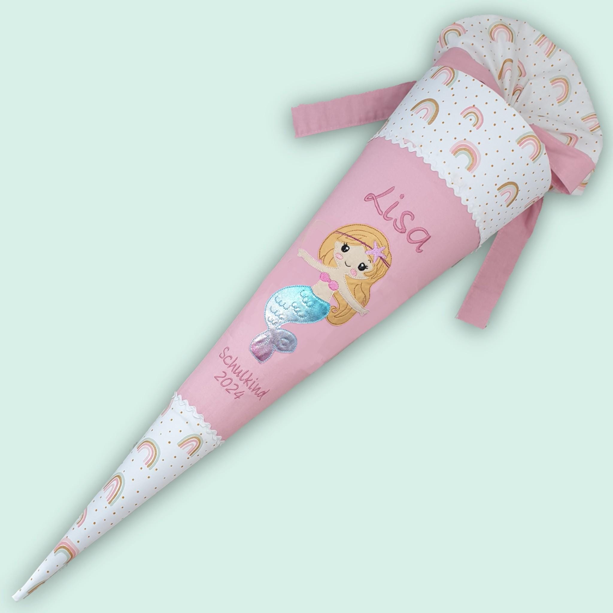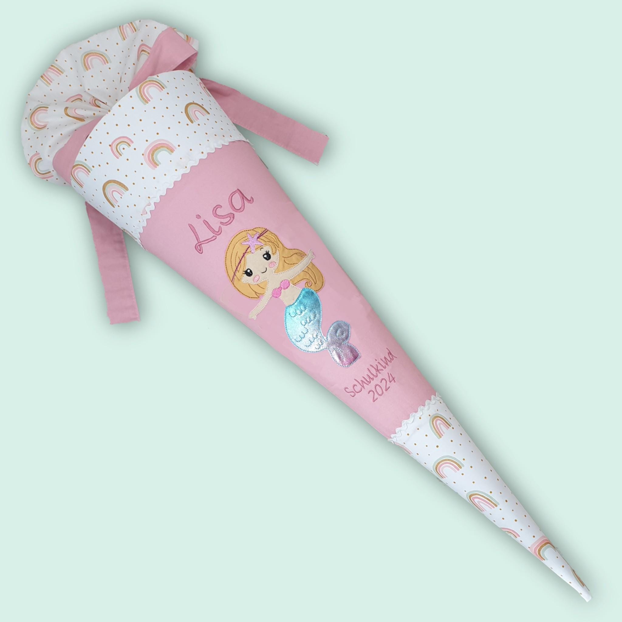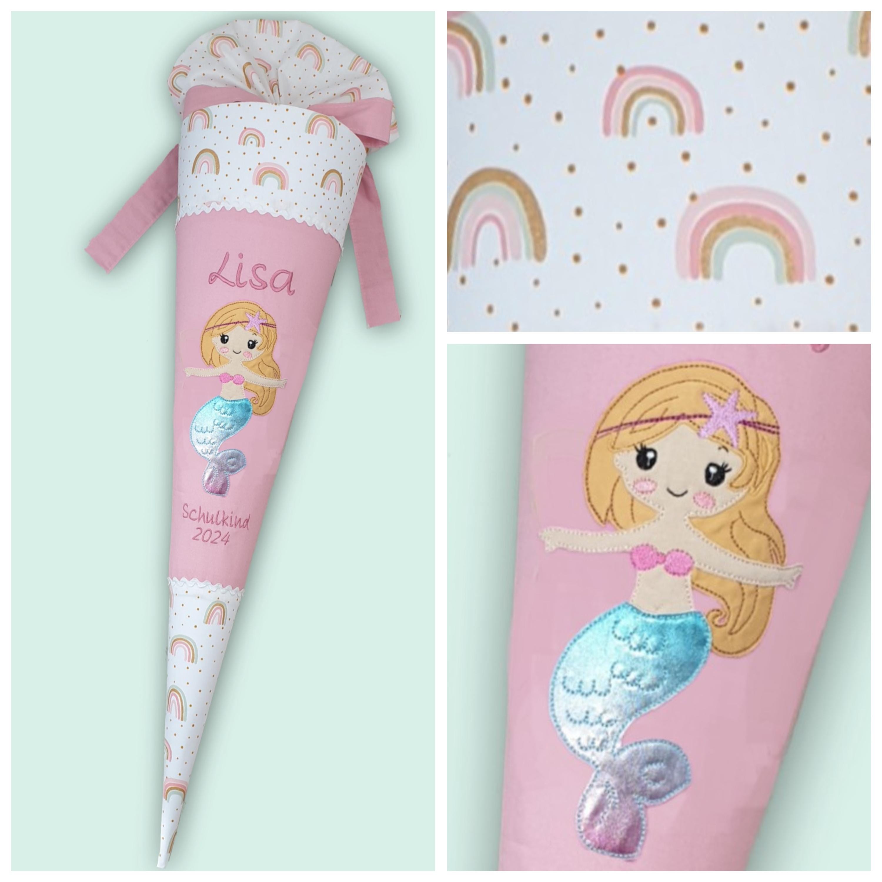 Die Stoffhülle ist aus Baumwollstoffen gefertigt und mindestens 20 cm länger als die eigentliche Schultüte, sodass sie perfekt passt und sich gut befüllen und verschließen lässt.