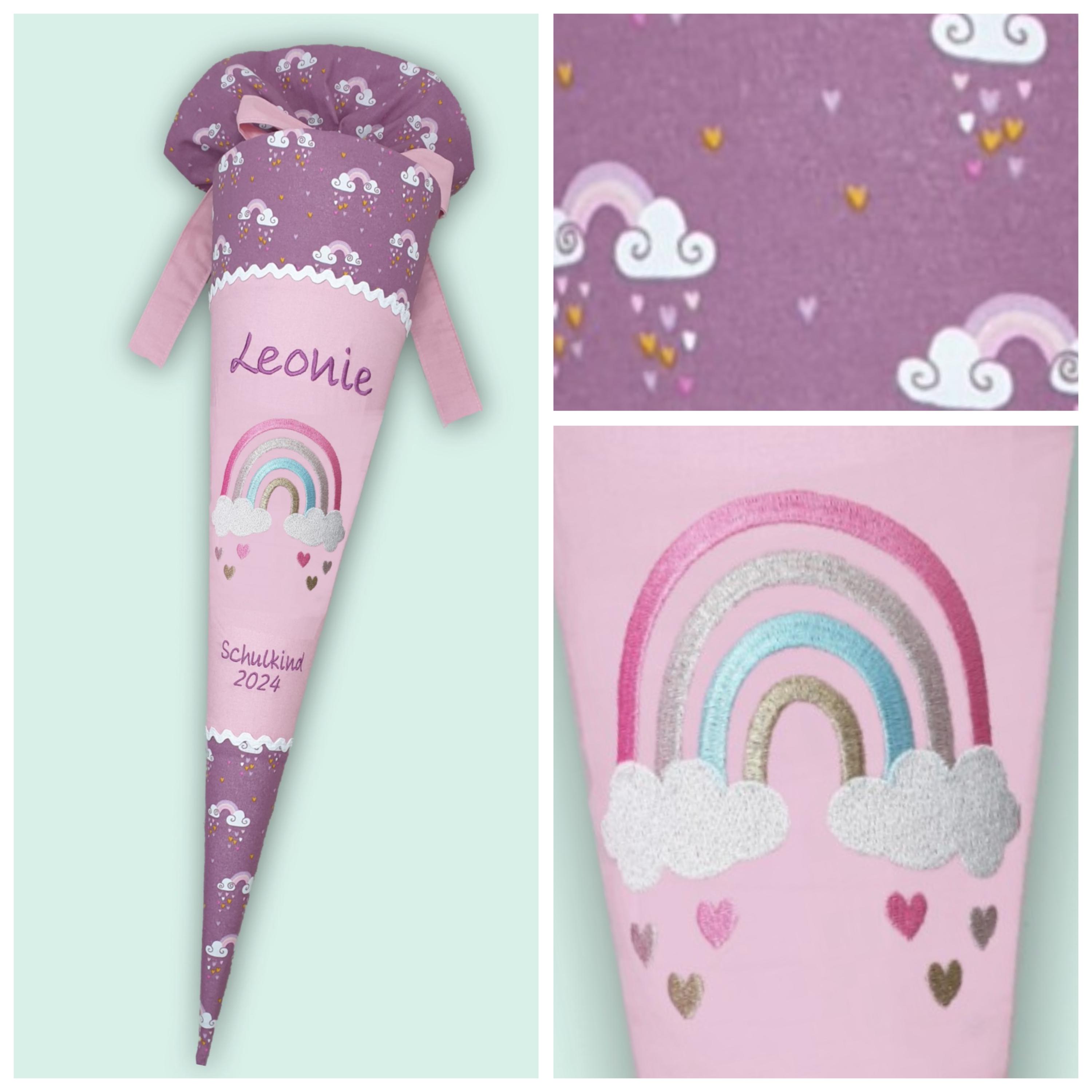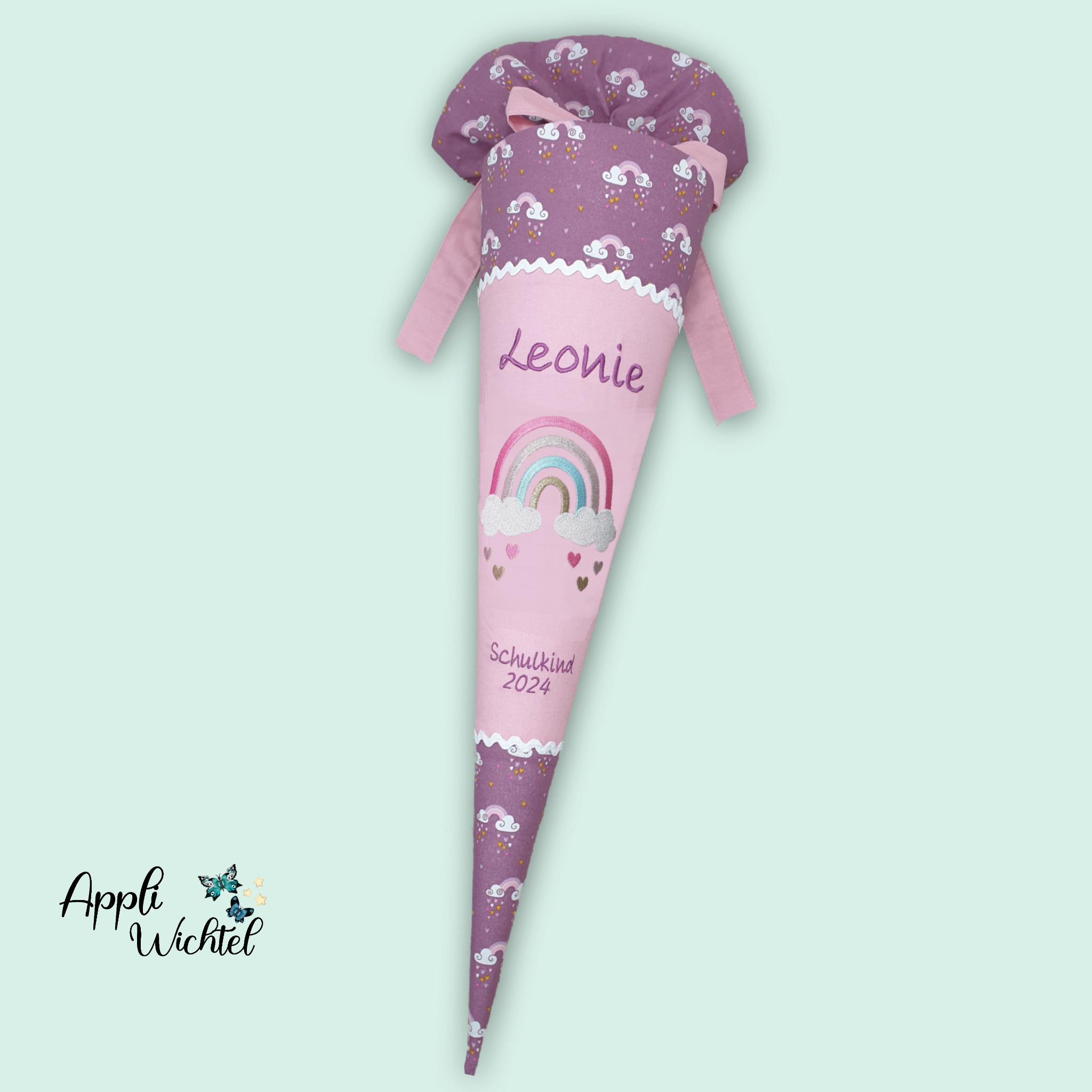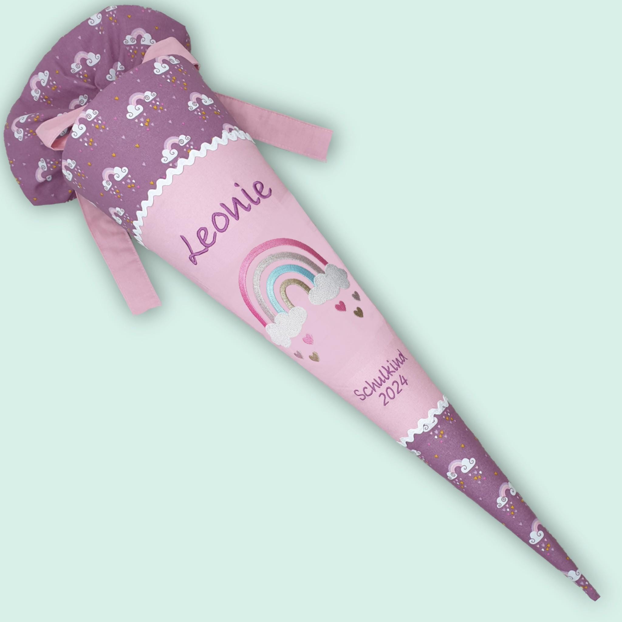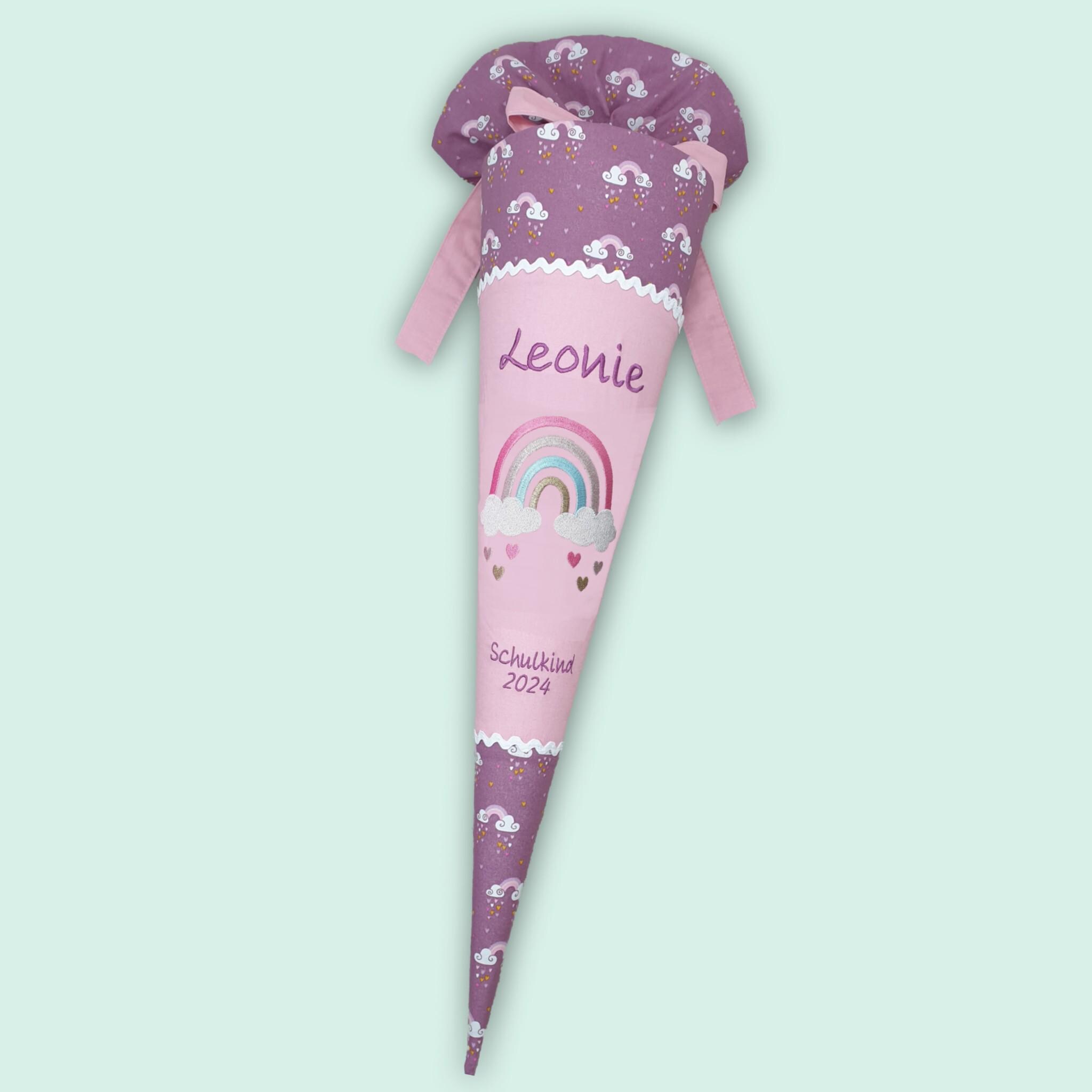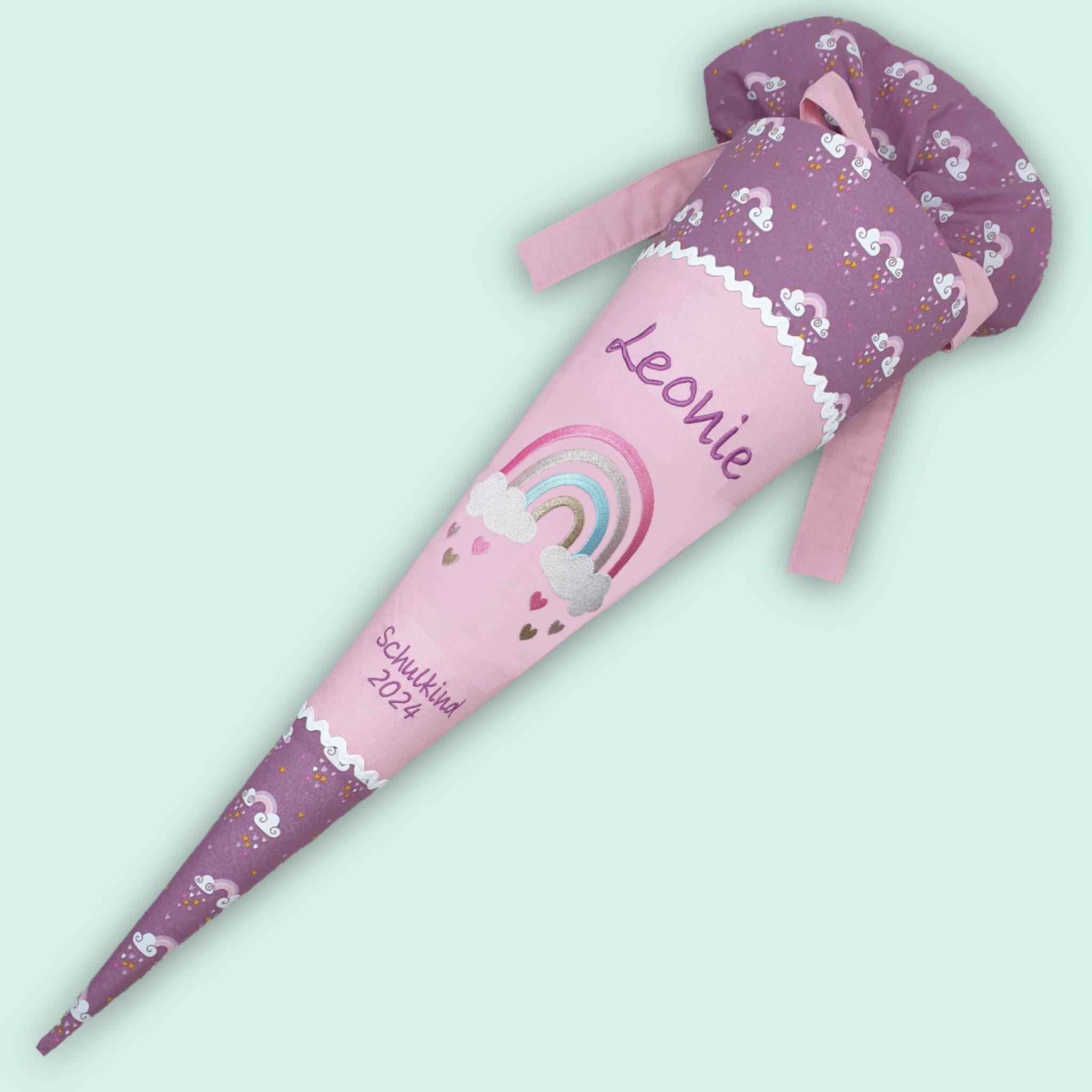 Schultüte mit glitzer Regenbogen und Namen und Regenbogen Stoff