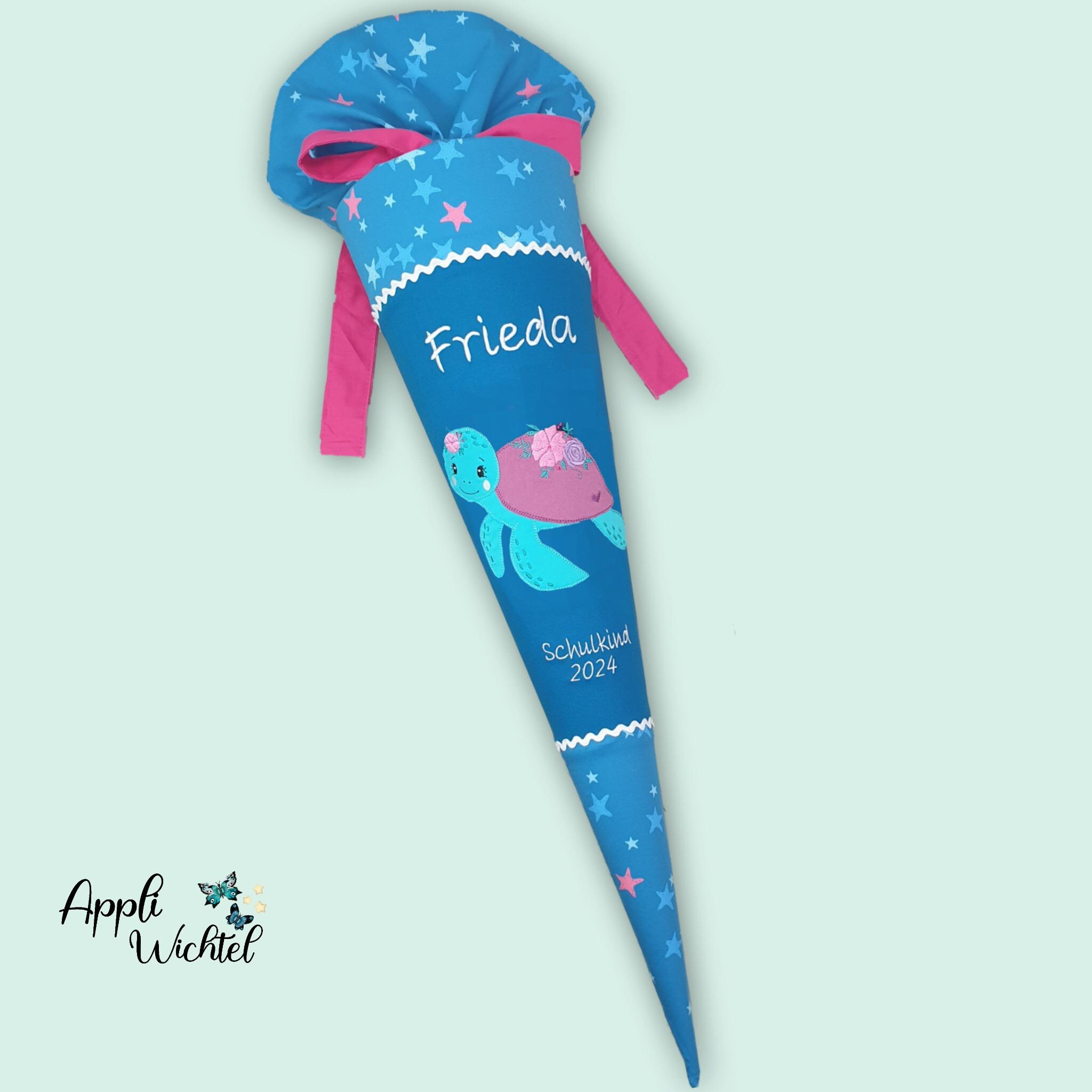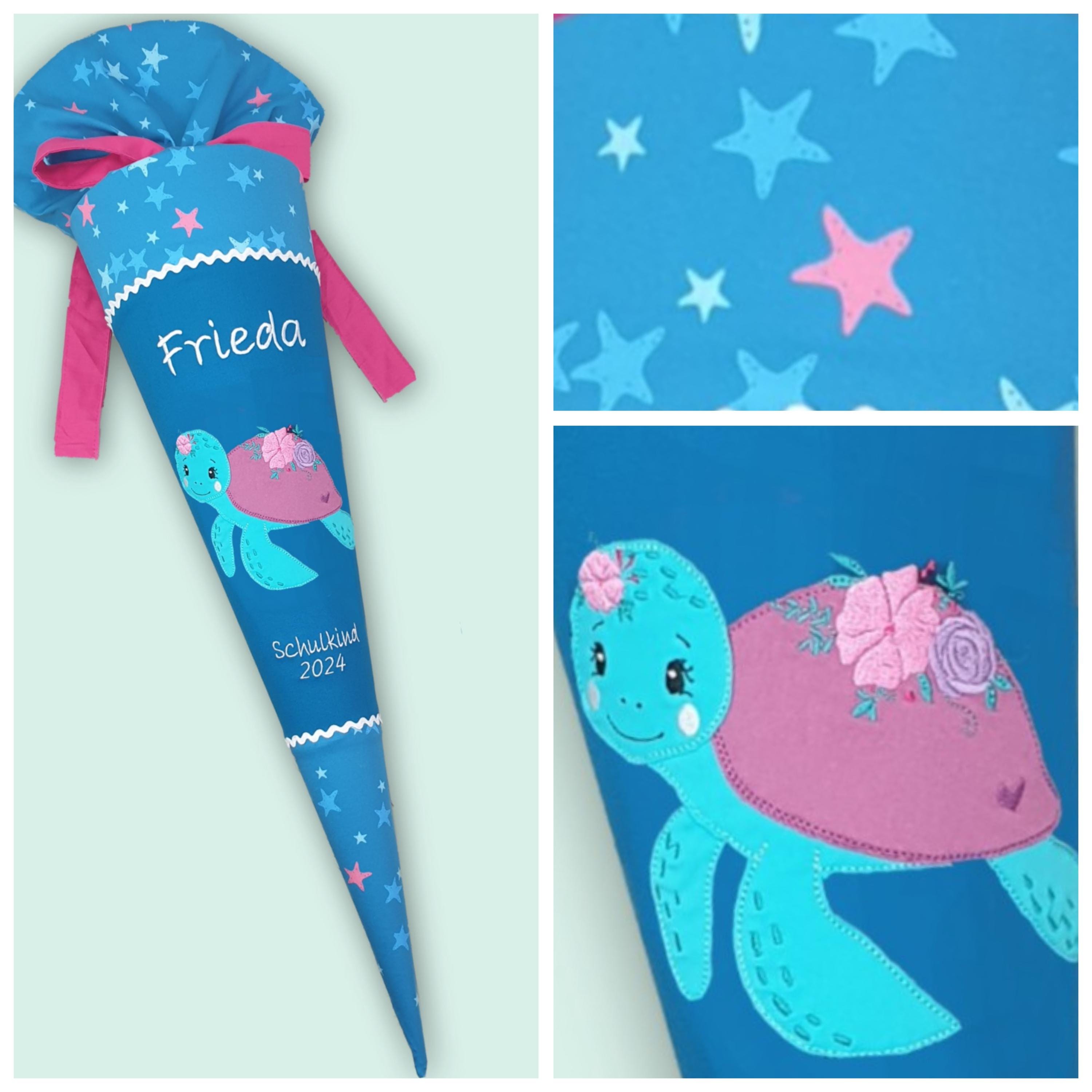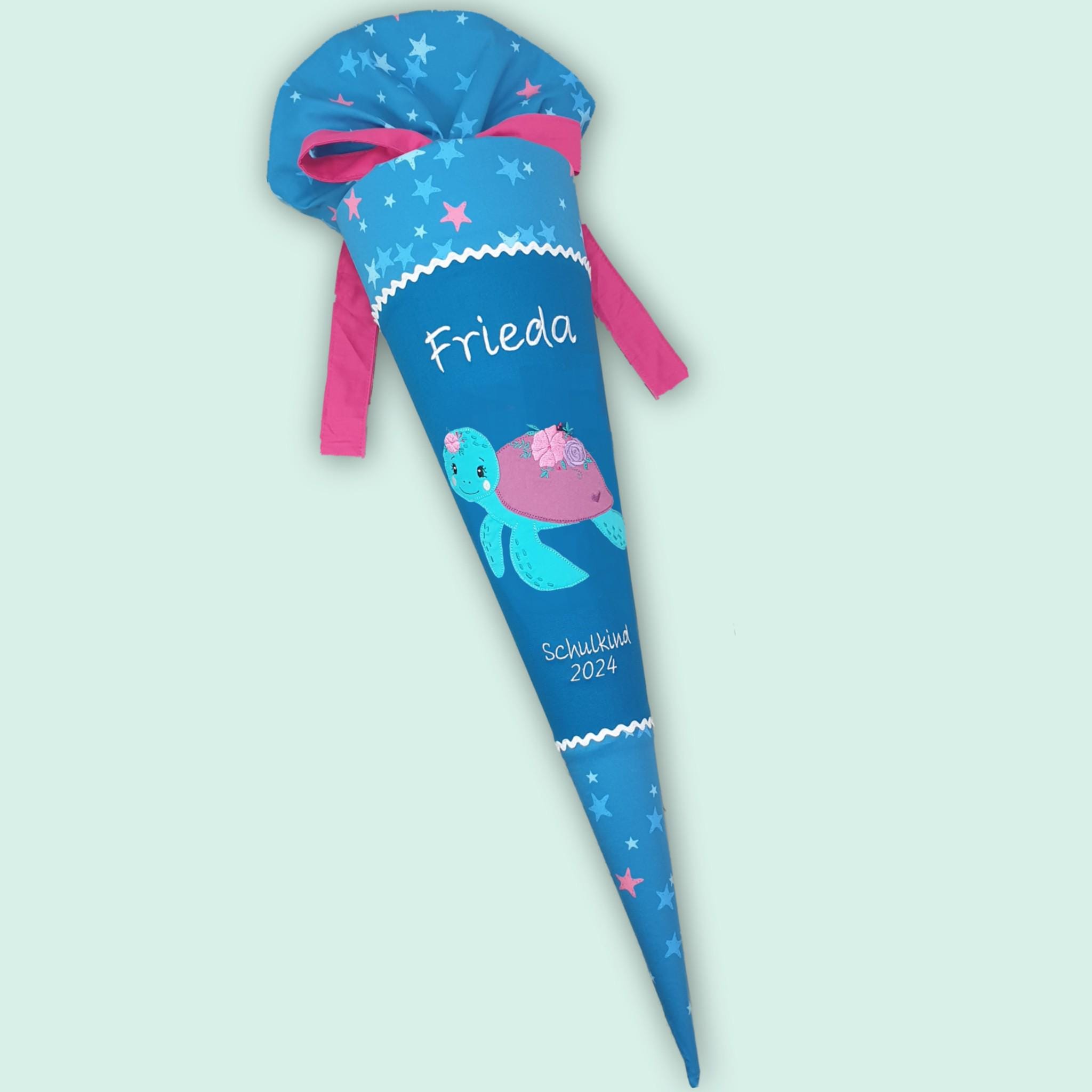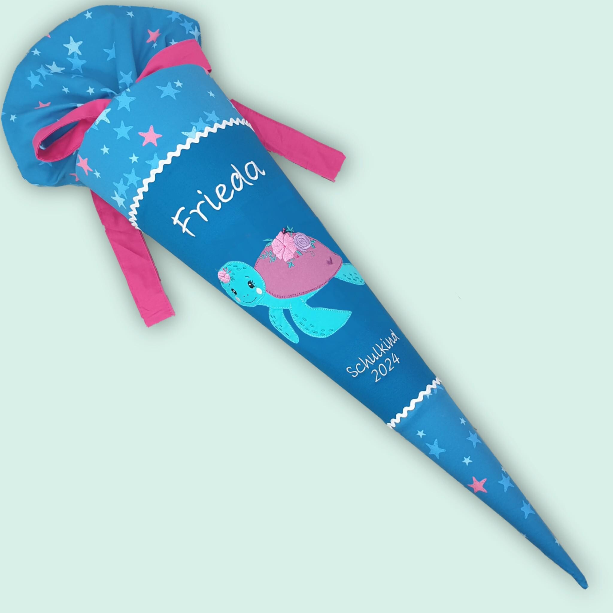 Schultüte mit Schildkröte und Namen farblich auf den Step by step Mermaid Lola Schulranzen abgestimmt.