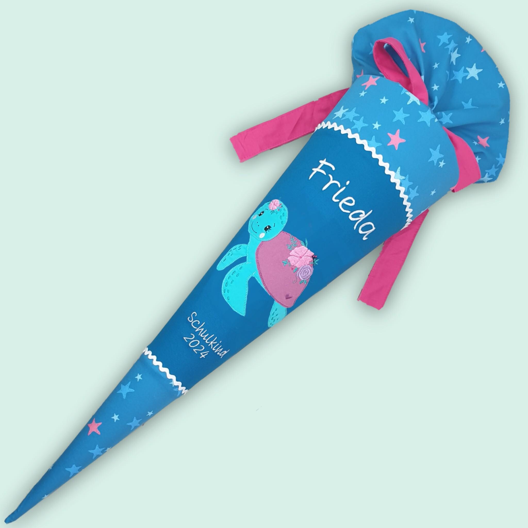 Jede Schultüte wird mit einem gestickten Motiv und dem Namen deines Kindes individuell gestaltet. Auf Wunsch fügen wir auch das Datum des ersten Schultages hinzu.