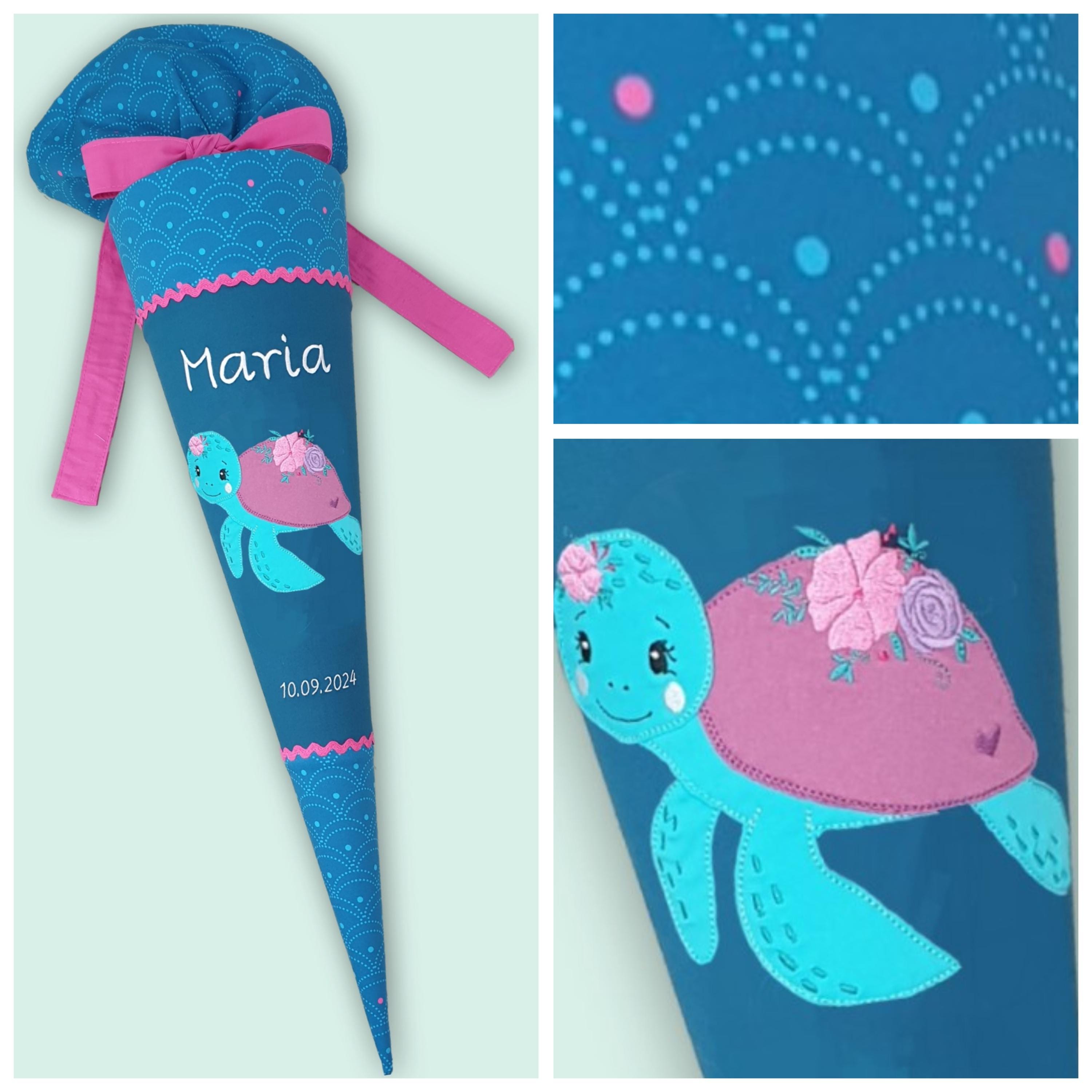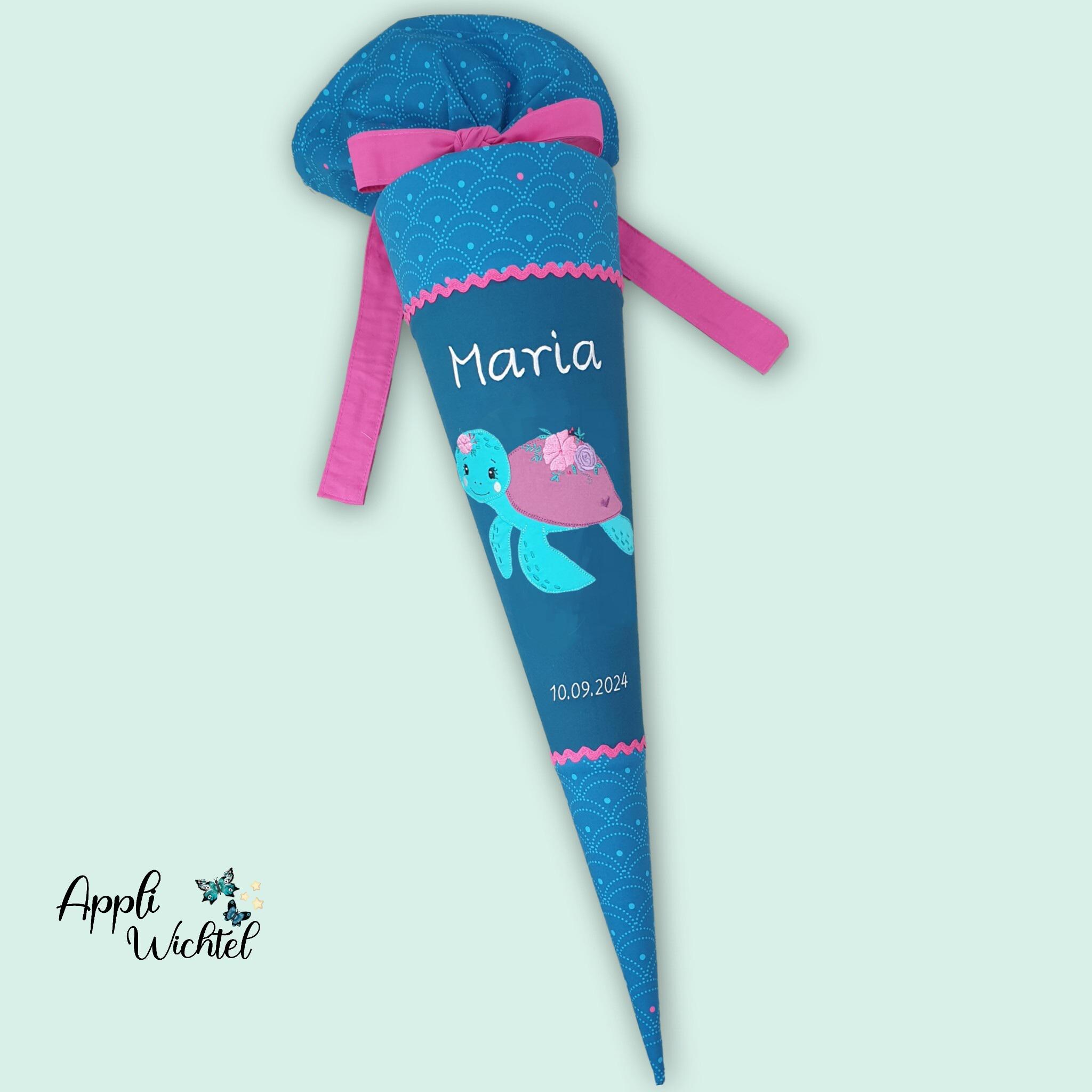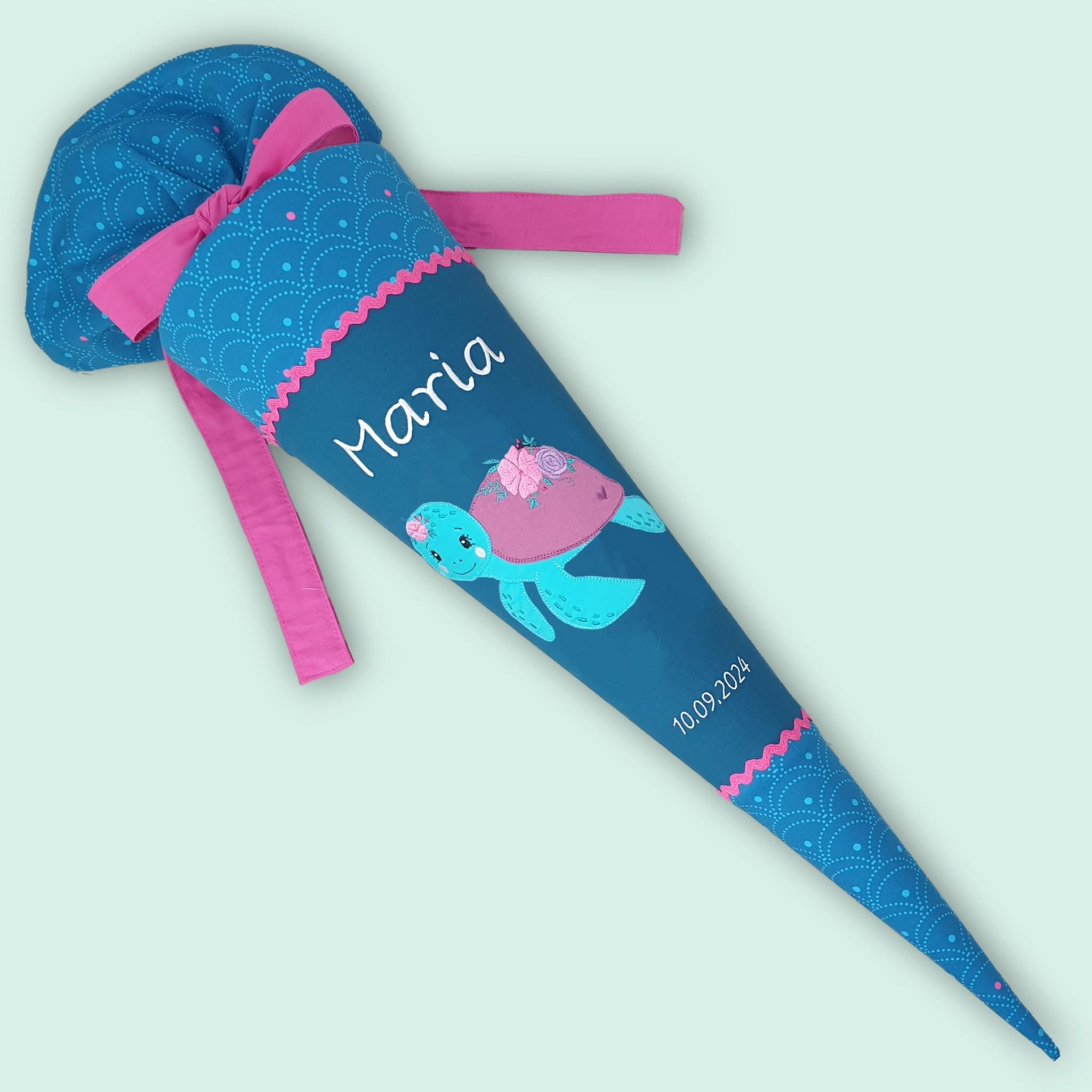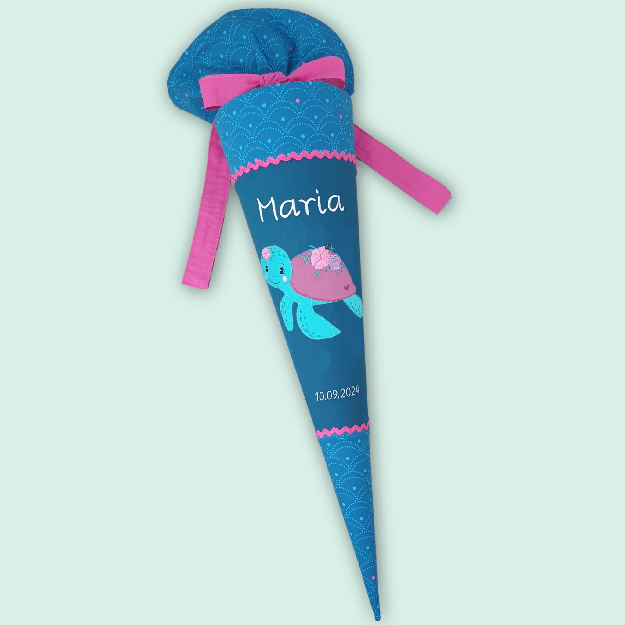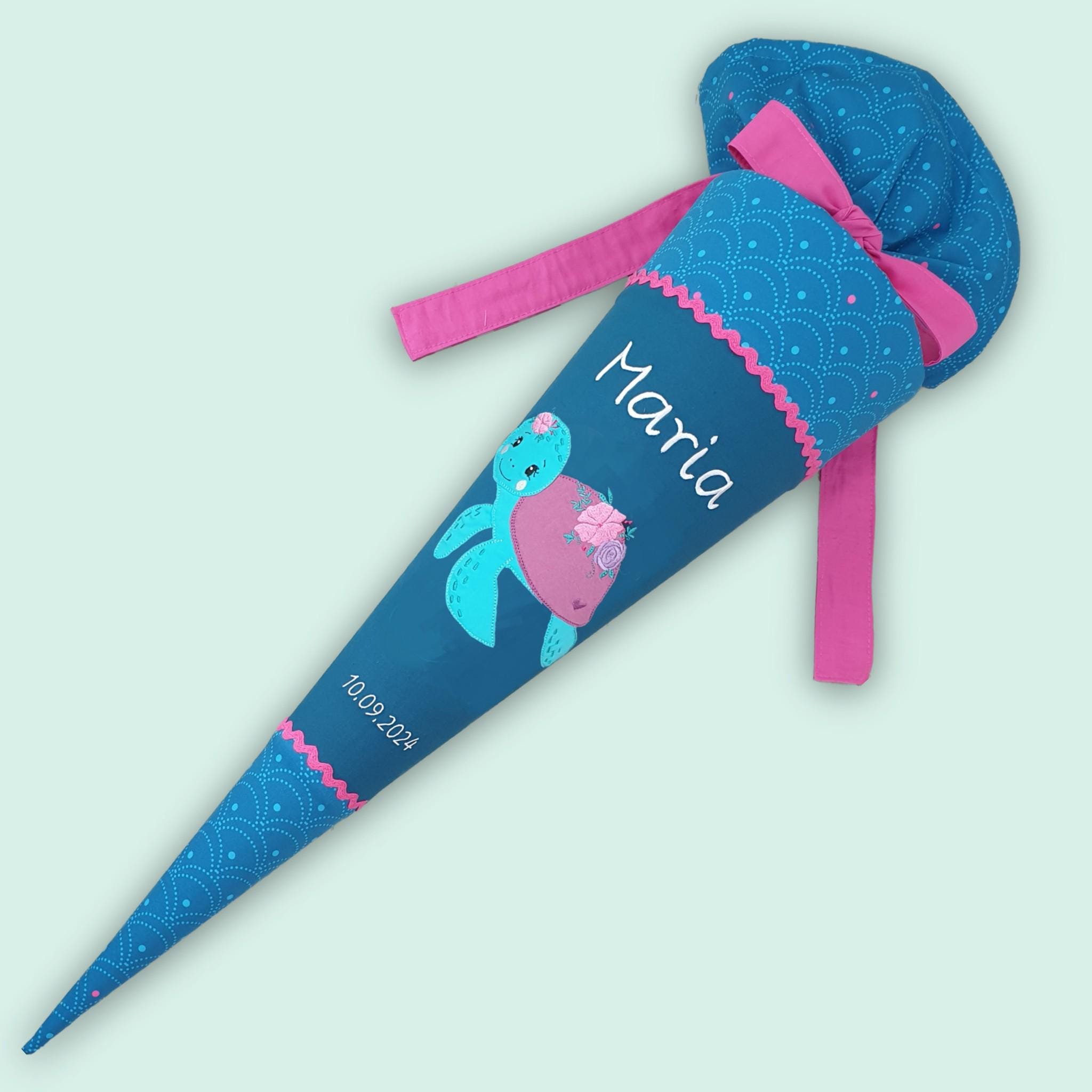 Schultüte mit Schildkröte und Namen farblich auf den Step by step Dolphin Pippa Schulranzen abgestimmt.