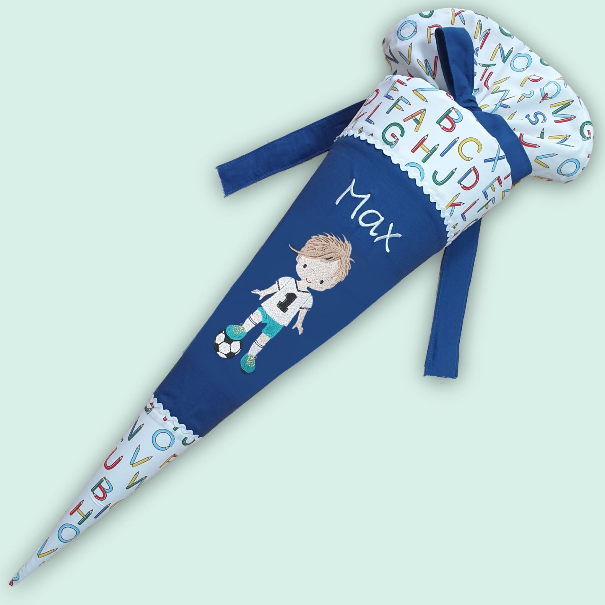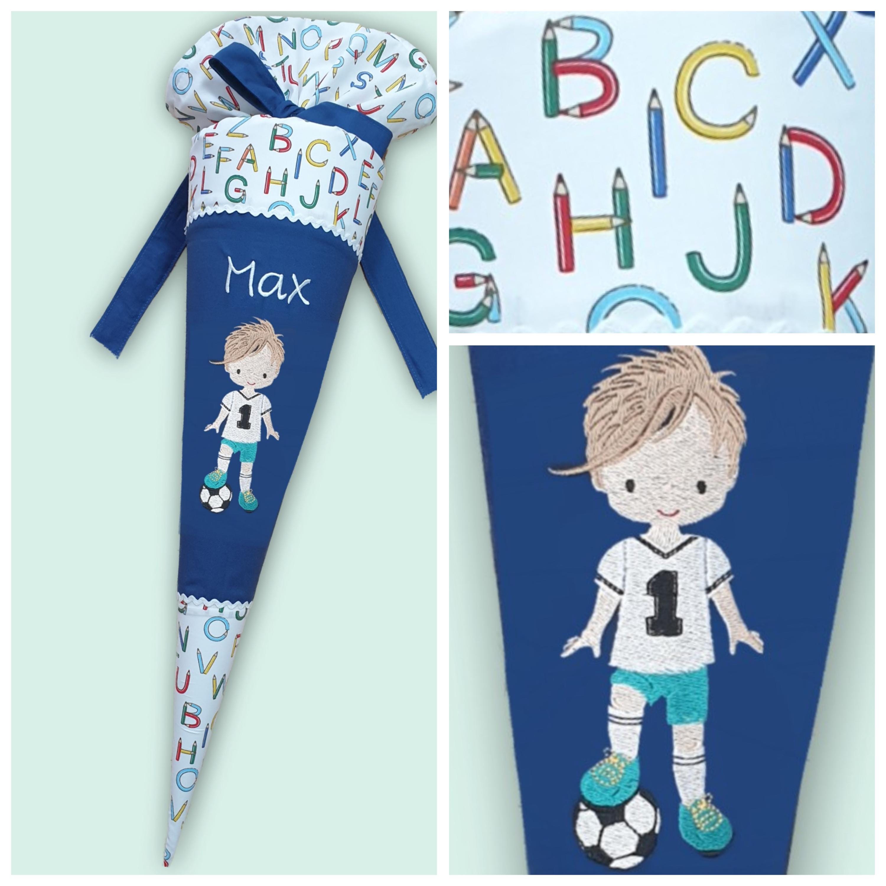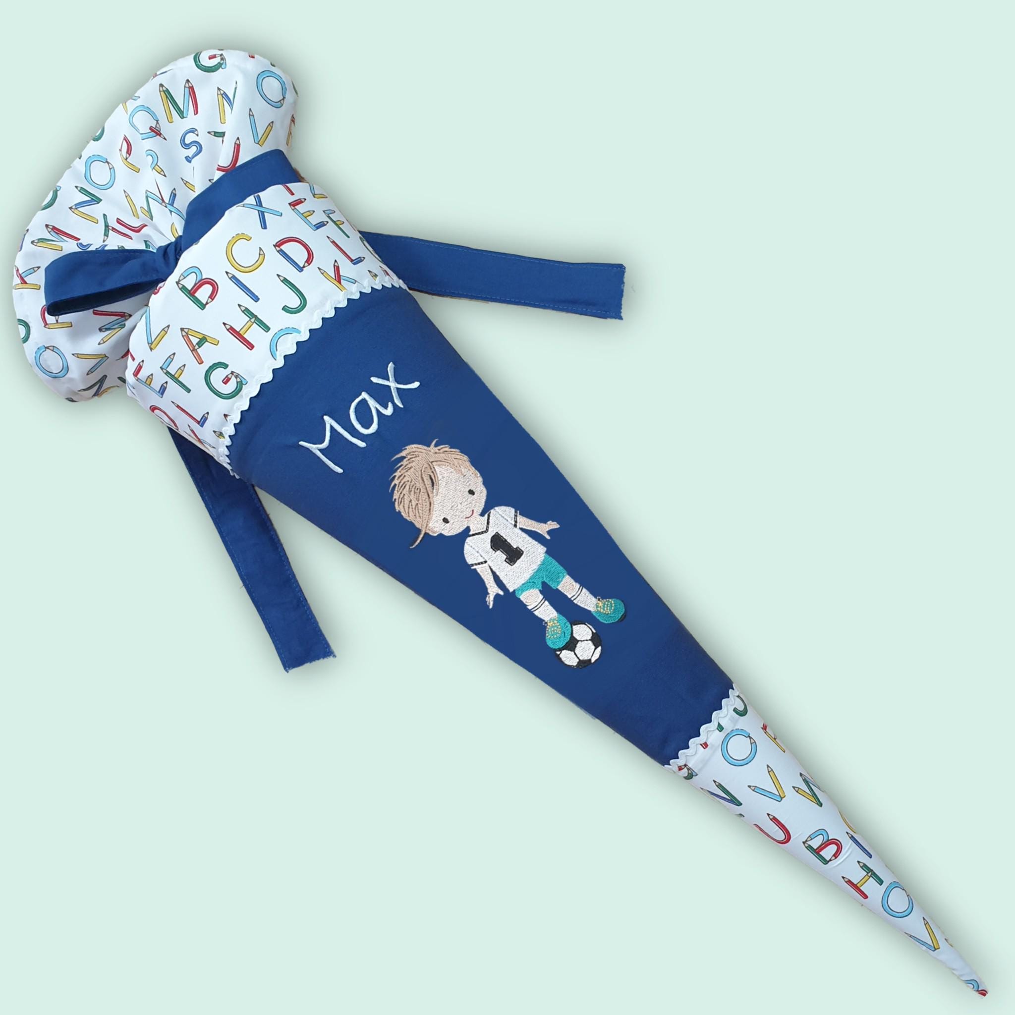 Jede Schultüte wird mit einem gestickten Motiv und dem Namen deines Kindes individuell gestaltet. Auf Wunsch fügen wir auch das Datum des ersten Schultages hinzu.