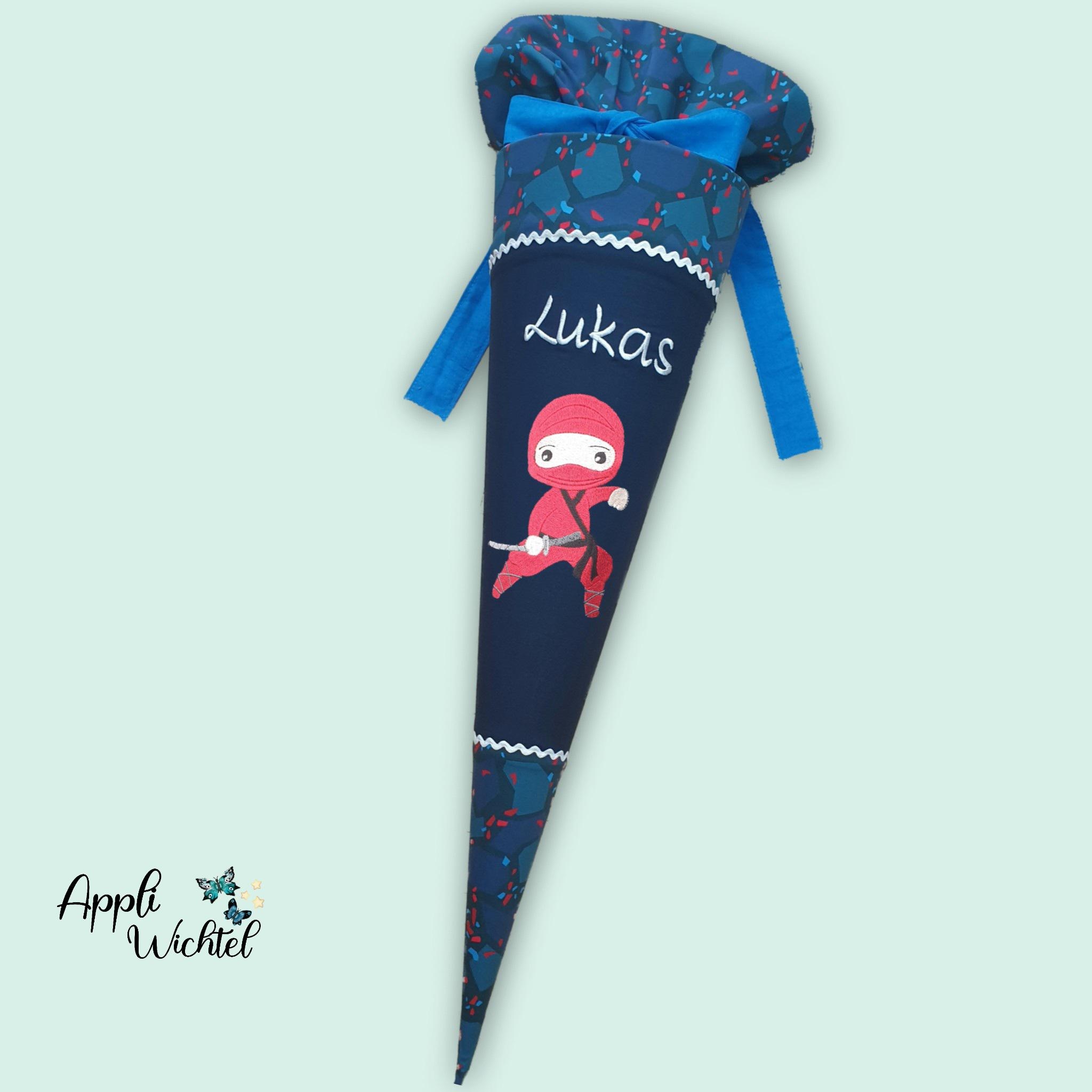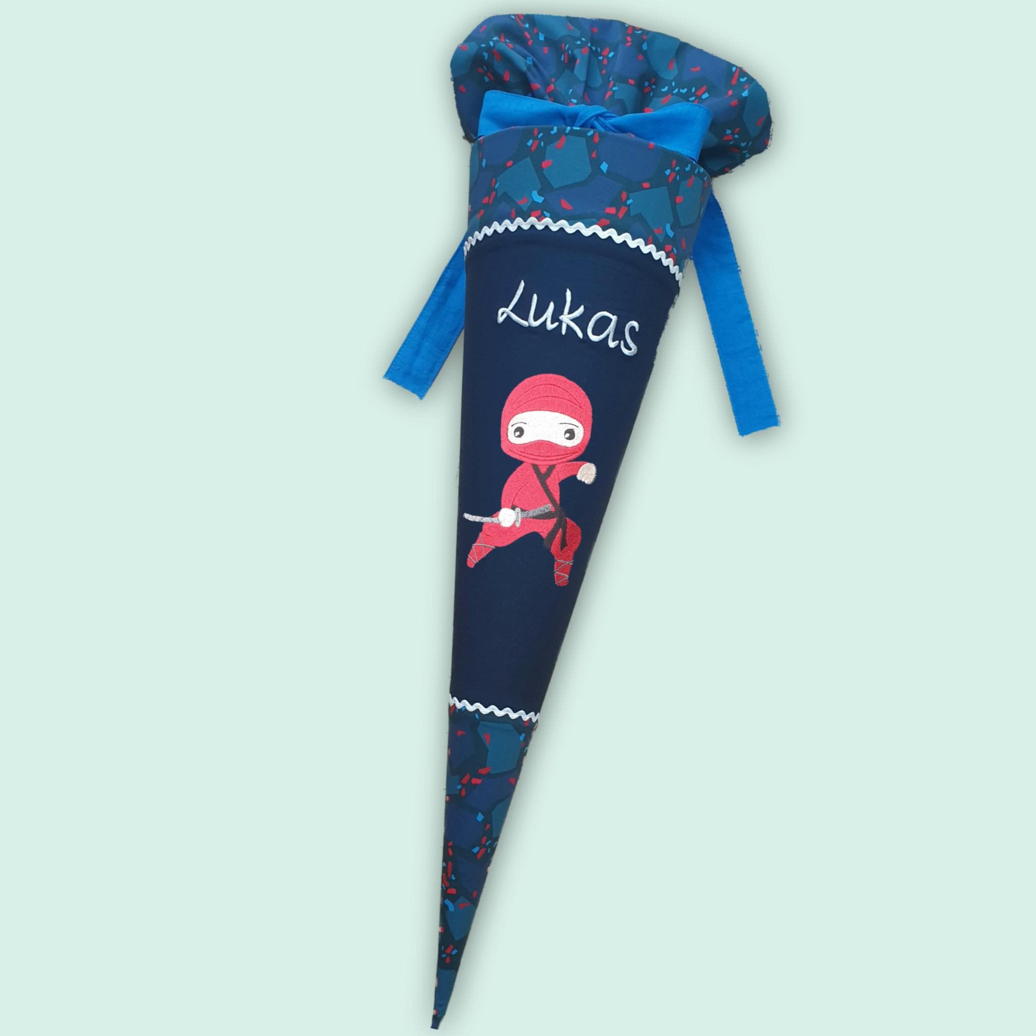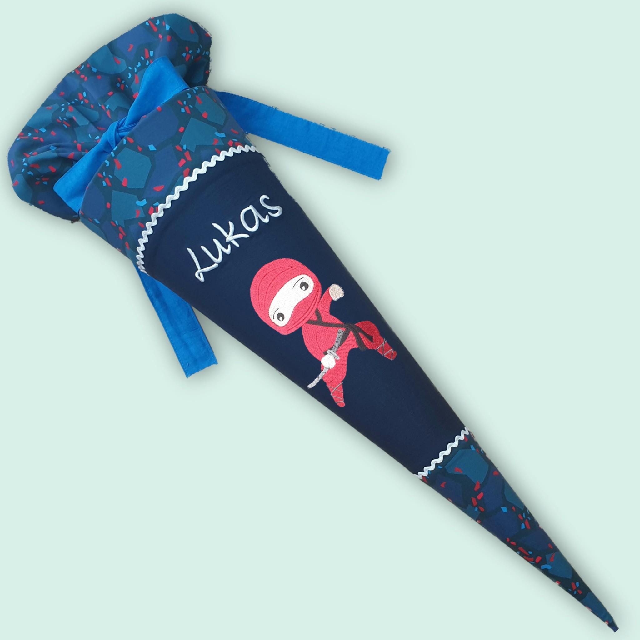 Jede Schultüte wird mit einem gestickten Motiv und dem Namen deines Kindes individuell gestaltet. Auf Wunsch fügen wir auch das Datum des ersten Schultages hinzu.