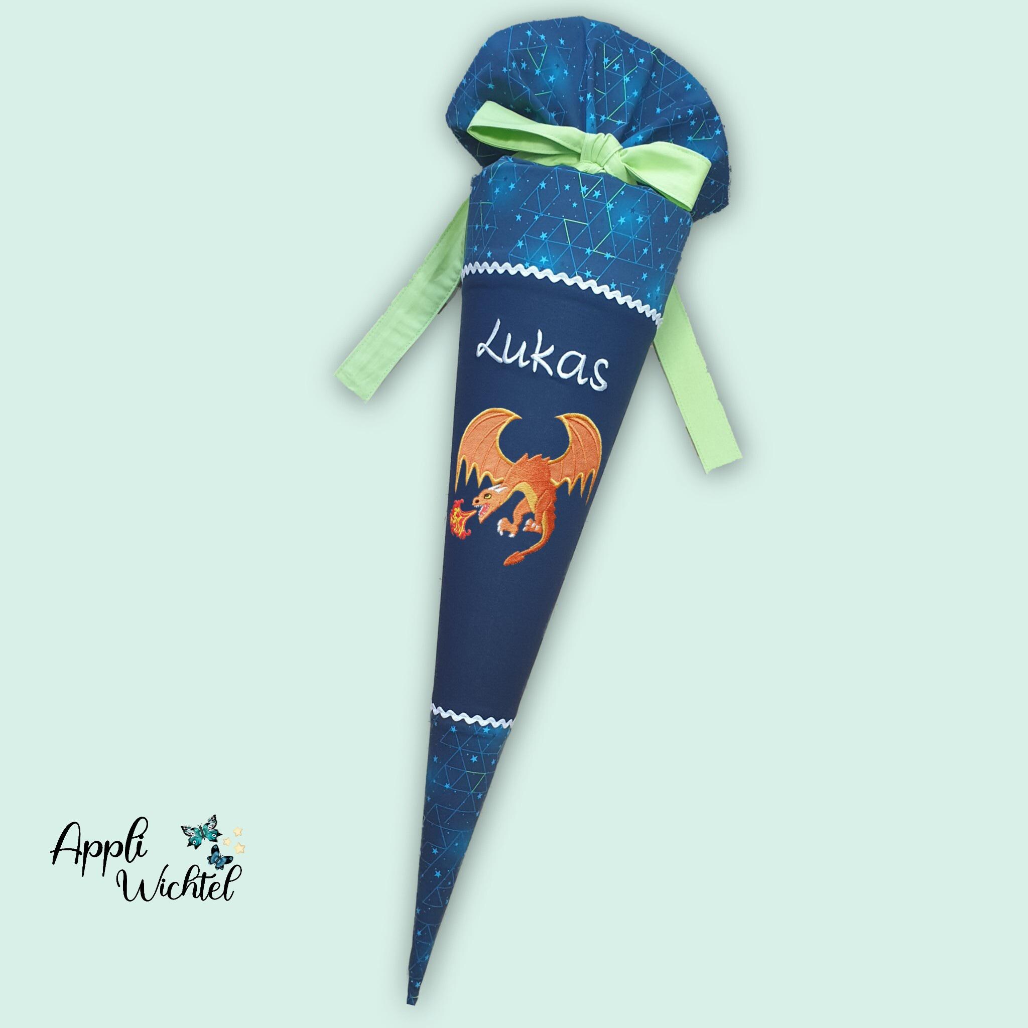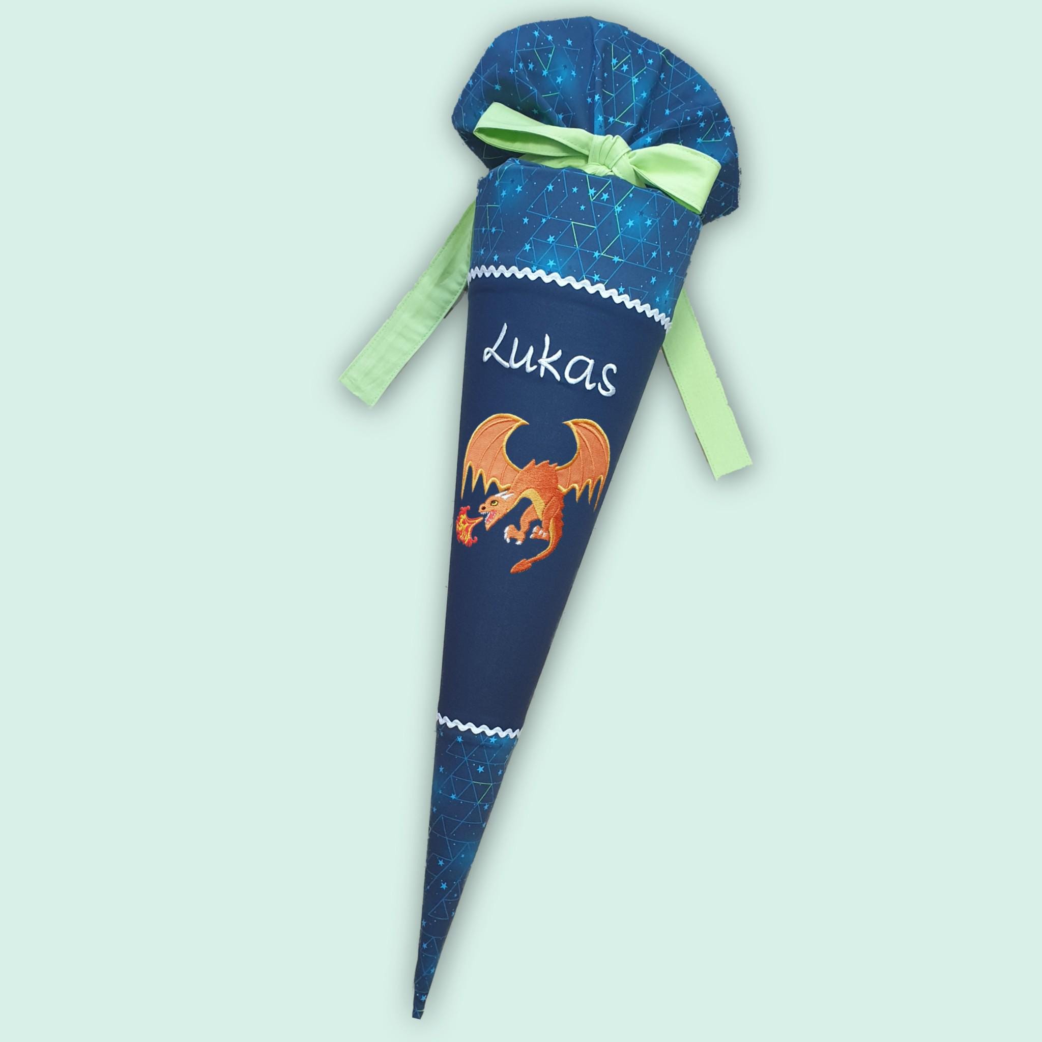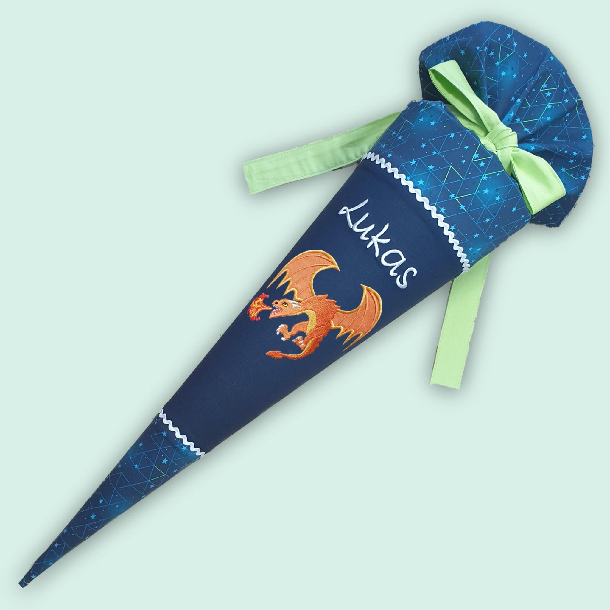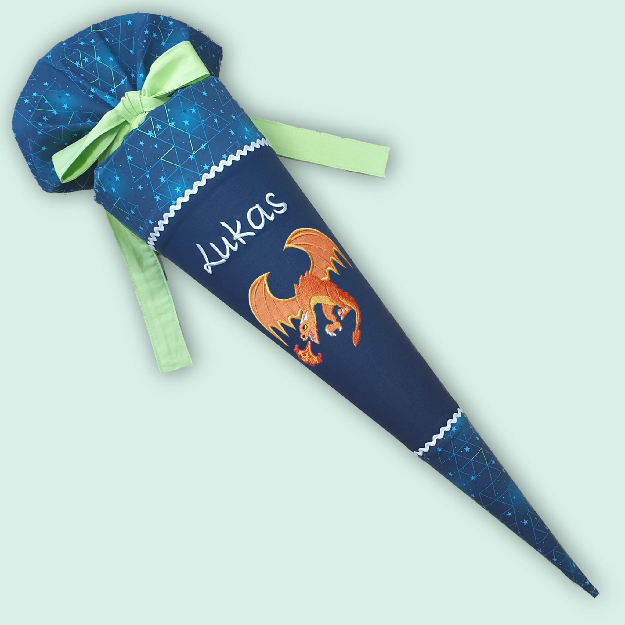 Schultüte mit Drache und Namen farblich auf den Step by Step Starship Galactus Schulranzen abgestimmt.