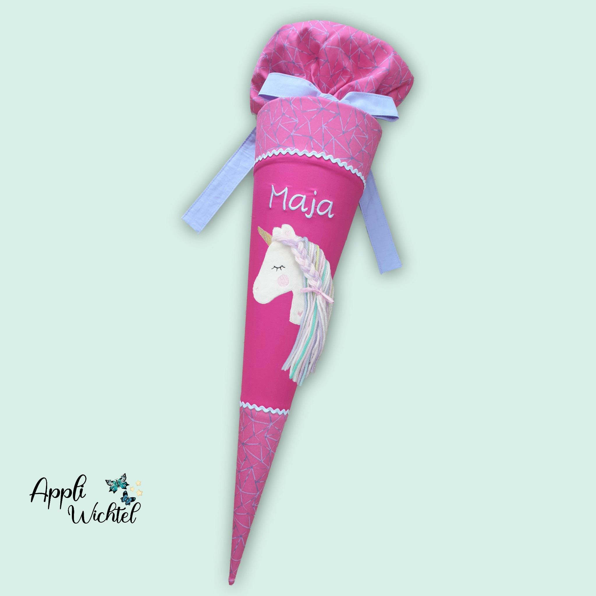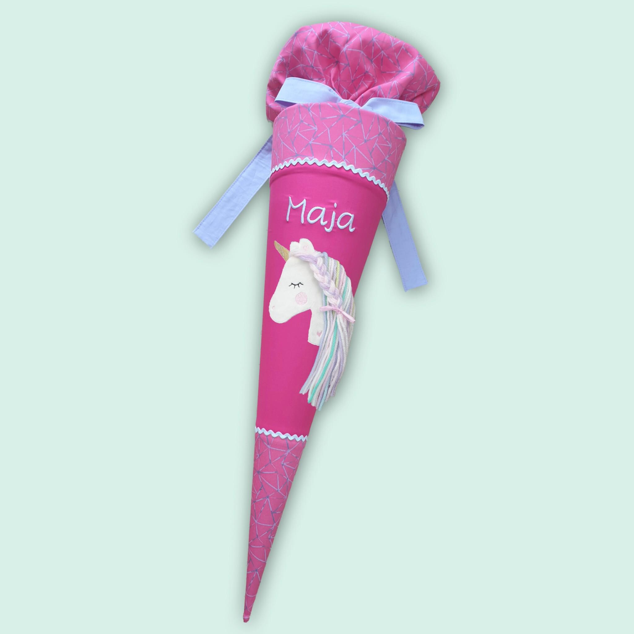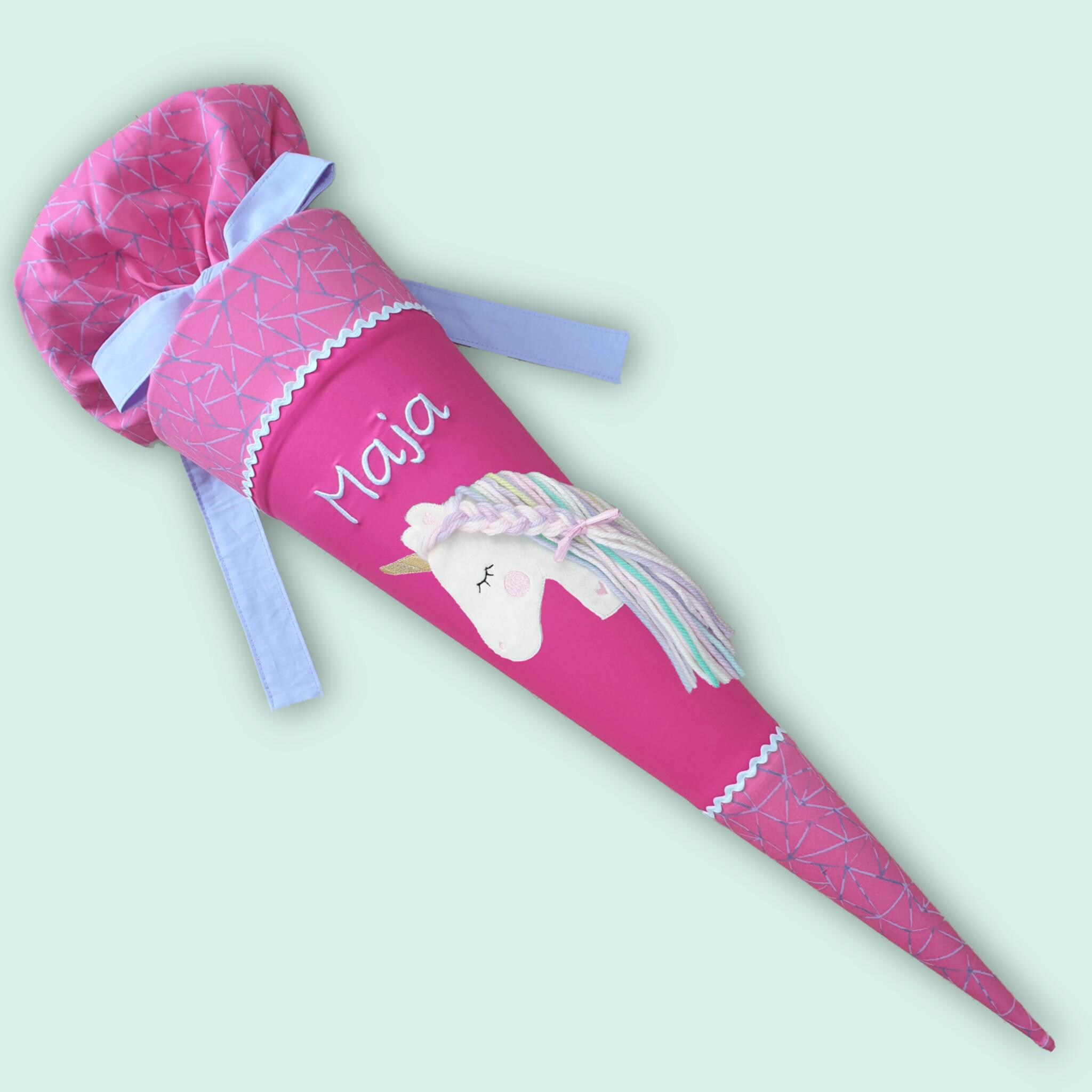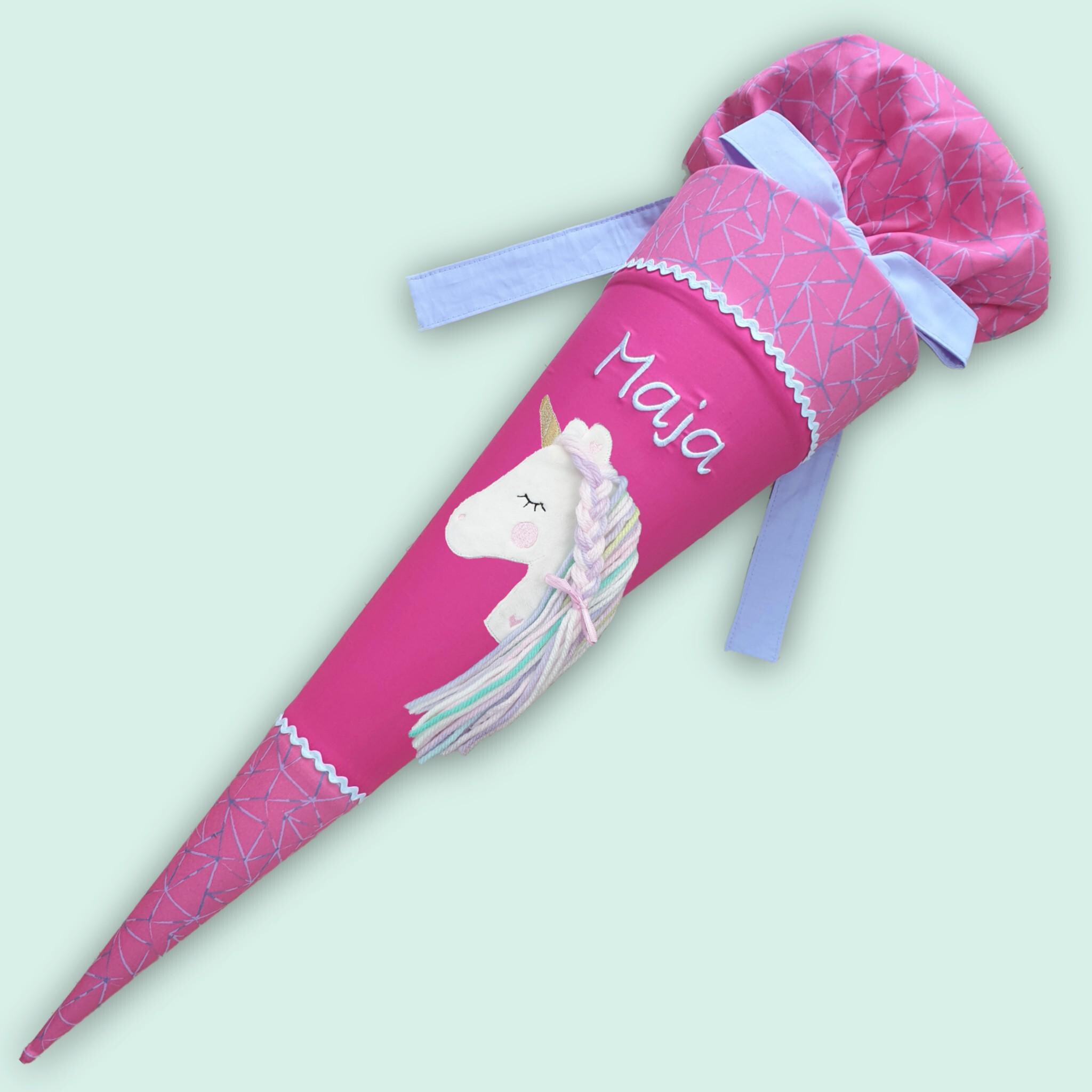 Schultüte mit Einhorn und Namen farblich auf den Star Stella Schulranzen abgestimmt.