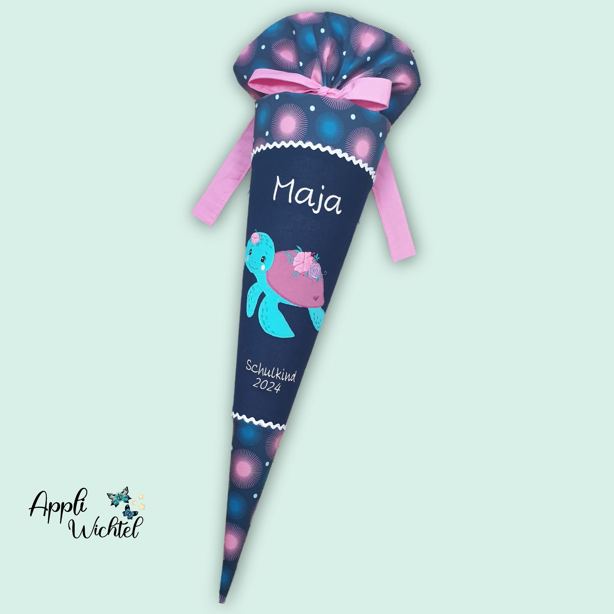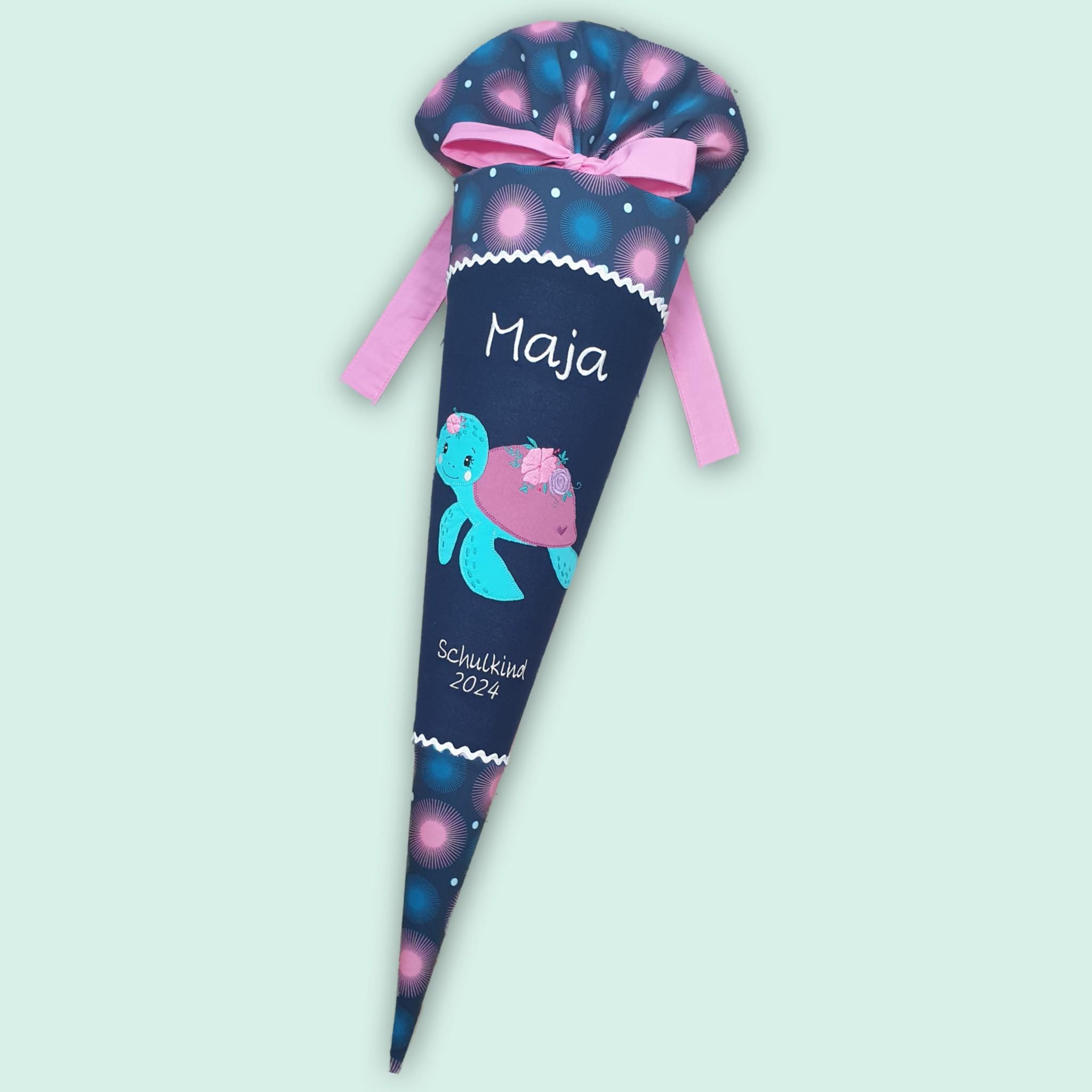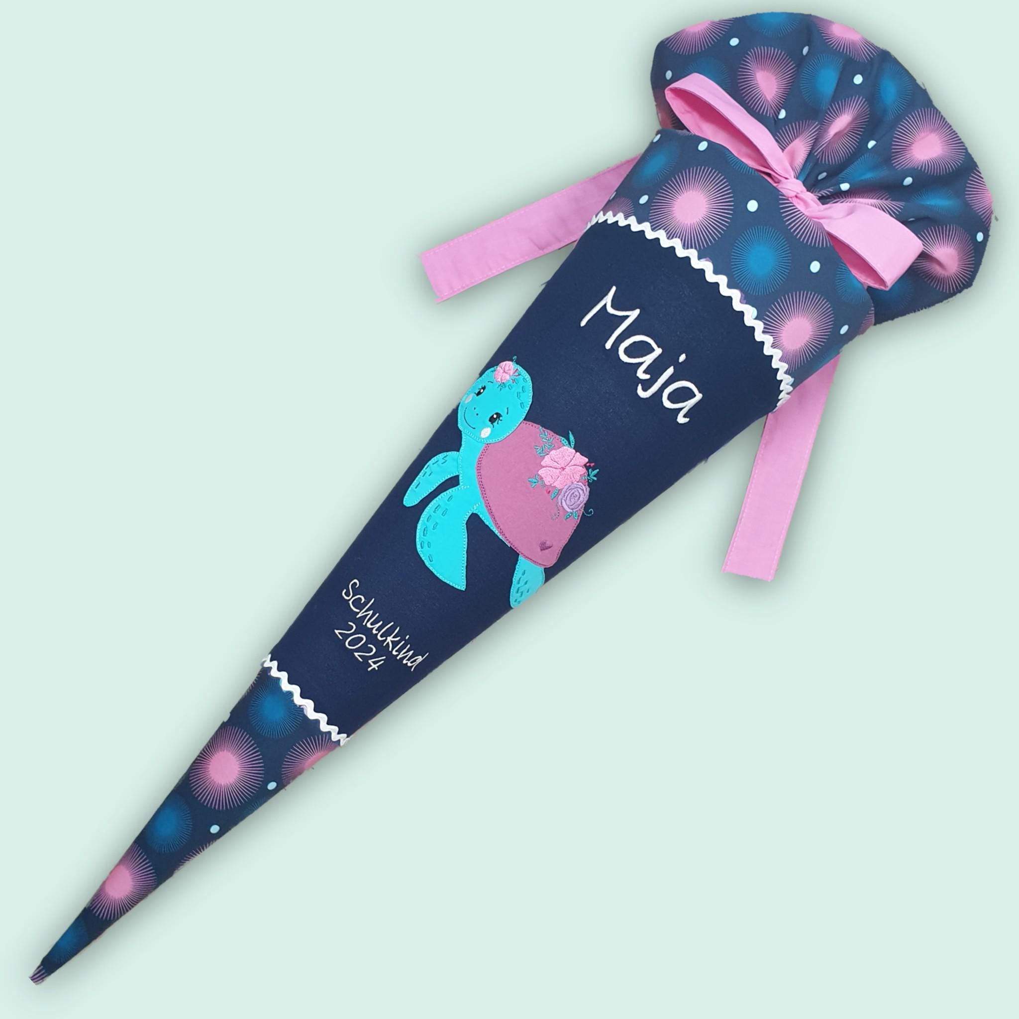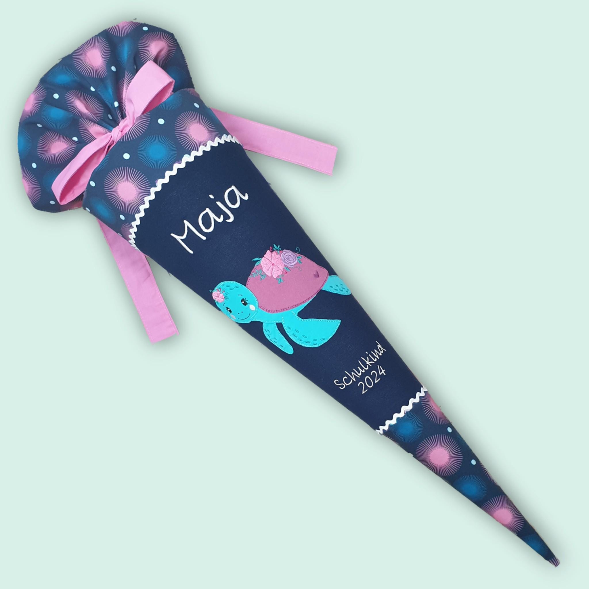 Schultüte mit Schildkröte und Namen farblich auf den Step by step Mermaid Delia Schulranzen abgestimmt.