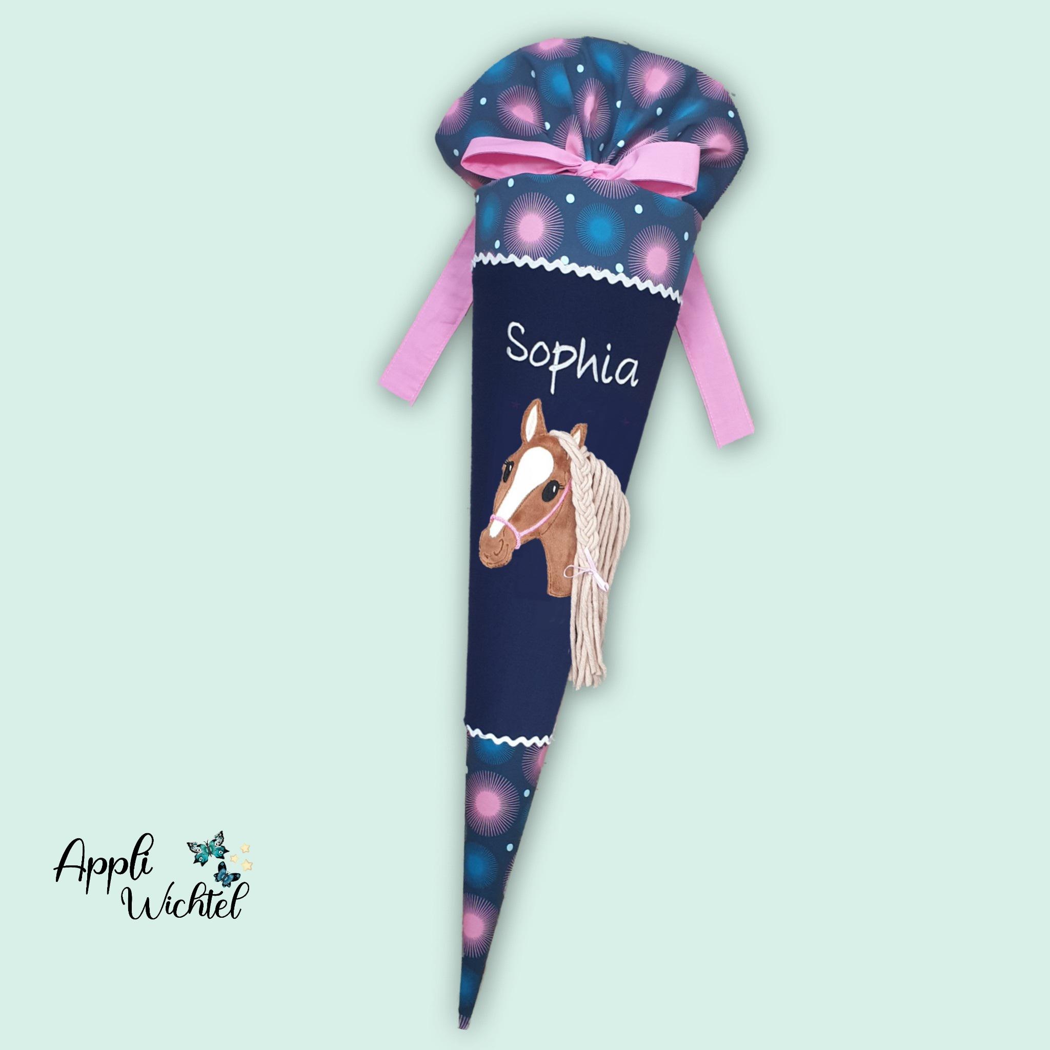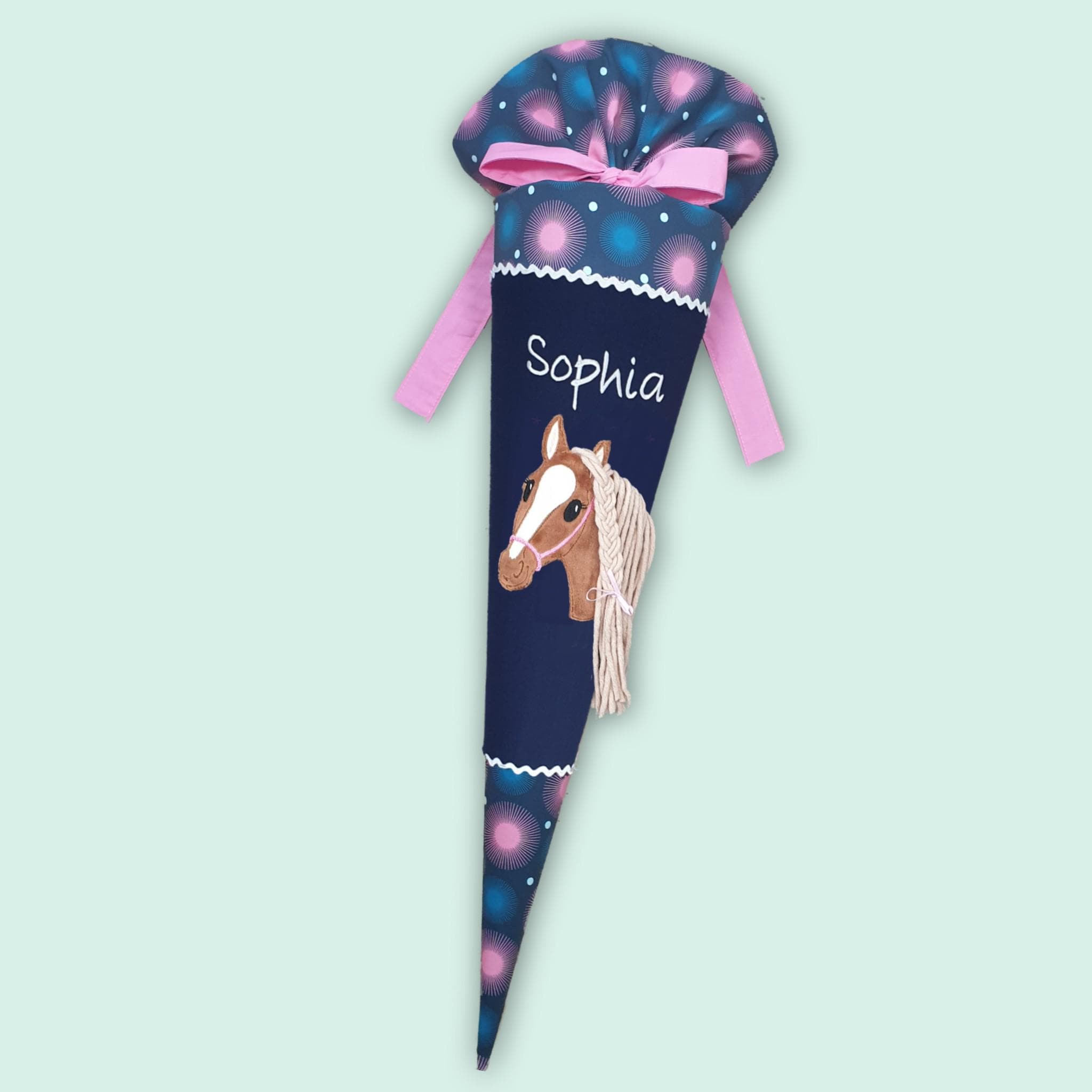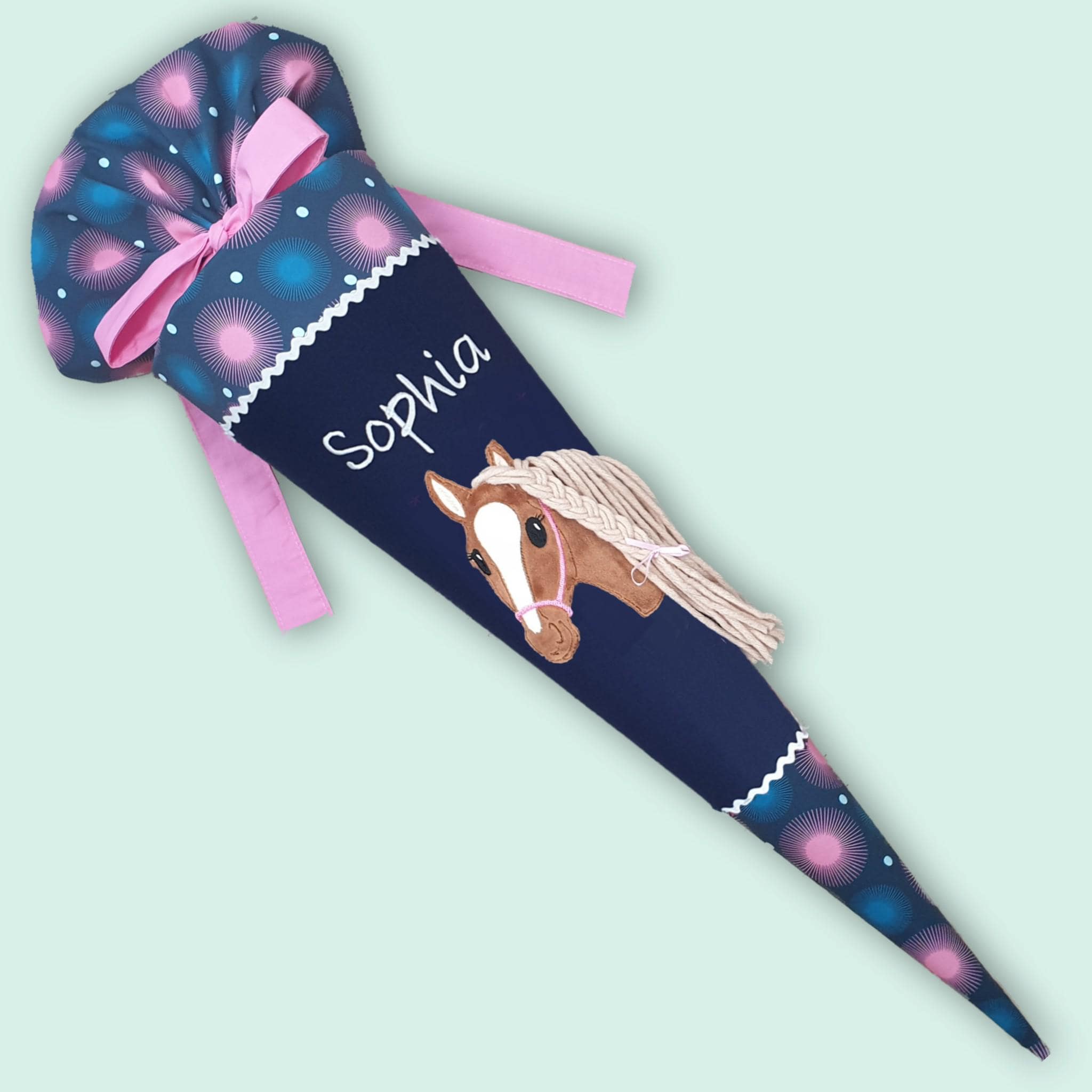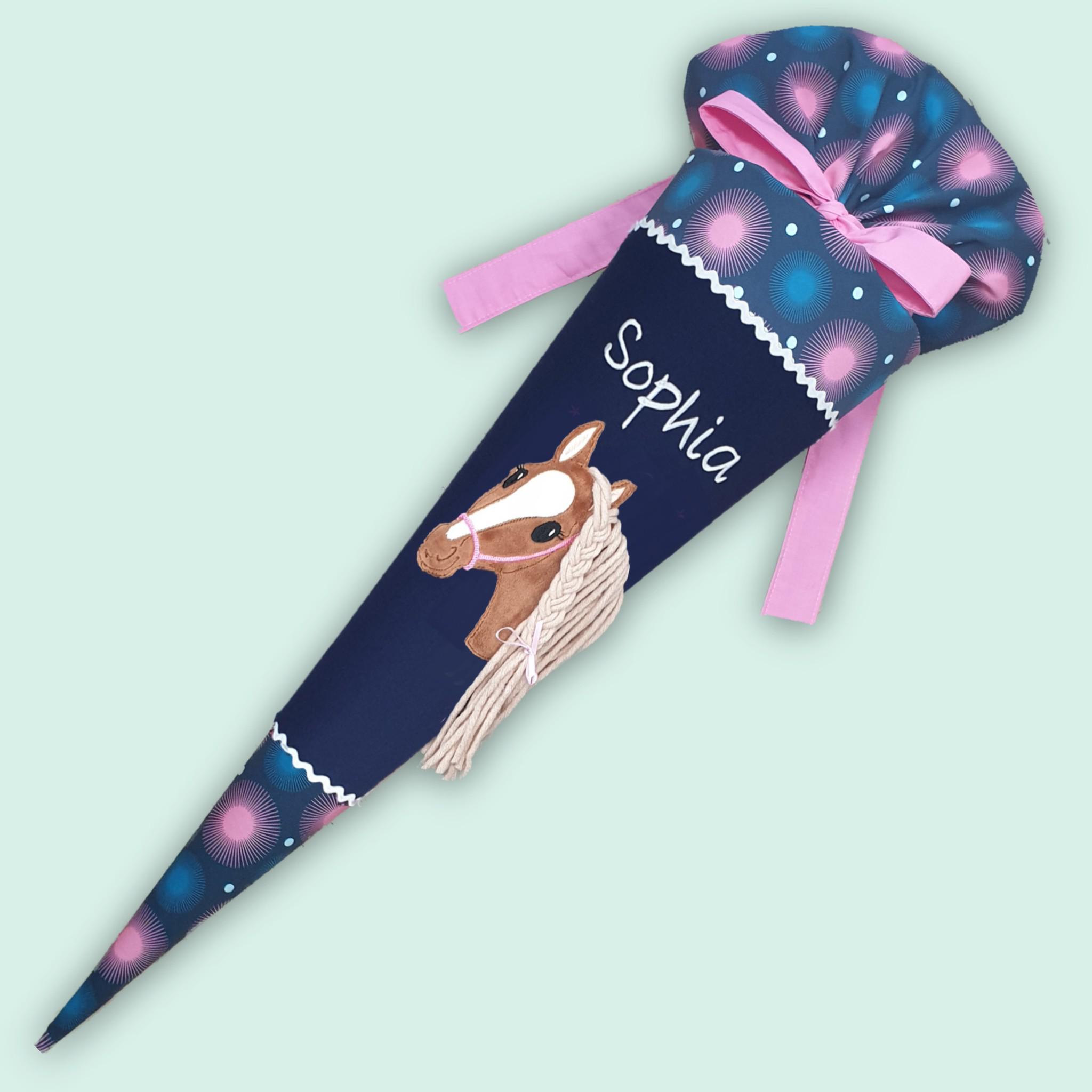 Schultüte mit Pferd und Namen farblich auf den Step by step Mermaid Delia Schulranzen abgestimmt.