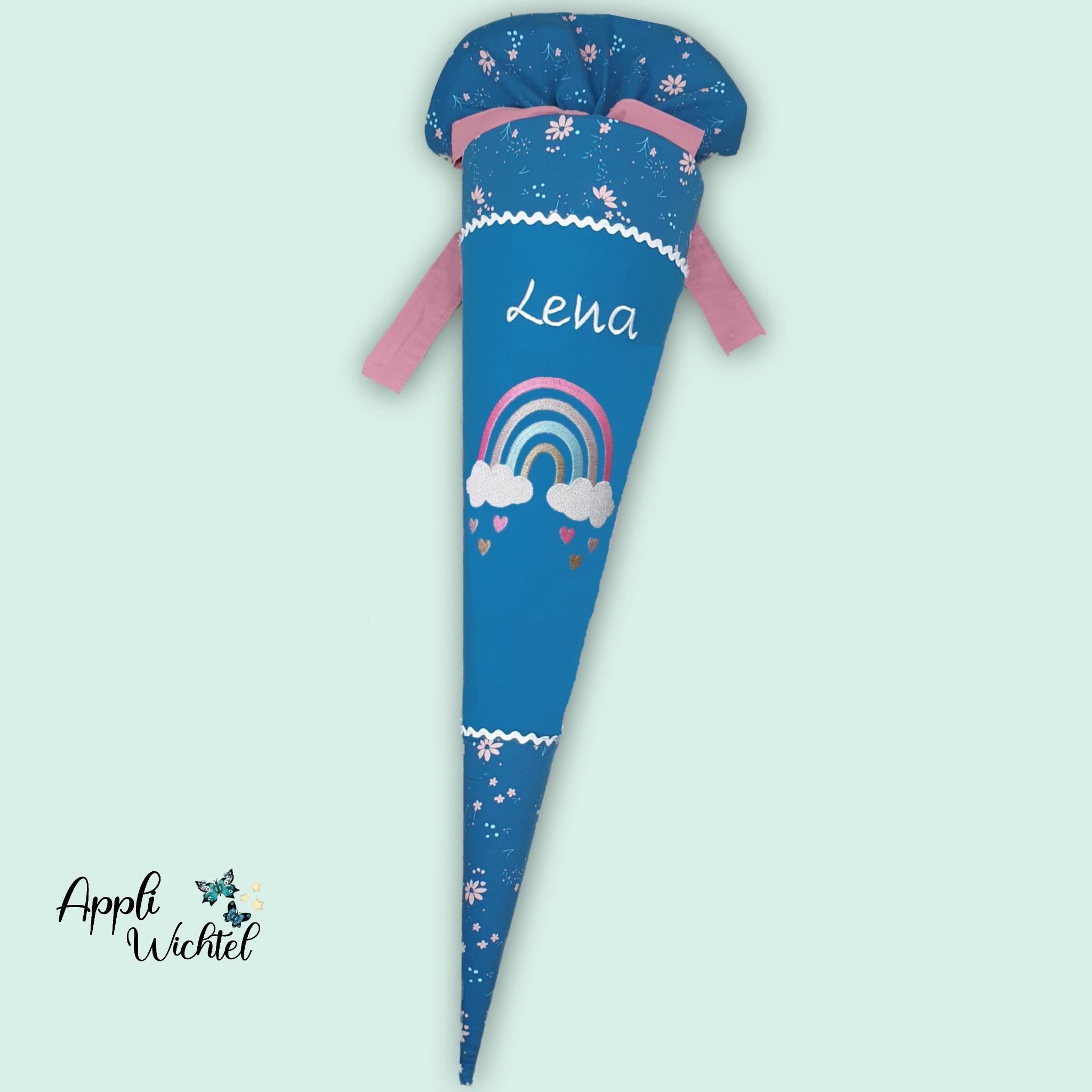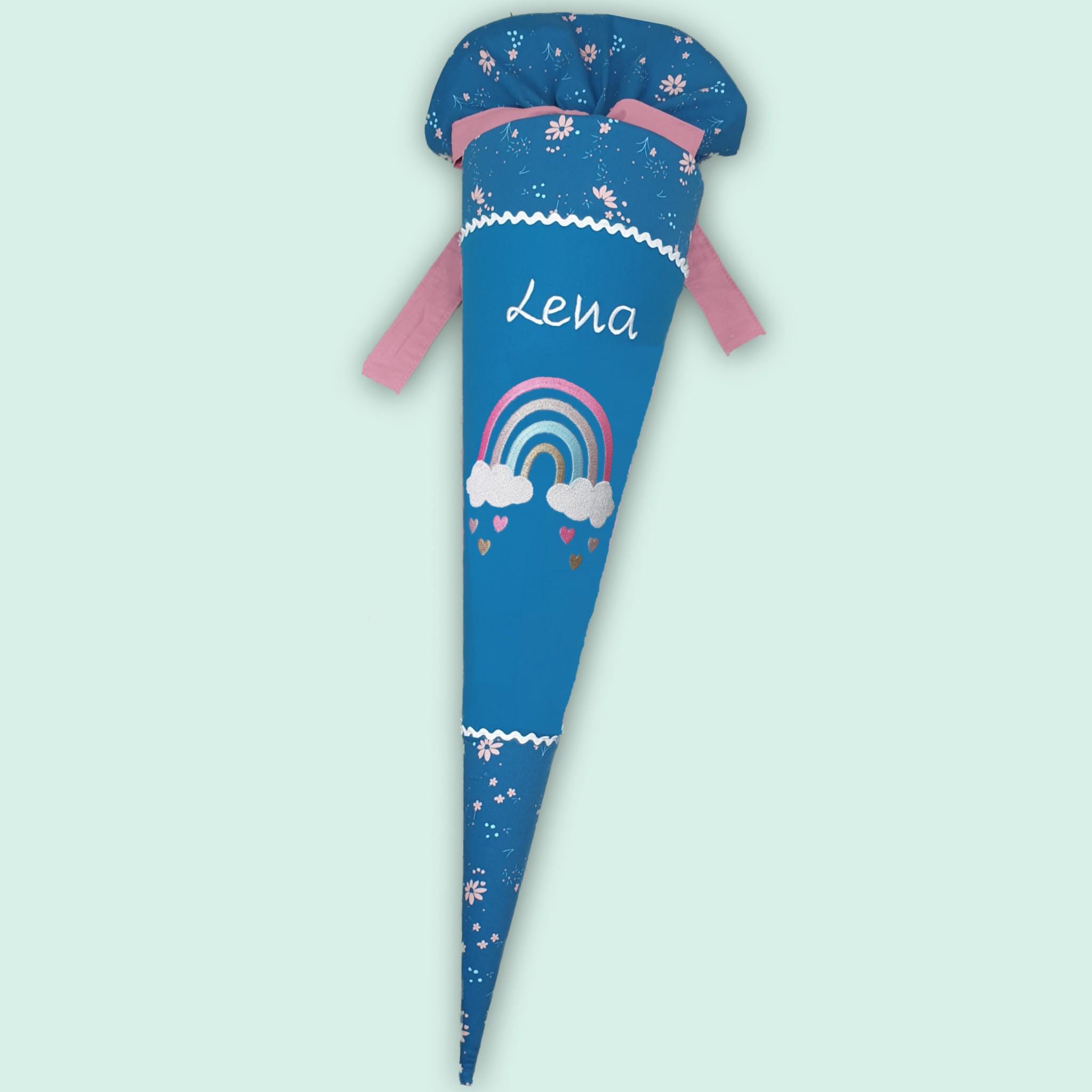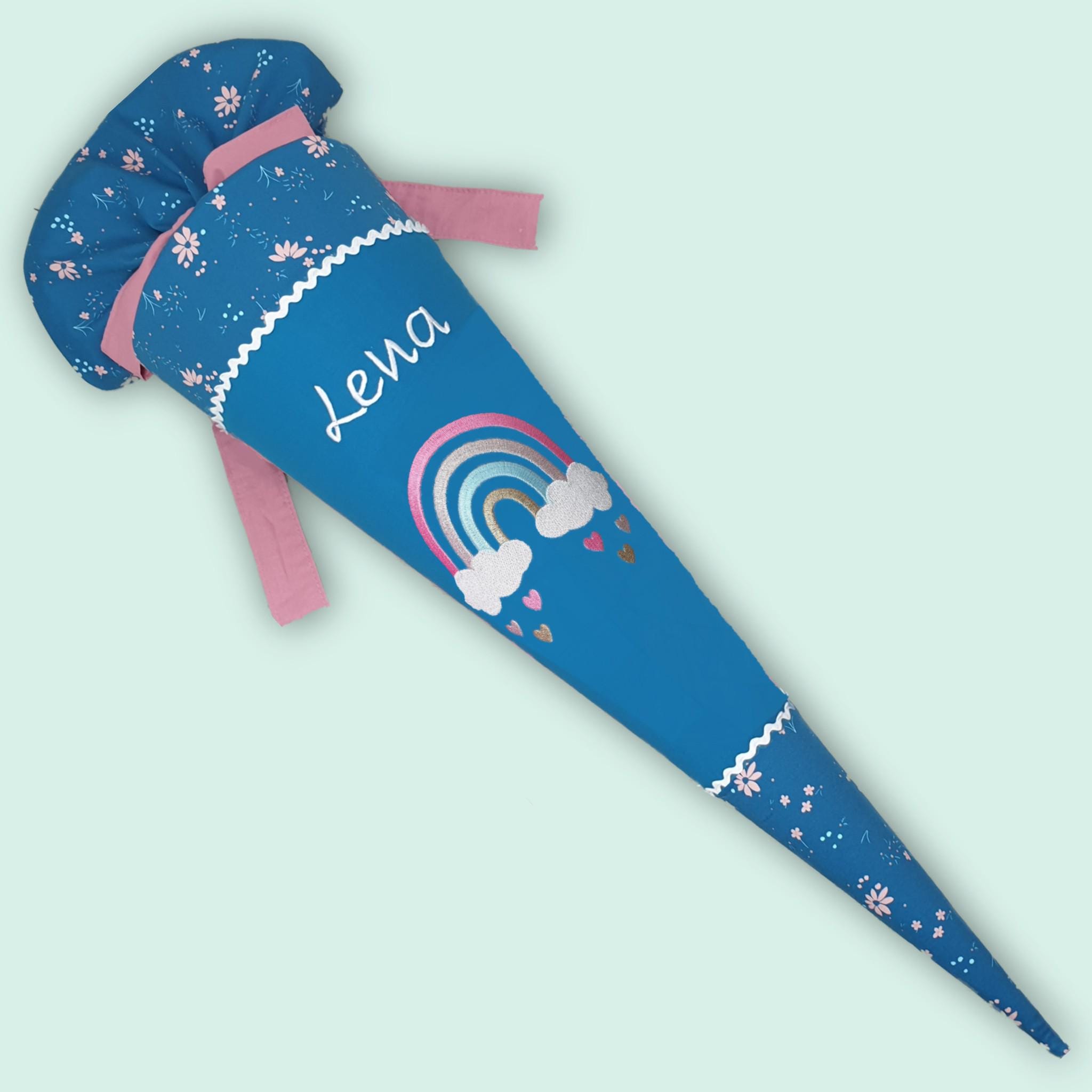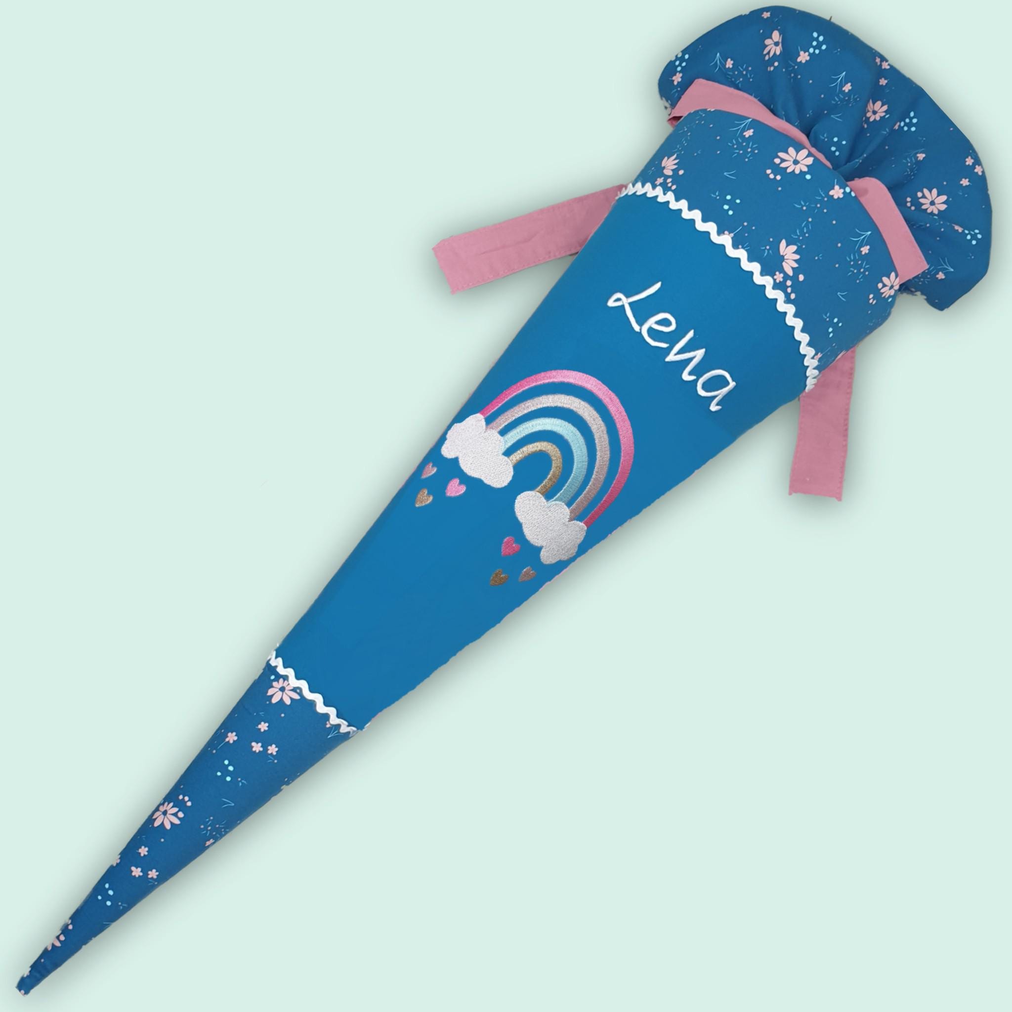 Schultüte mit Regenbogen und Namen farblich auf den Step by step Wild Horse Ronja abgestimmt.