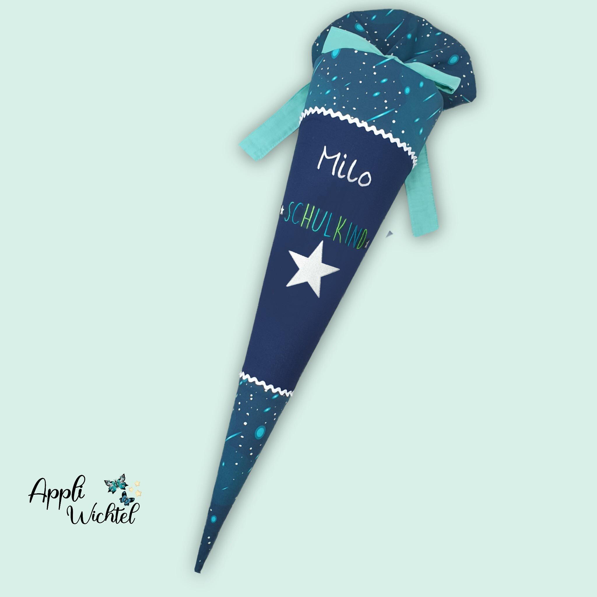 Jede Schultüte wird mit einem gestickten Motiv und dem Namen deines Kindes individuell gestaltet. Auf Wunsch fügen wir auch das Datum des ersten Schultages hinzu.