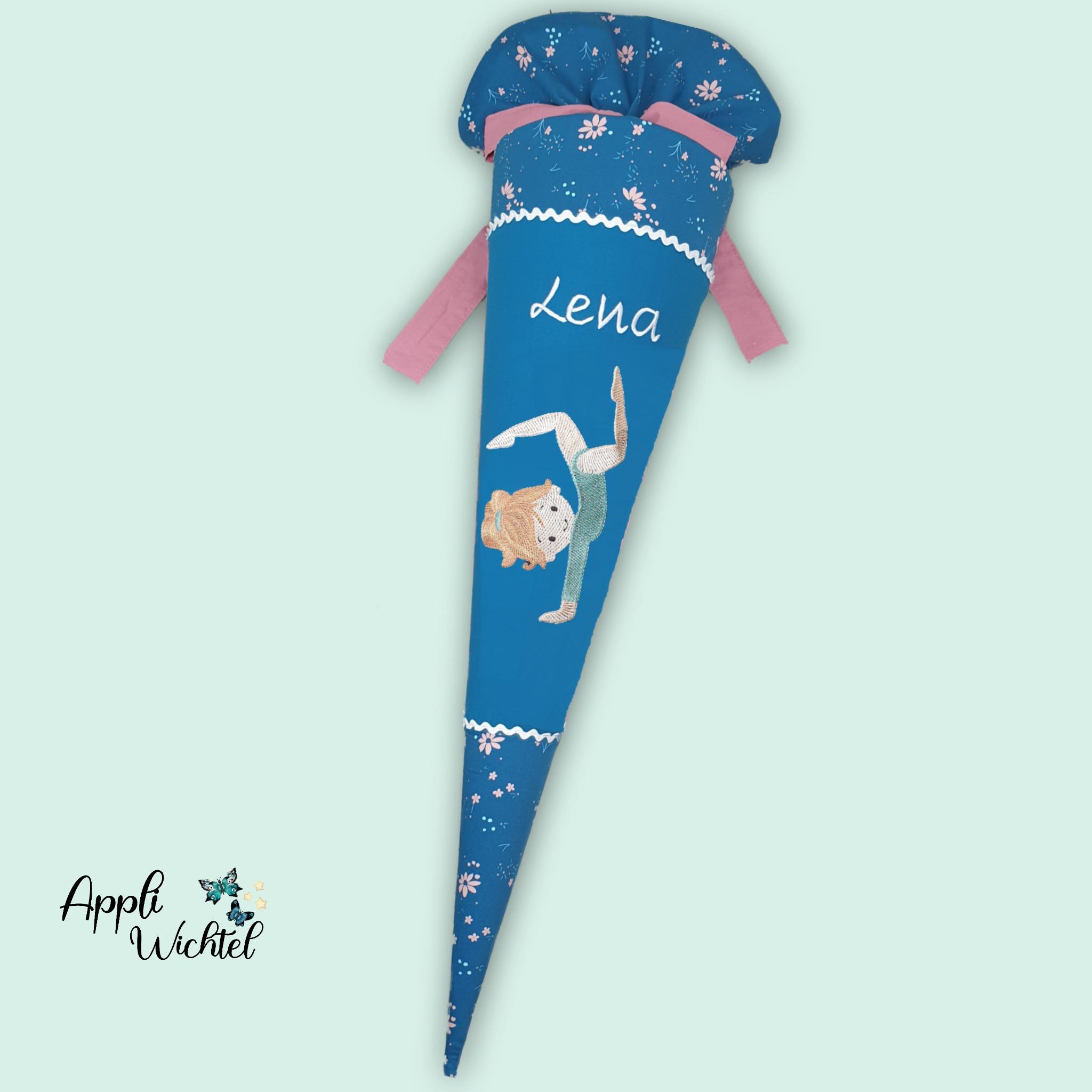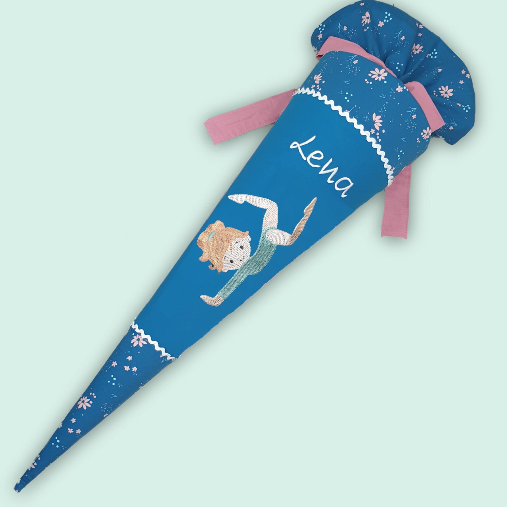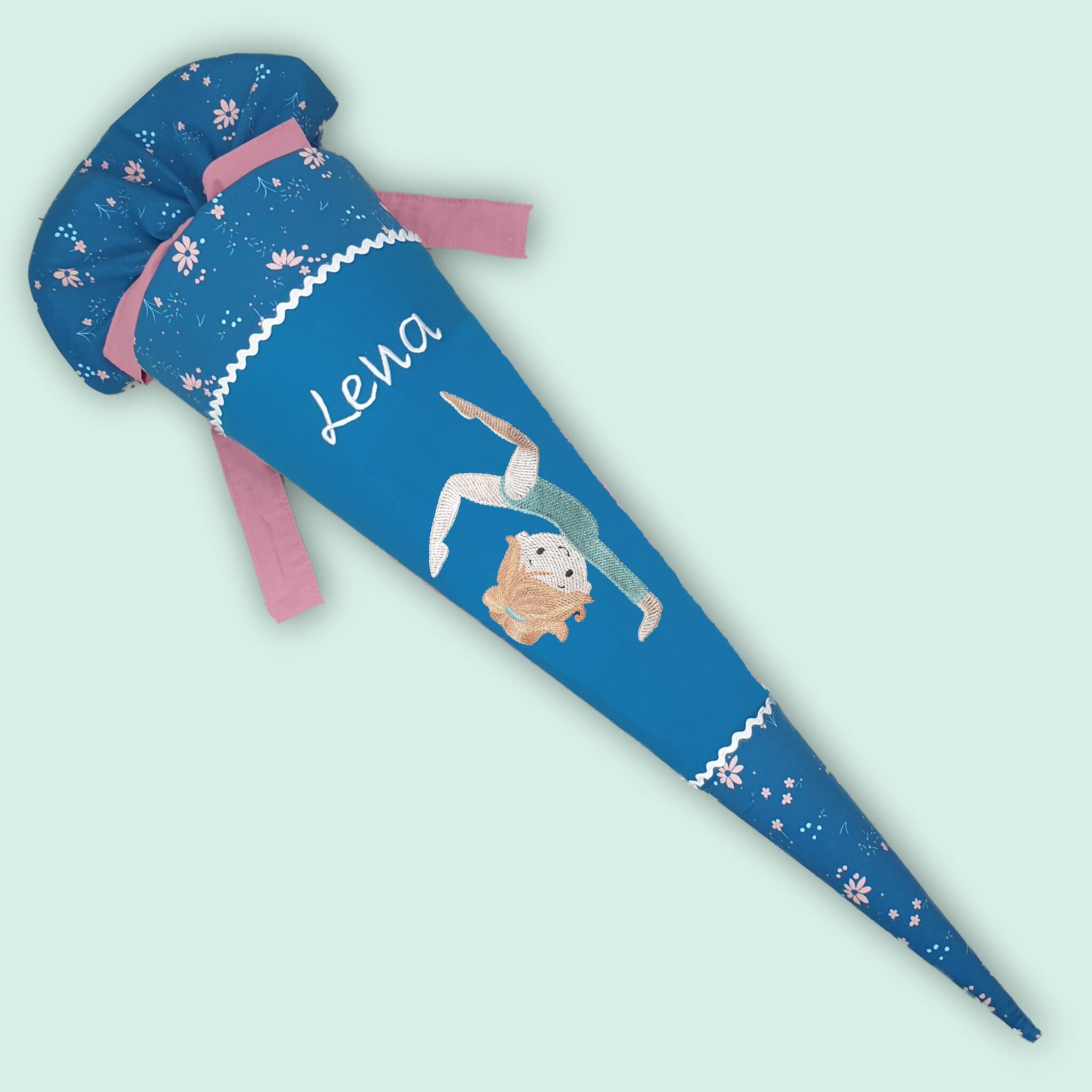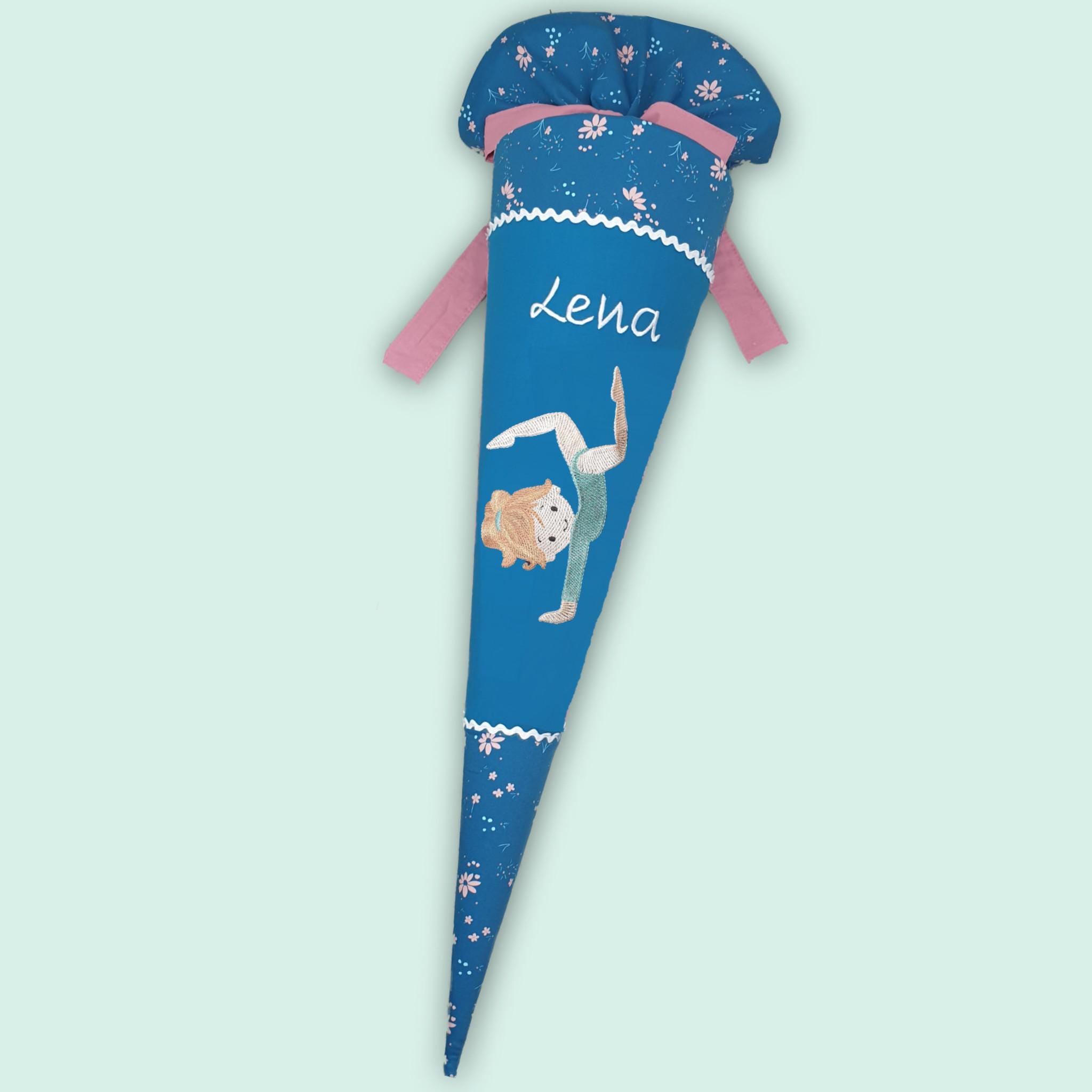 Schultüte mit Turnerin und Namen farblich auf den Step by step Wild Horse Ronja abgestimmt.