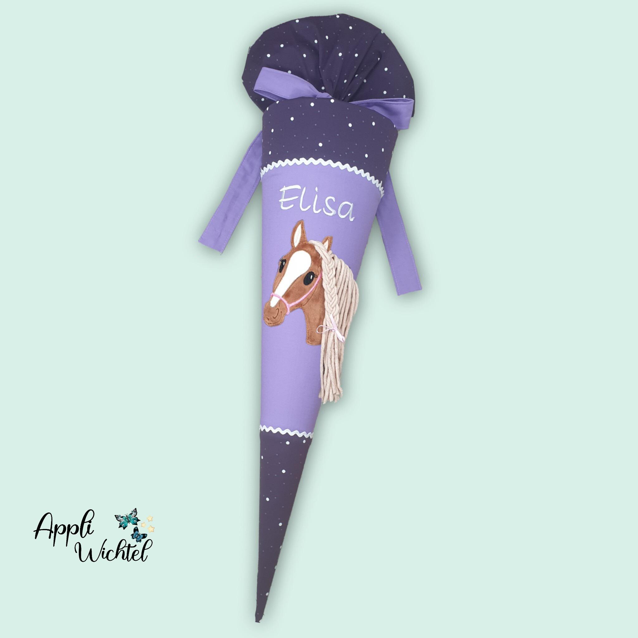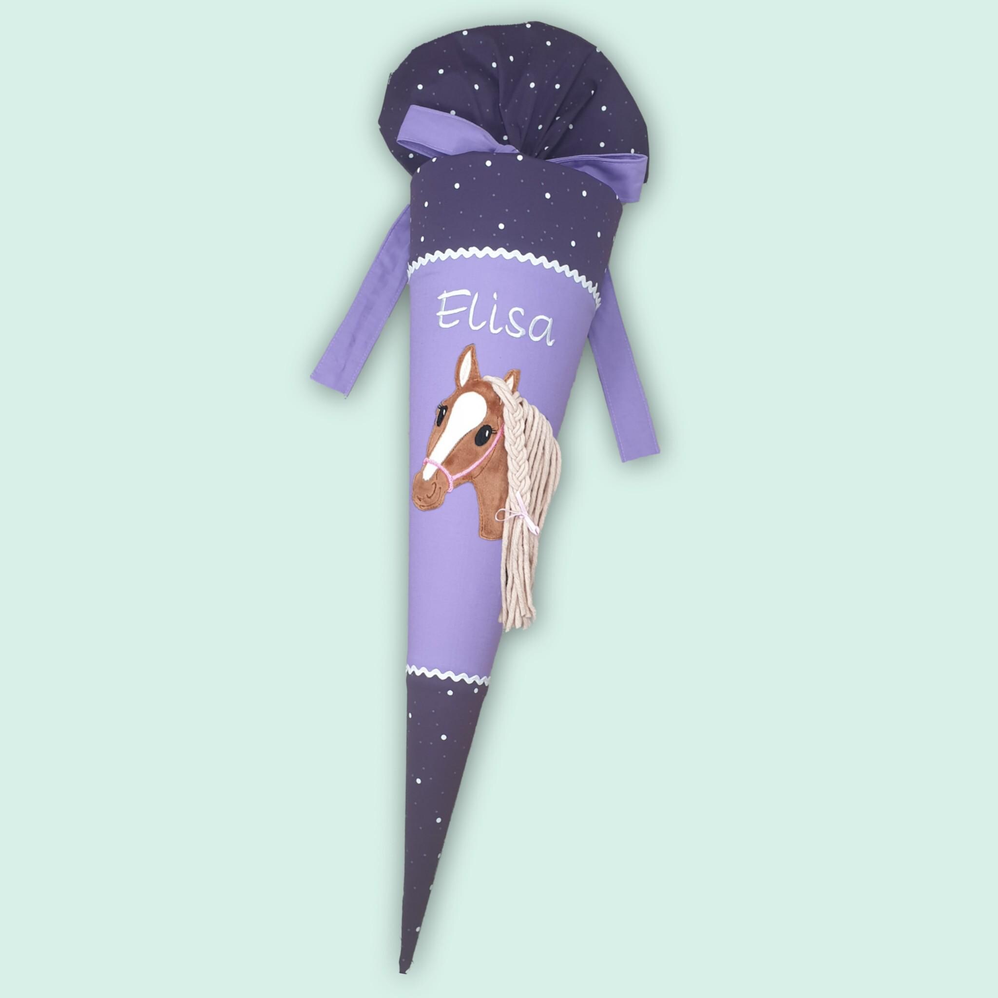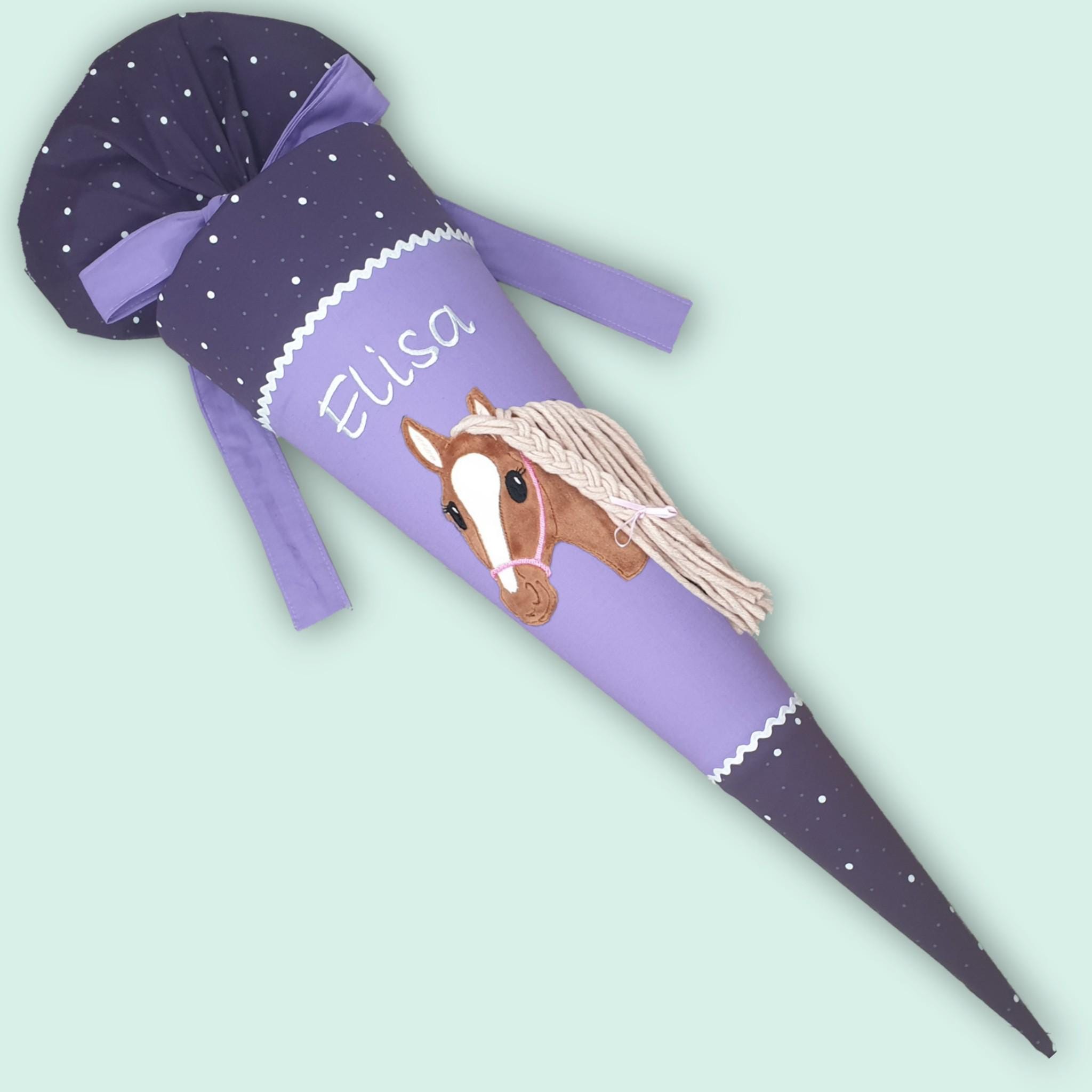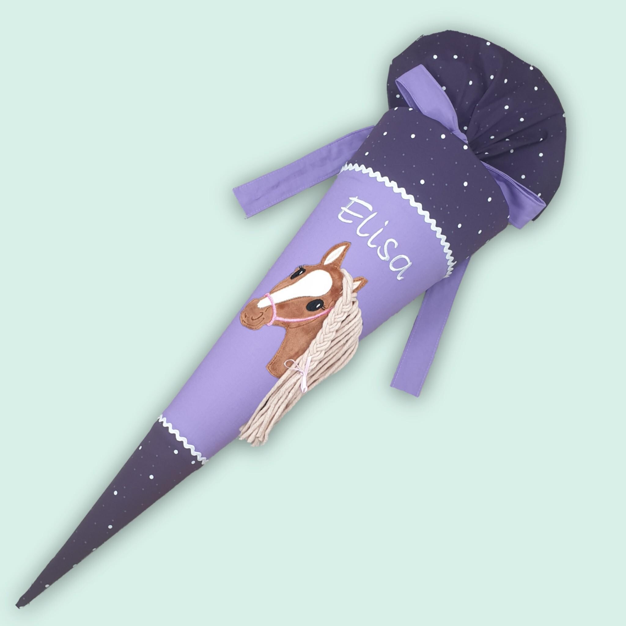 Schultüte mit Pferd und Namen farblich auf den Sternguckbär Schulranzen abgestimmt.