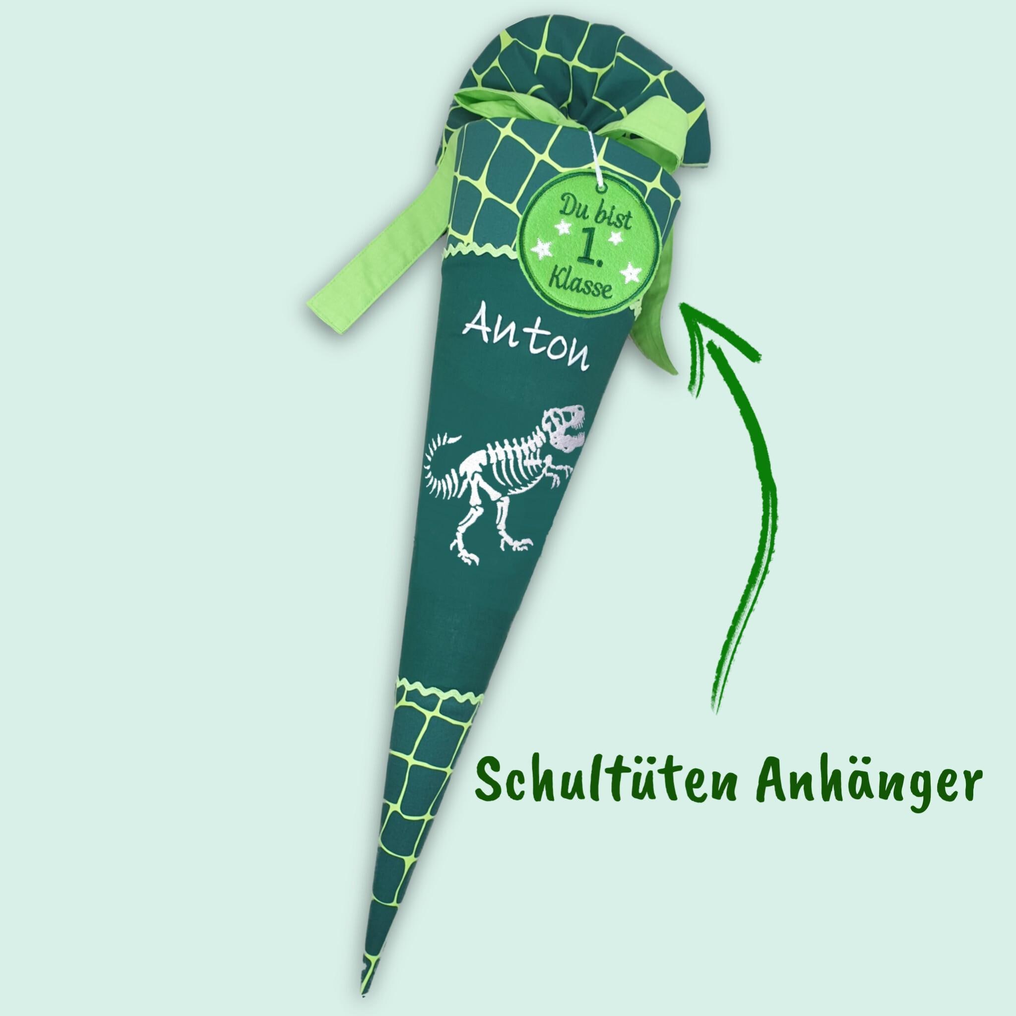 Jede Schultüte wird mit einem gestickten Motiv und dem Namen deines Kindes individuell gestaltet. Auf Wunsch fügen wir auch das Datum des ersten Schultages hinzu.