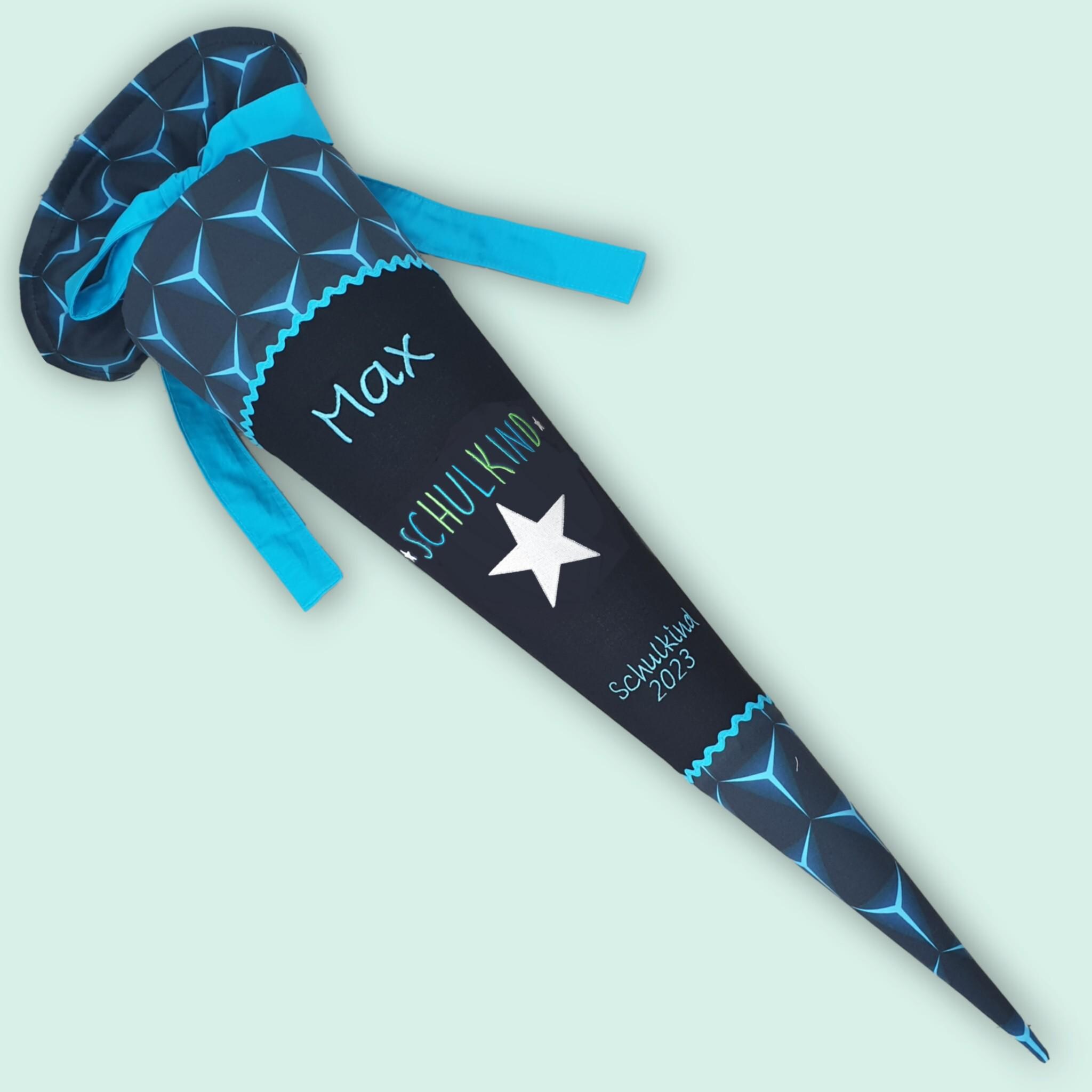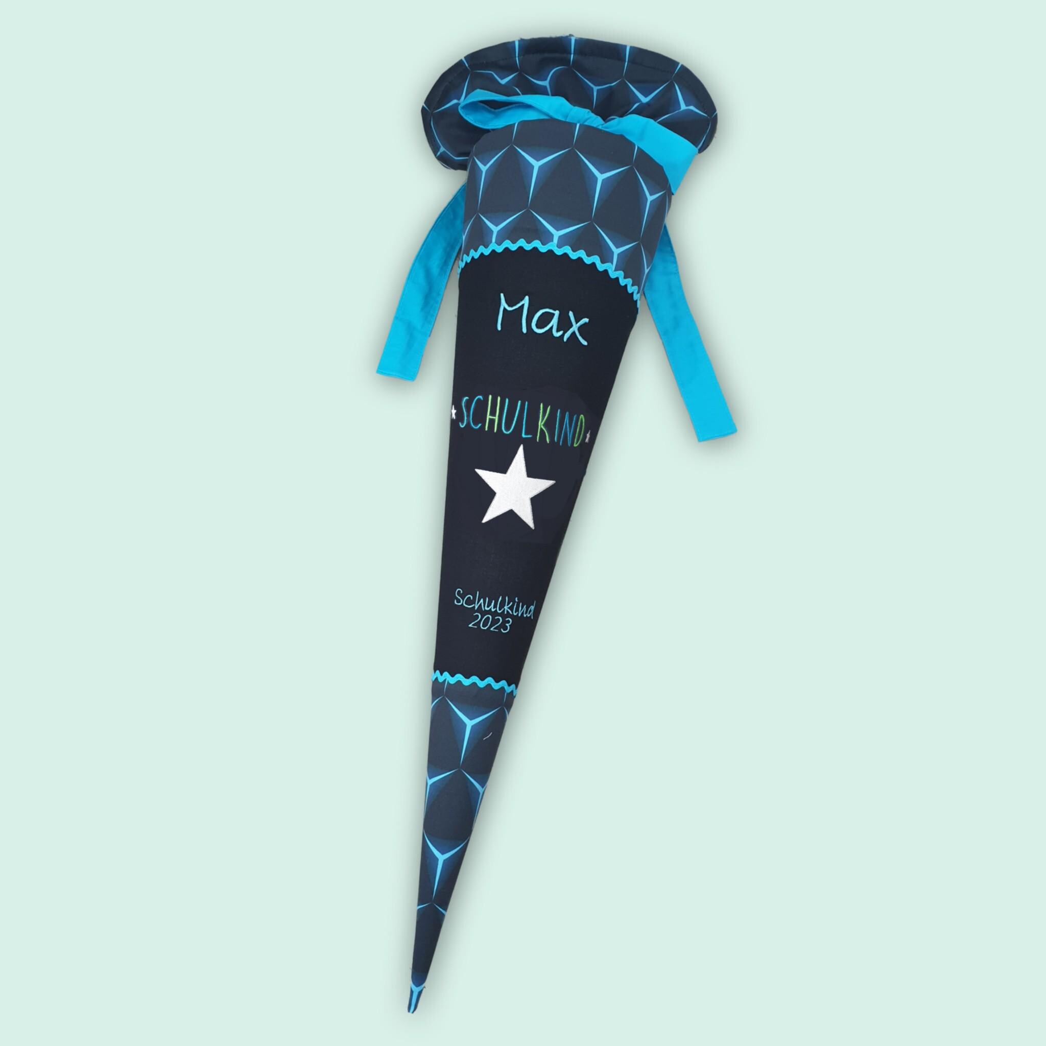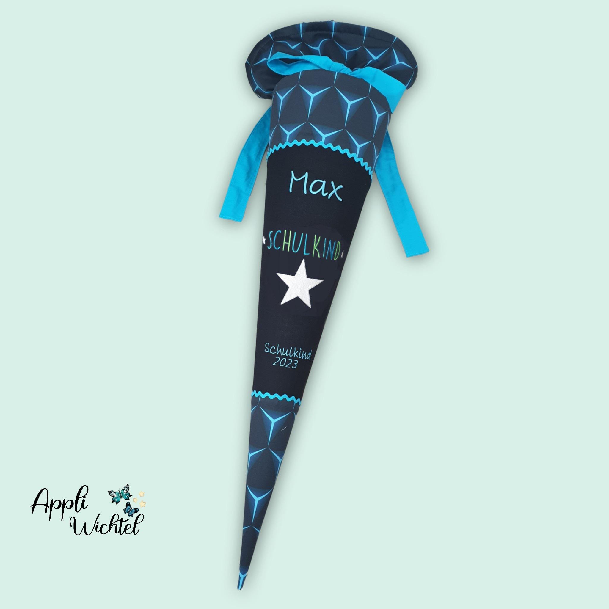 Jede Schultüte wird mit einem gestickten Motiv und dem Namen deines Kindes individuell gestaltet. Auf Wunsch fügen wir auch das Datum des ersten Schultages hinzu.