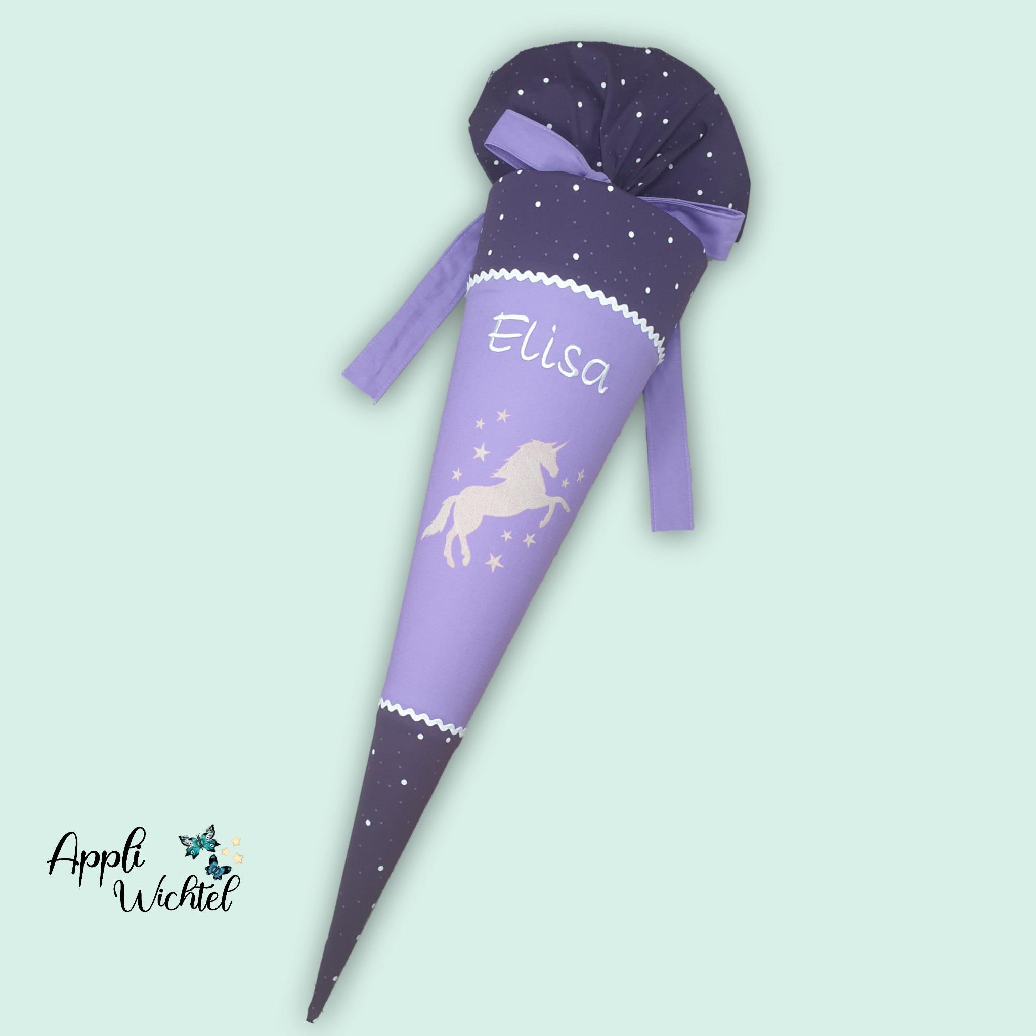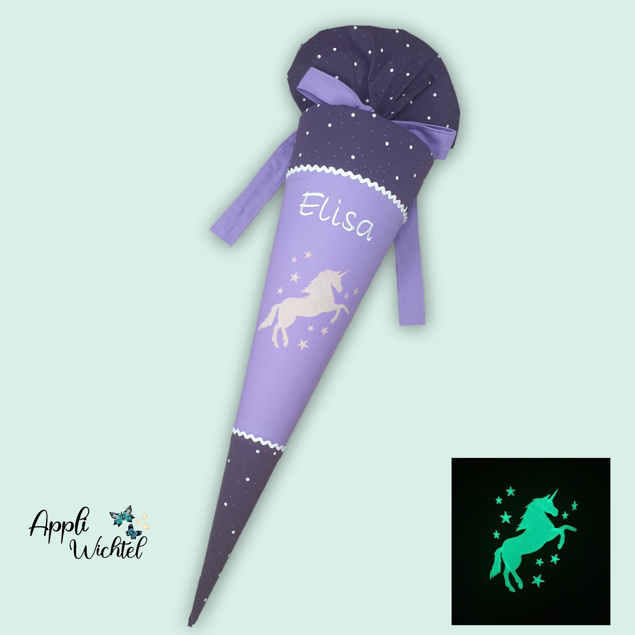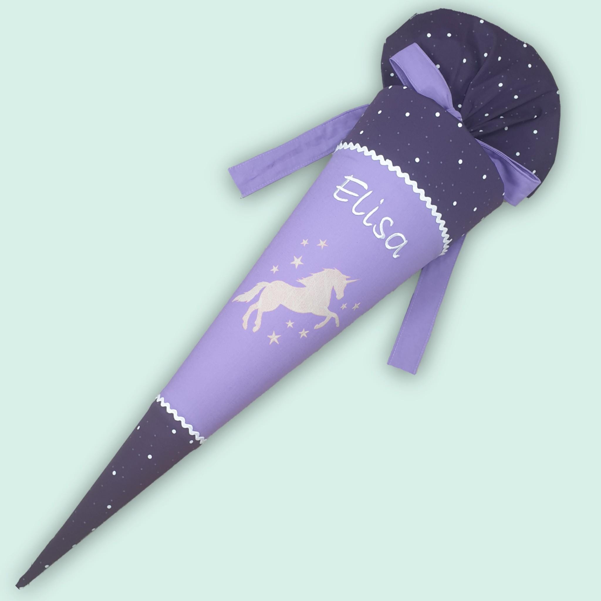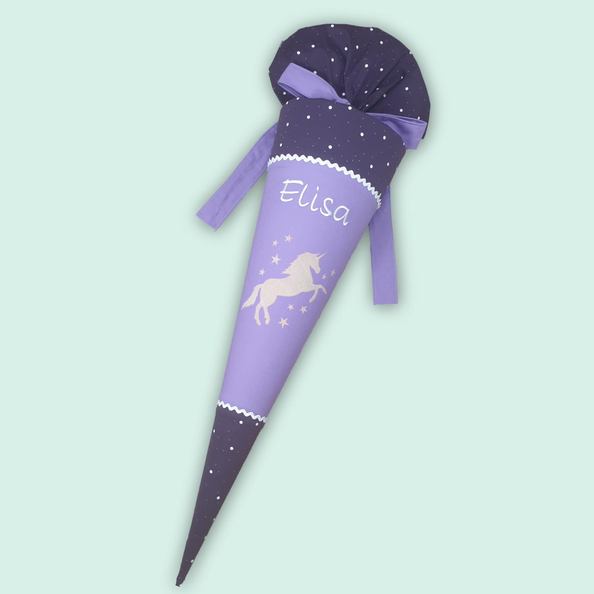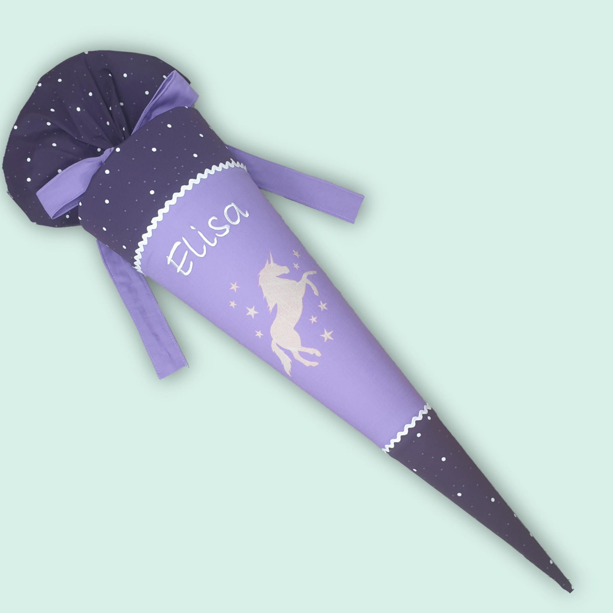 Schultüte mit Einhorn und Namen farblich auf den Sternguckbär Schulranzen abgestimmt.