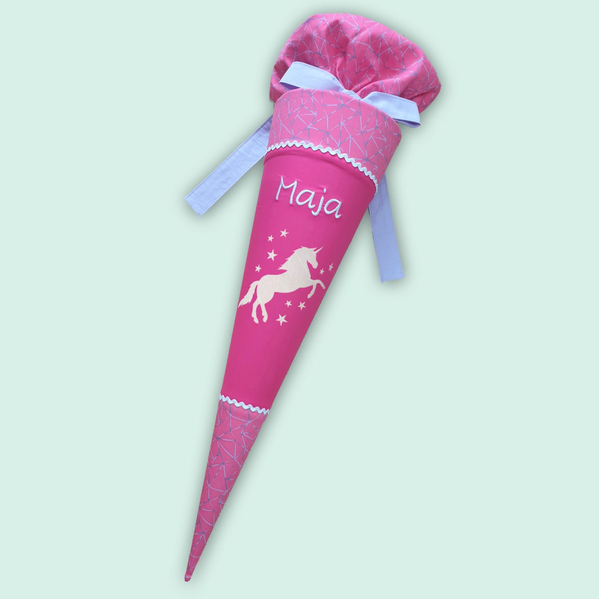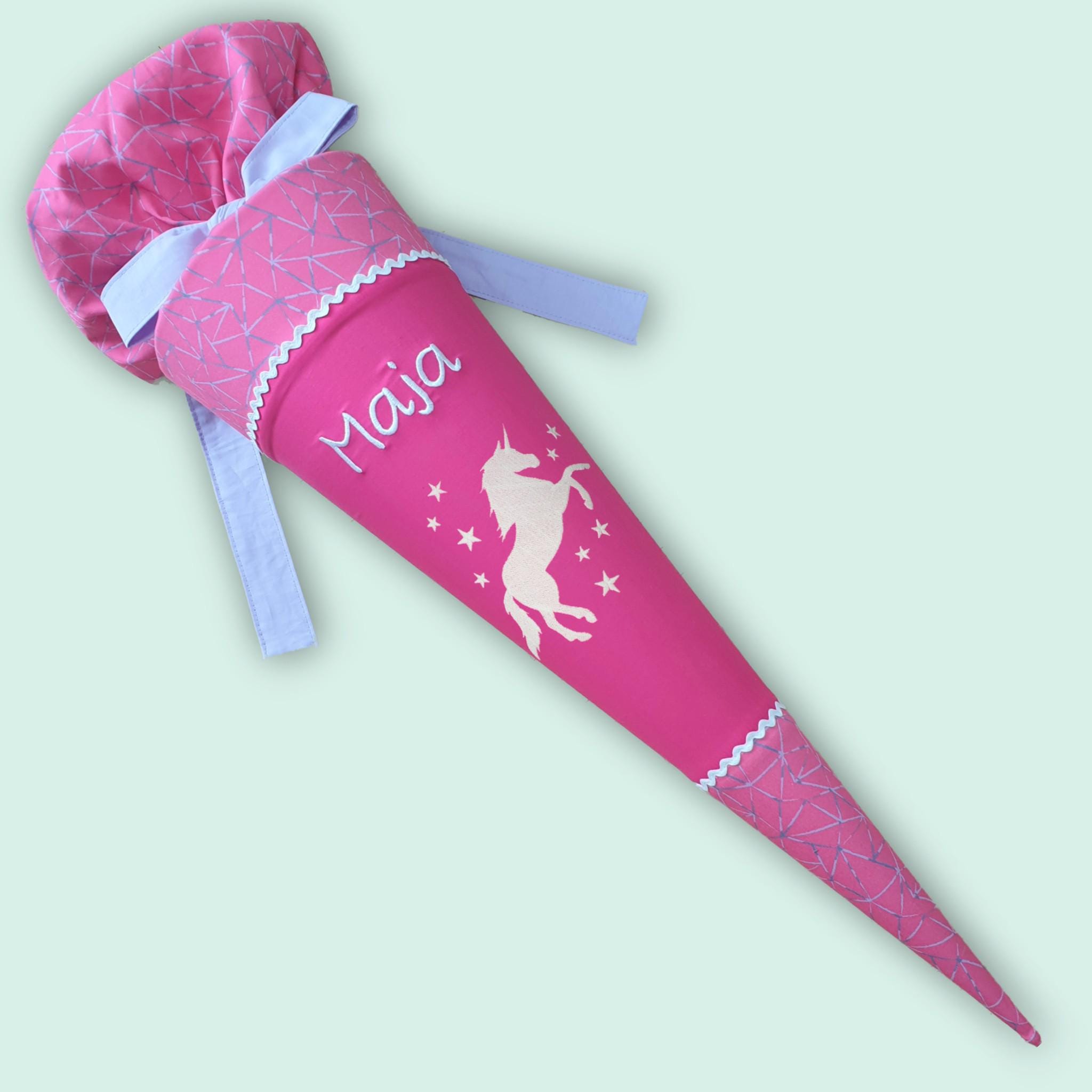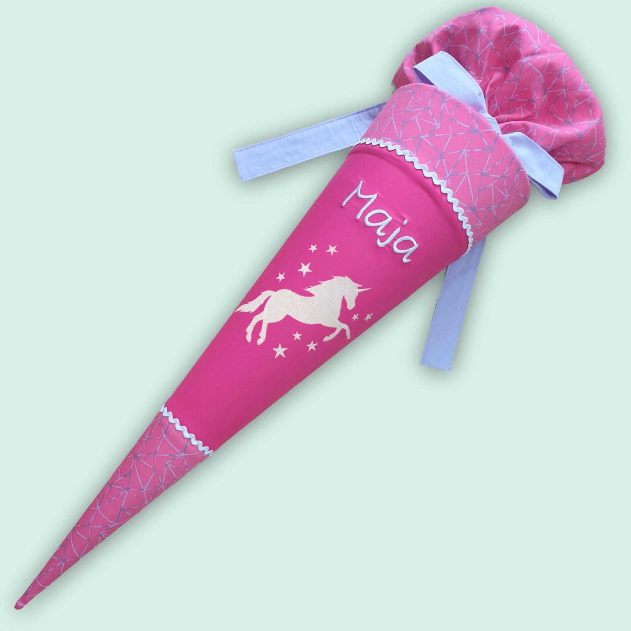 Schultüte mit Einhorn und Namen farblich auf den Star Stella Schulranzen abgestimmt.