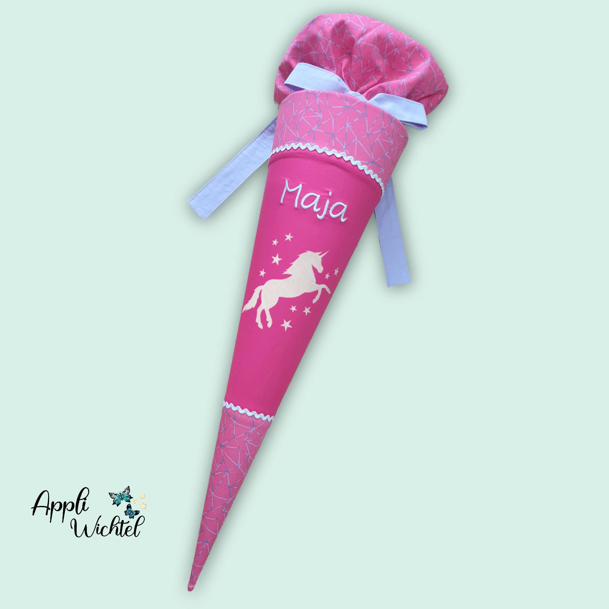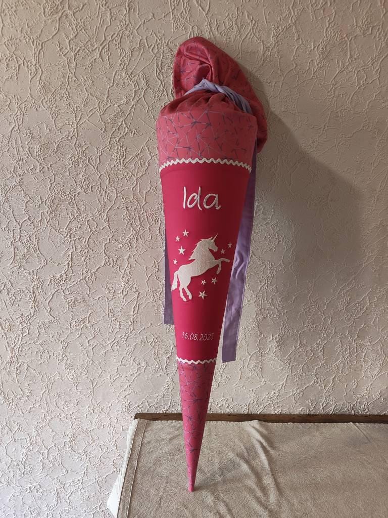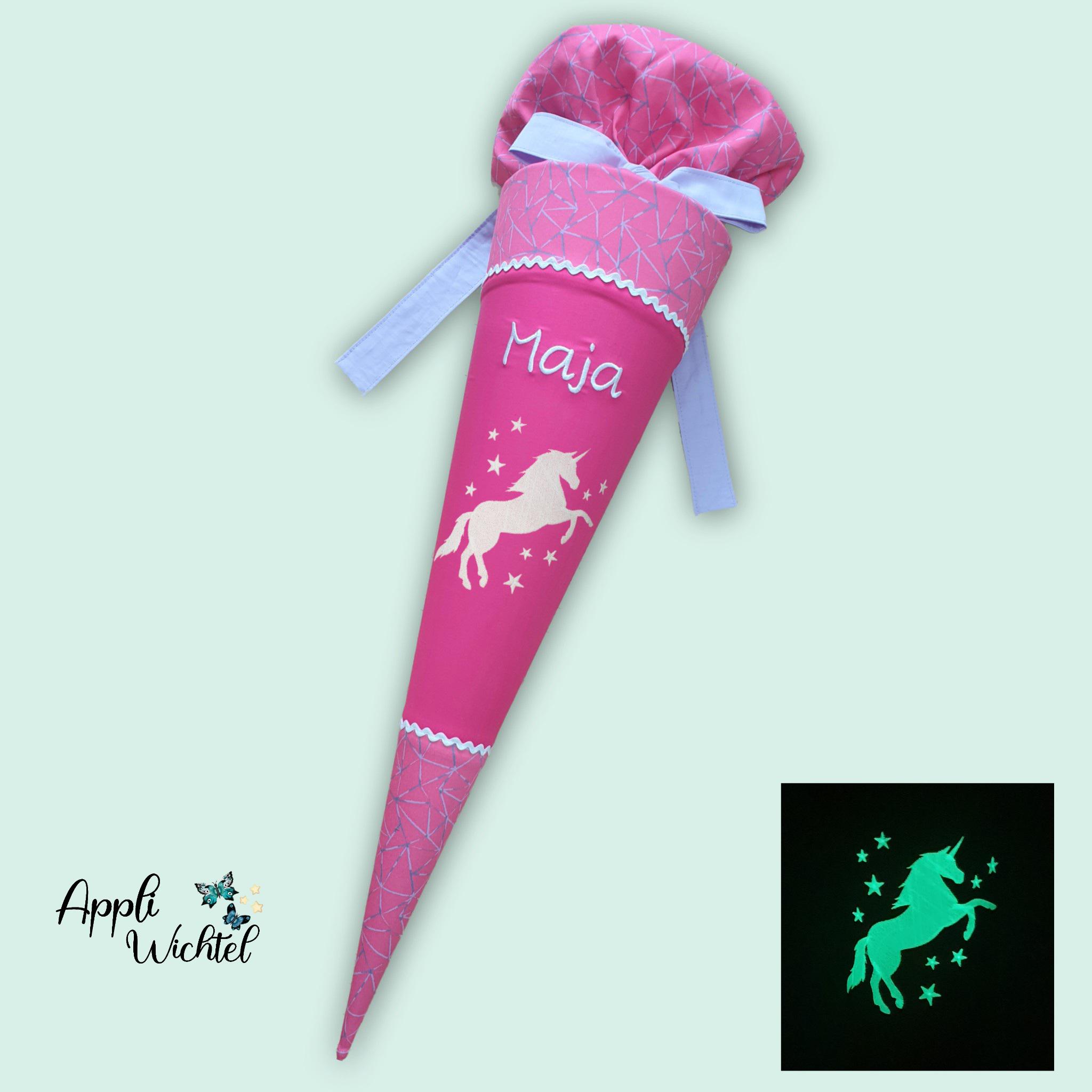 Schultüte mit Einhorn und Namen farblich auf den Star Stella Schulranzen abgestimmt.