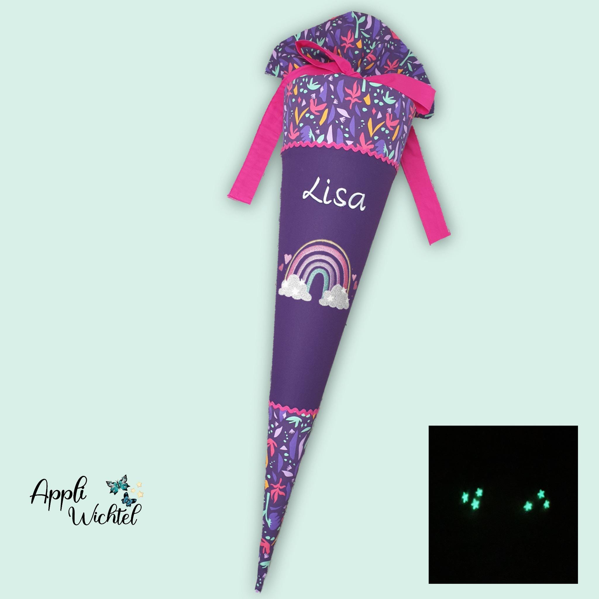 Jede Schultüte wird mit einem gestickten Motiv und dem Namen deines Kindes individuell gestaltet. Auf Wunsch fügen wir auch das Datum des ersten Schultages hinzu.