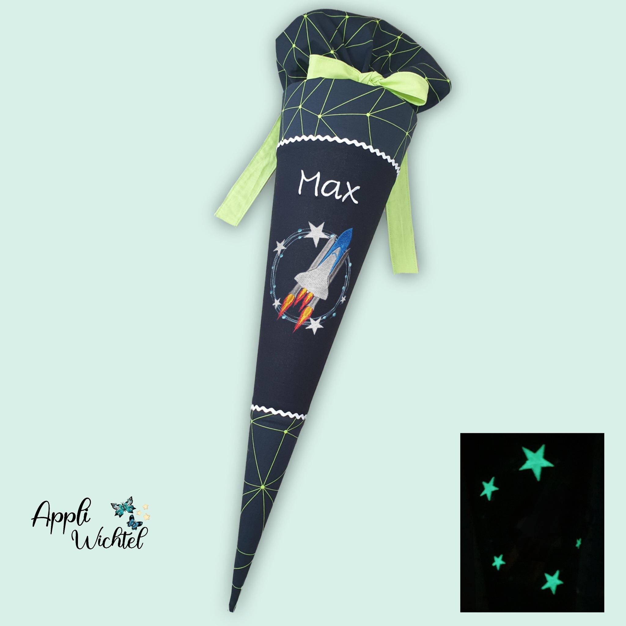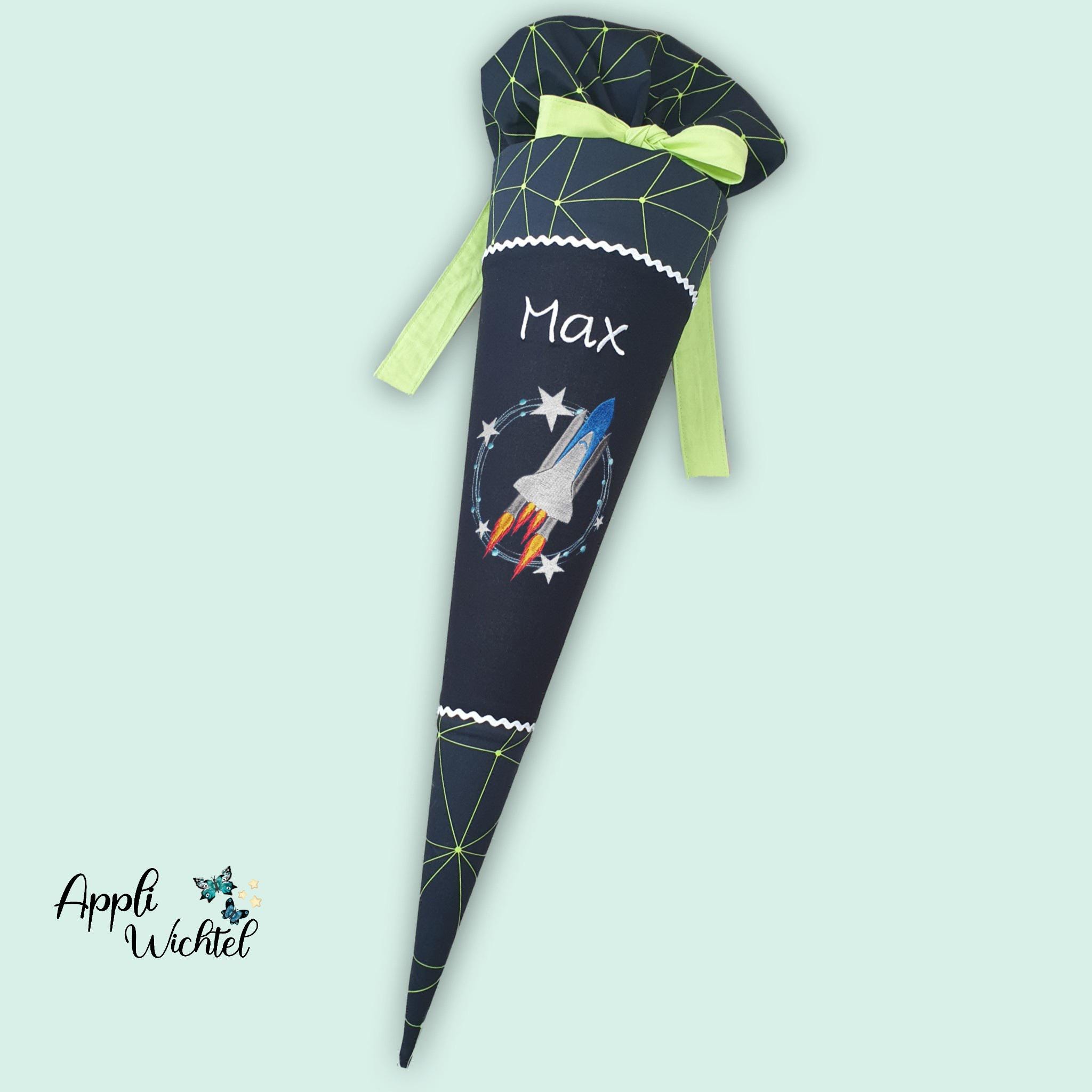Jede Schultüte wird mit einem gestickten Motiv und dem Namen deines Kindes individuell gestaltet. Auf Wunsch fügen wir auch das Datum des ersten Schultages hinzu.