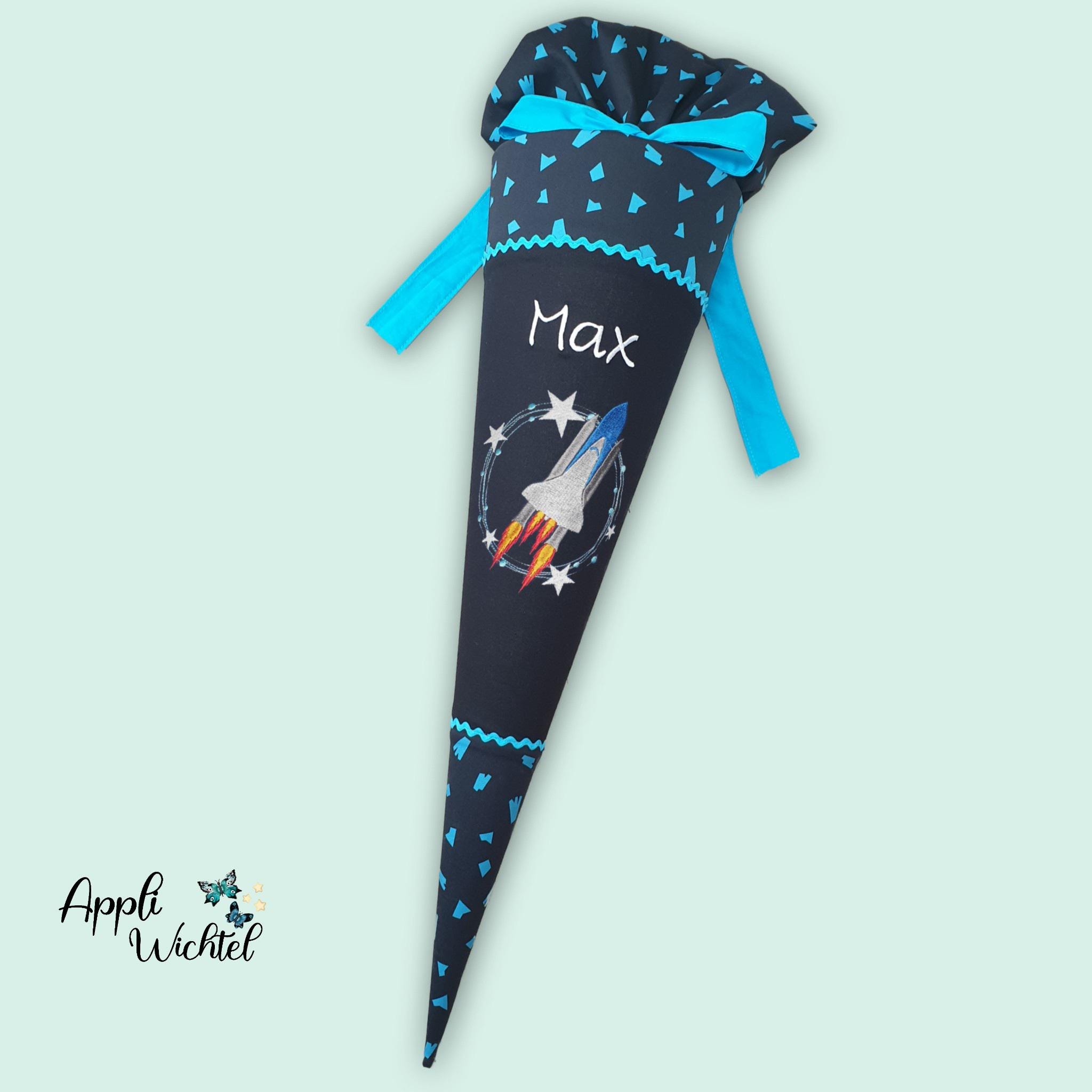 Jede Schultüte wird mit einem gestickten Motiv und dem Namen deines Kindes individuell gestaltet. Auf Wunsch fügen wir auch das Datum des ersten Schultages hinzu.