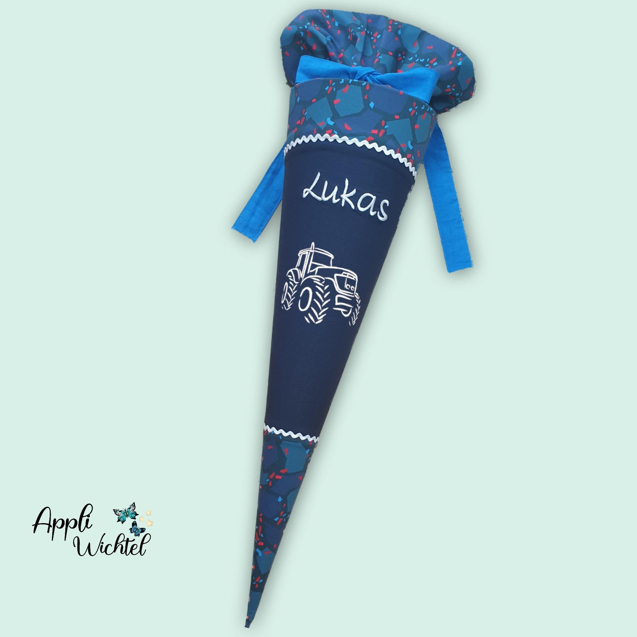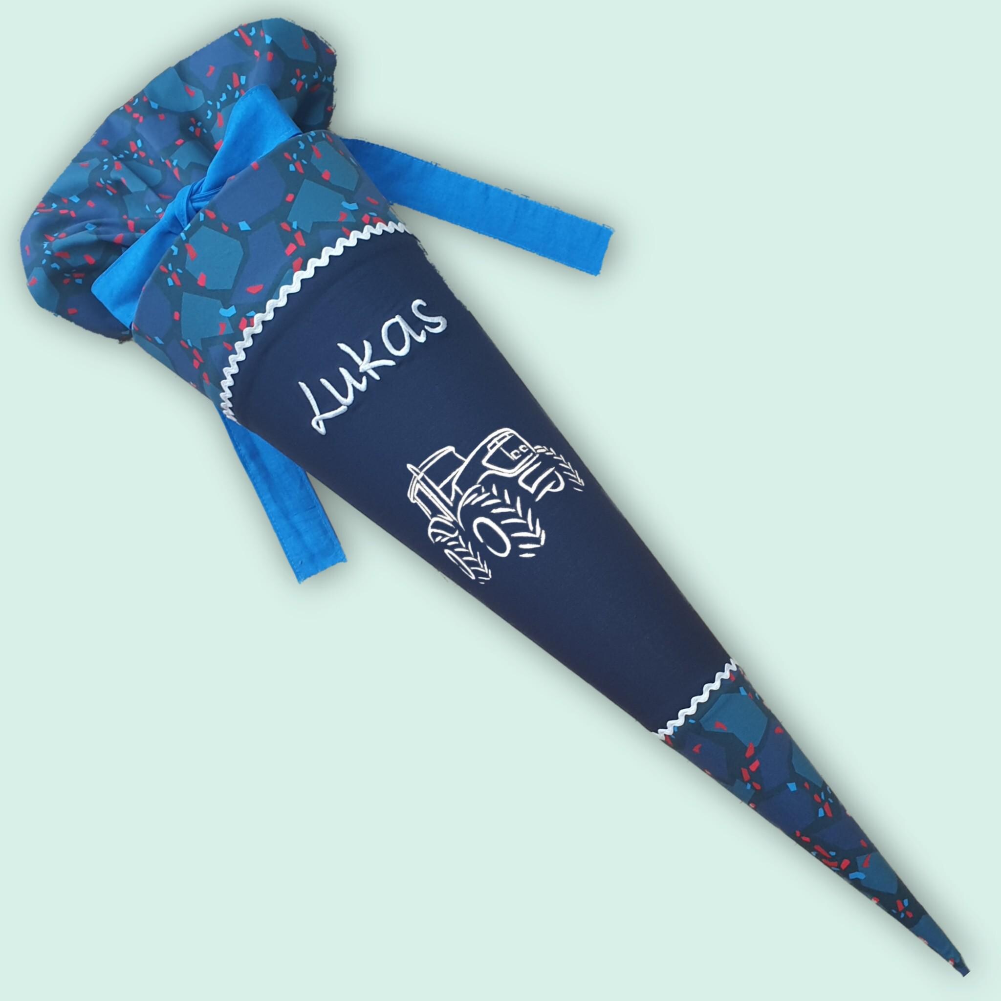 Die Stoffhülle ist aus Baumwollstoffen gefertigt und mindestens 20 cm länger als die eigentliche Schultüte, sodass sie perfekt passt und sich gut befüllen und verschließen lässt.
