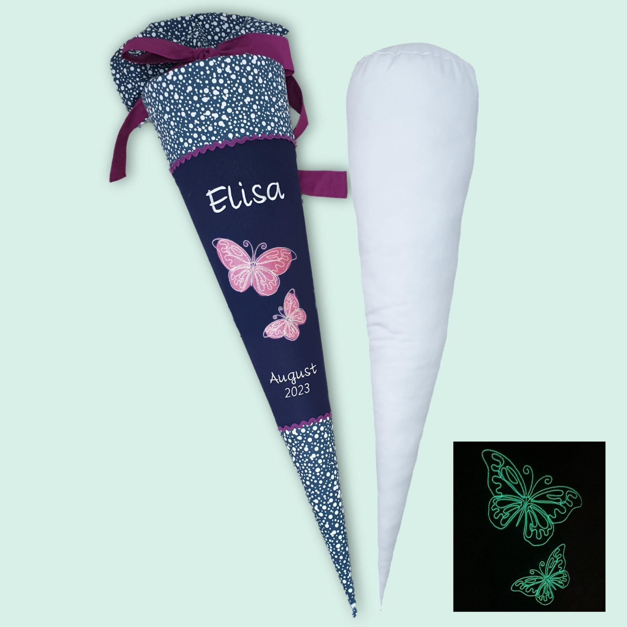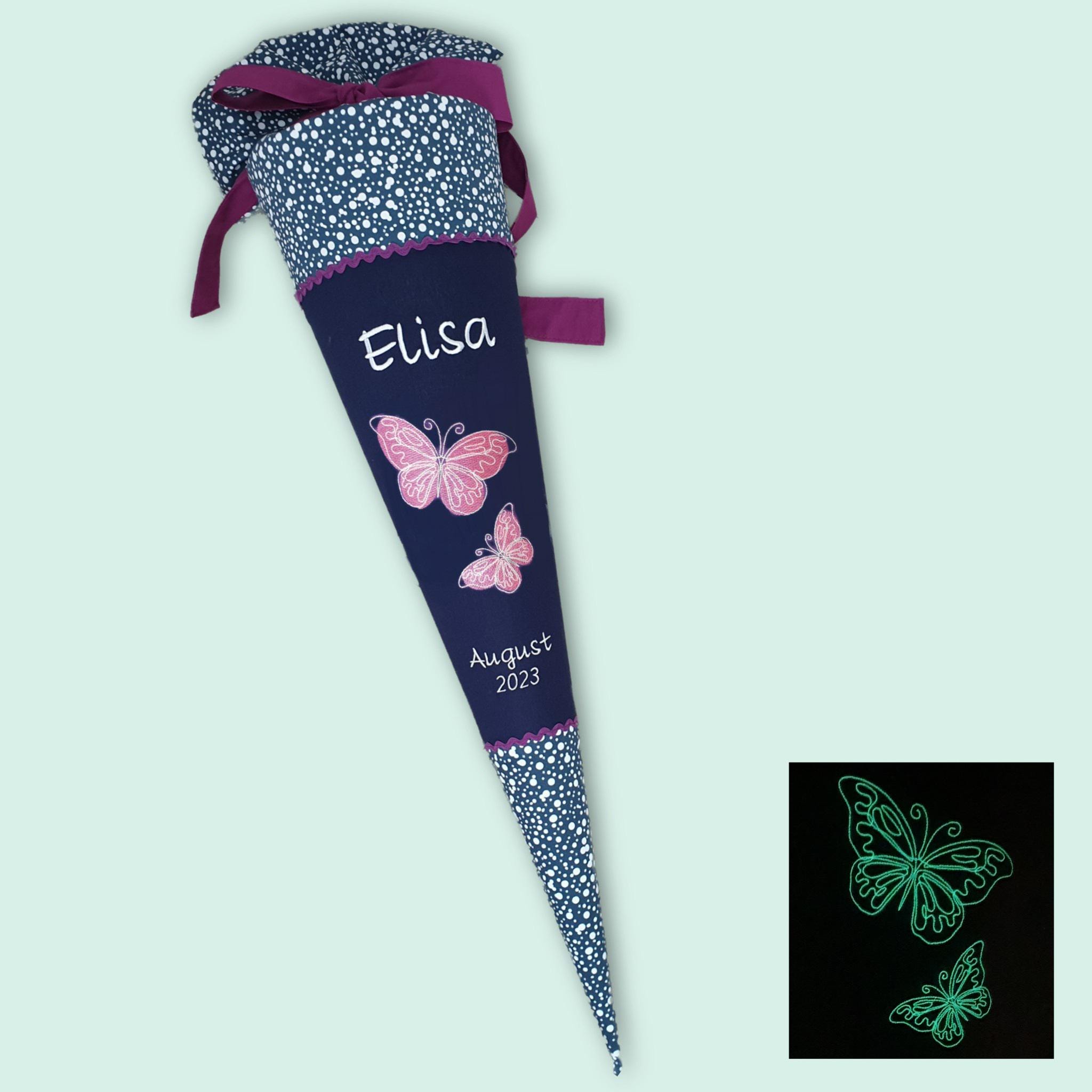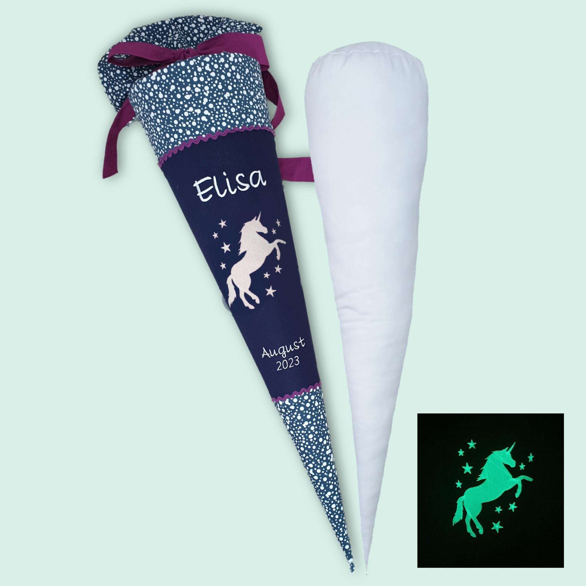 70 cm Schultüte Regenbogen Stern Schmettterling Einhorn (einige leuchten im Dunkleln) und Namen farblich auf den Ergobag Bärlaxy Schulranzen abgestimmt.