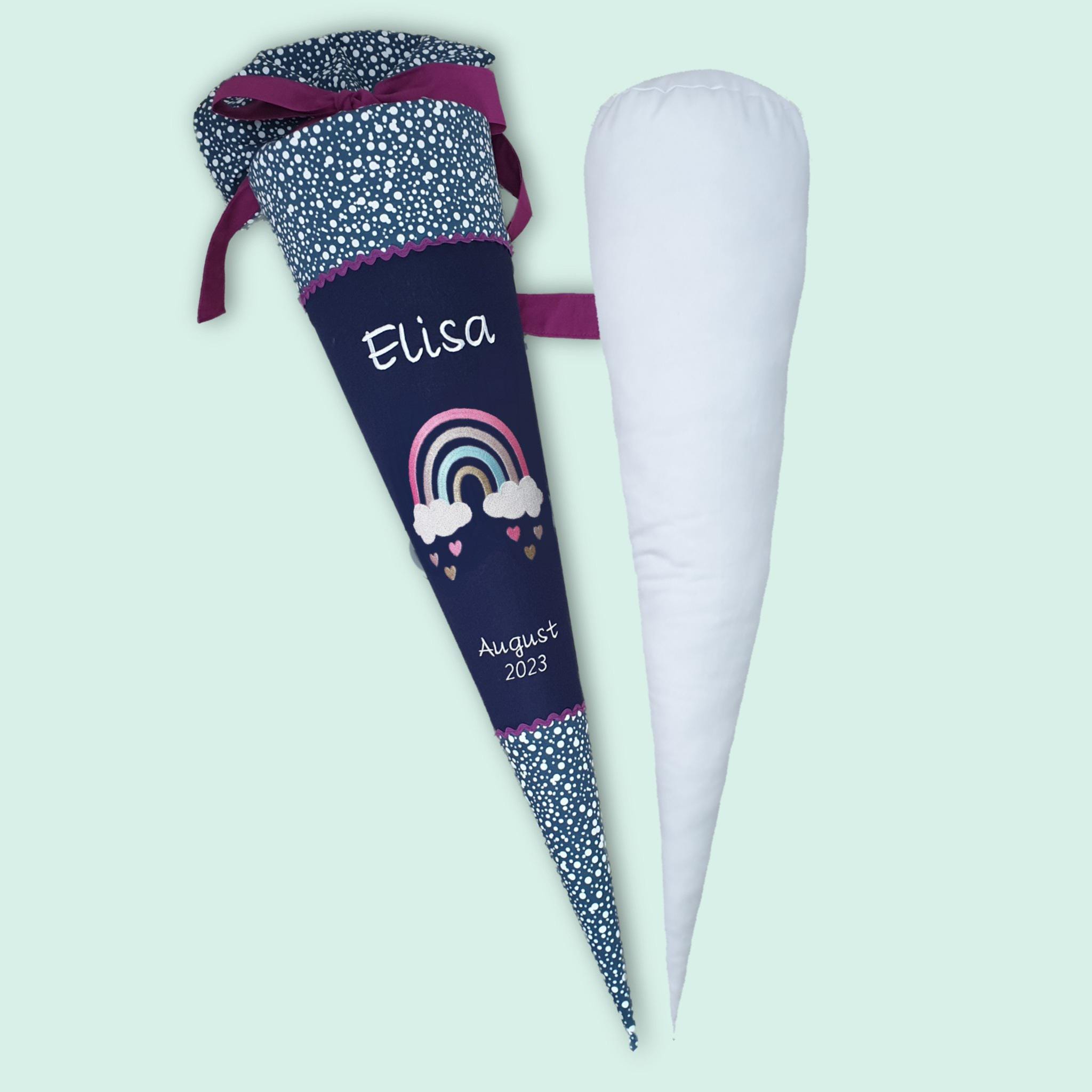 Jede Schultüte wird mit einem gestickten Motiv und dem Namen deines Kindes individuell gestaltet. Auf Wunsch fügen wir auch das Datum des ersten Schultages hinzu.