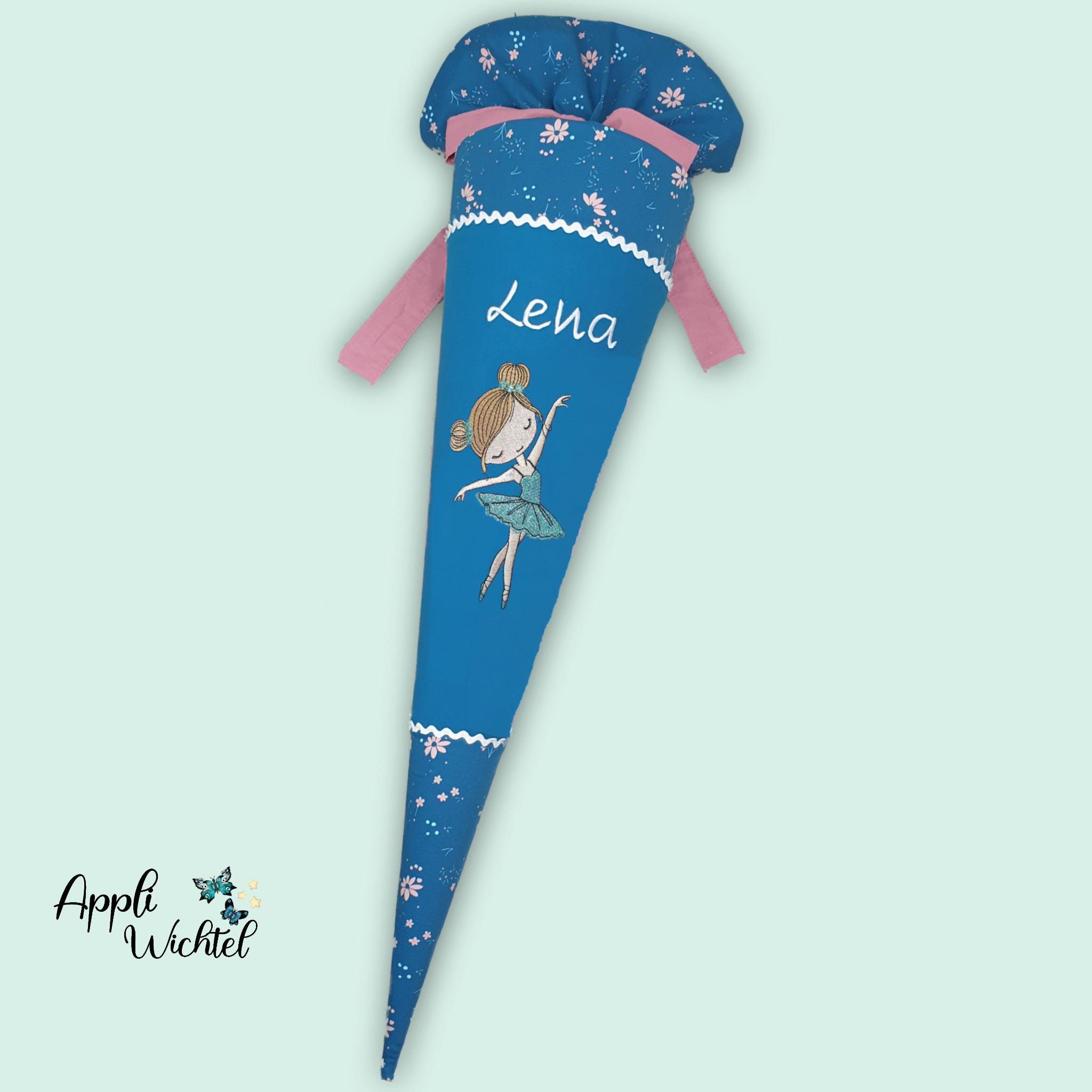 Jede Schultüte wird mit einem gestickten Motiv und dem Namen deines Kindes individuell gestaltet. Auf Wunsch fügen wir auch das Datum des ersten Schultages hinzu.