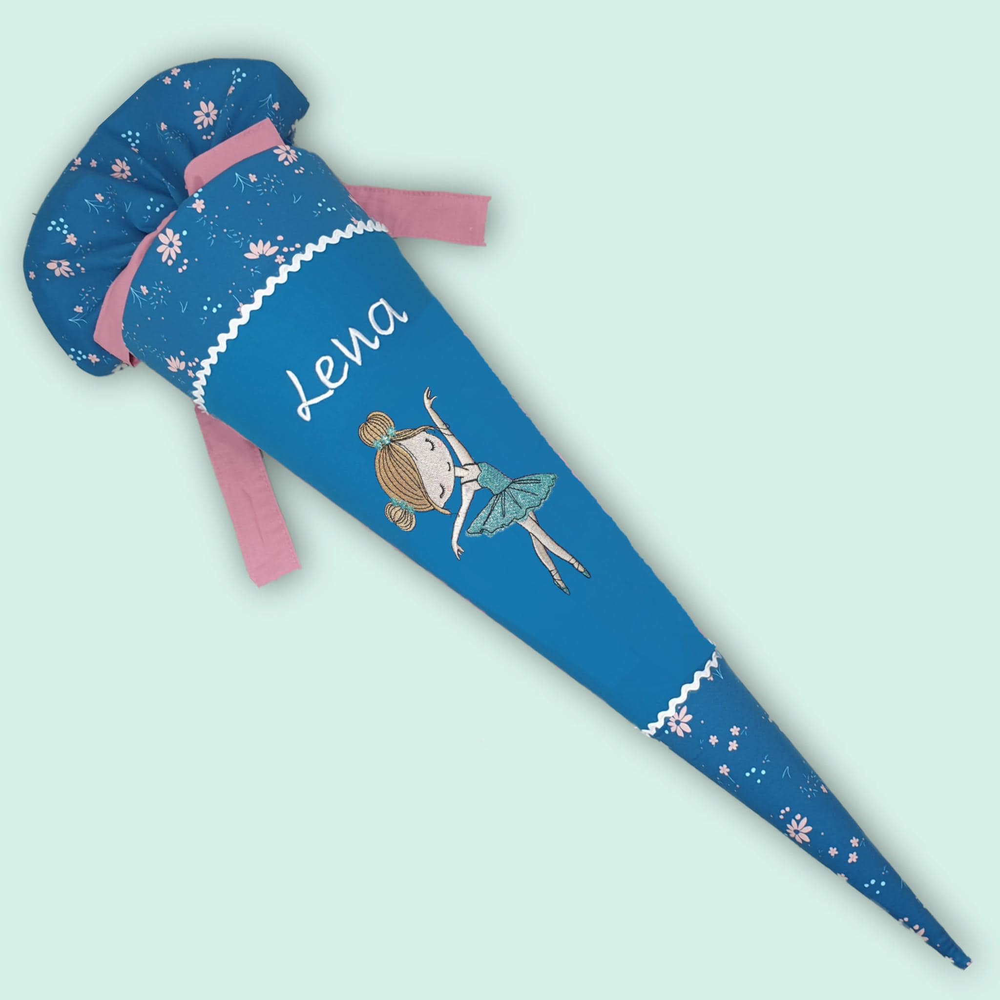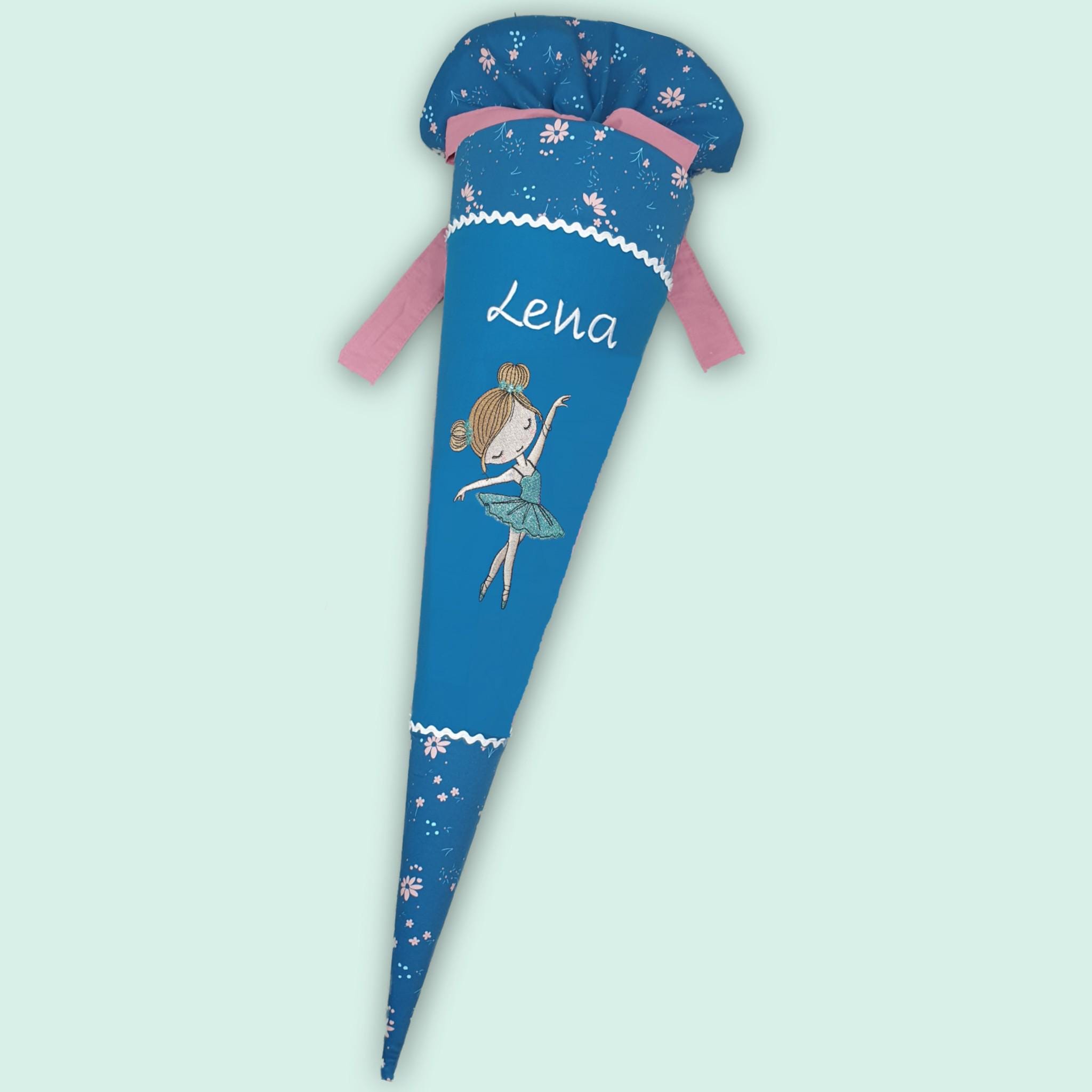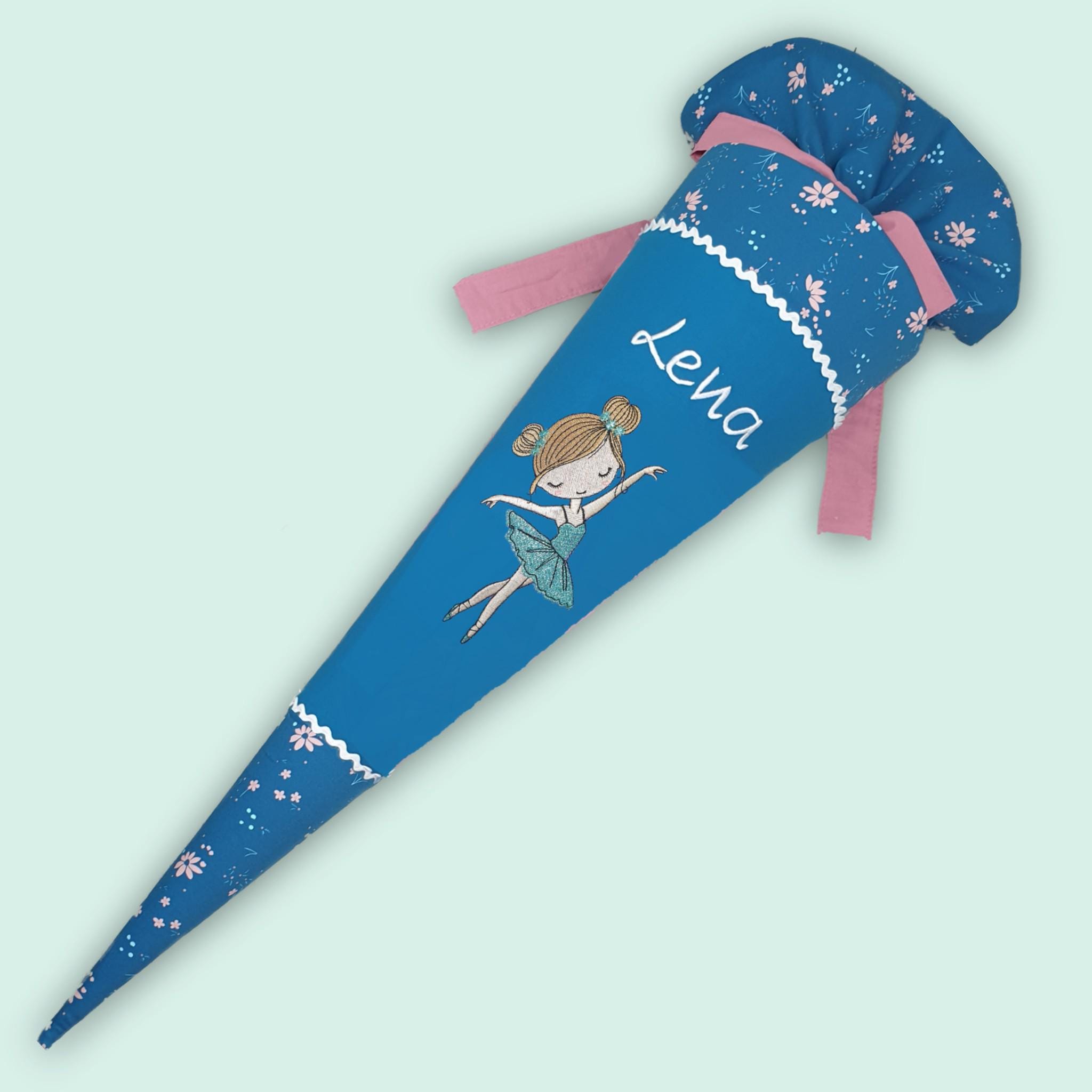 Schultüte mit Tänzerin und Namen farblich auf den Step by step Wild Horse Ronja abgestimmt.