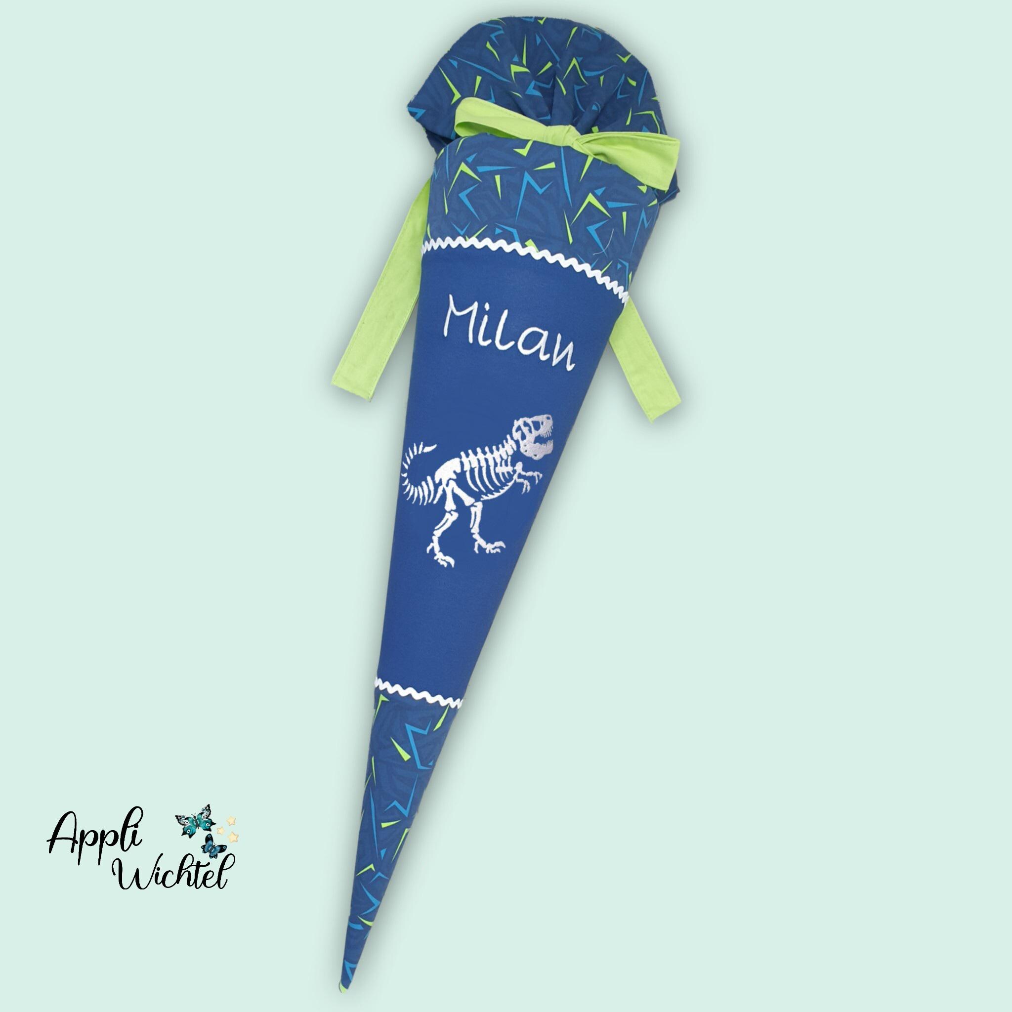 Jede Schultüte wird mit einem gestickten Motiv und dem Namen deines Kindes individuell gestaltet. Auf Wunsch fügen wir auch das Datum des ersten Schultages hinzu.
