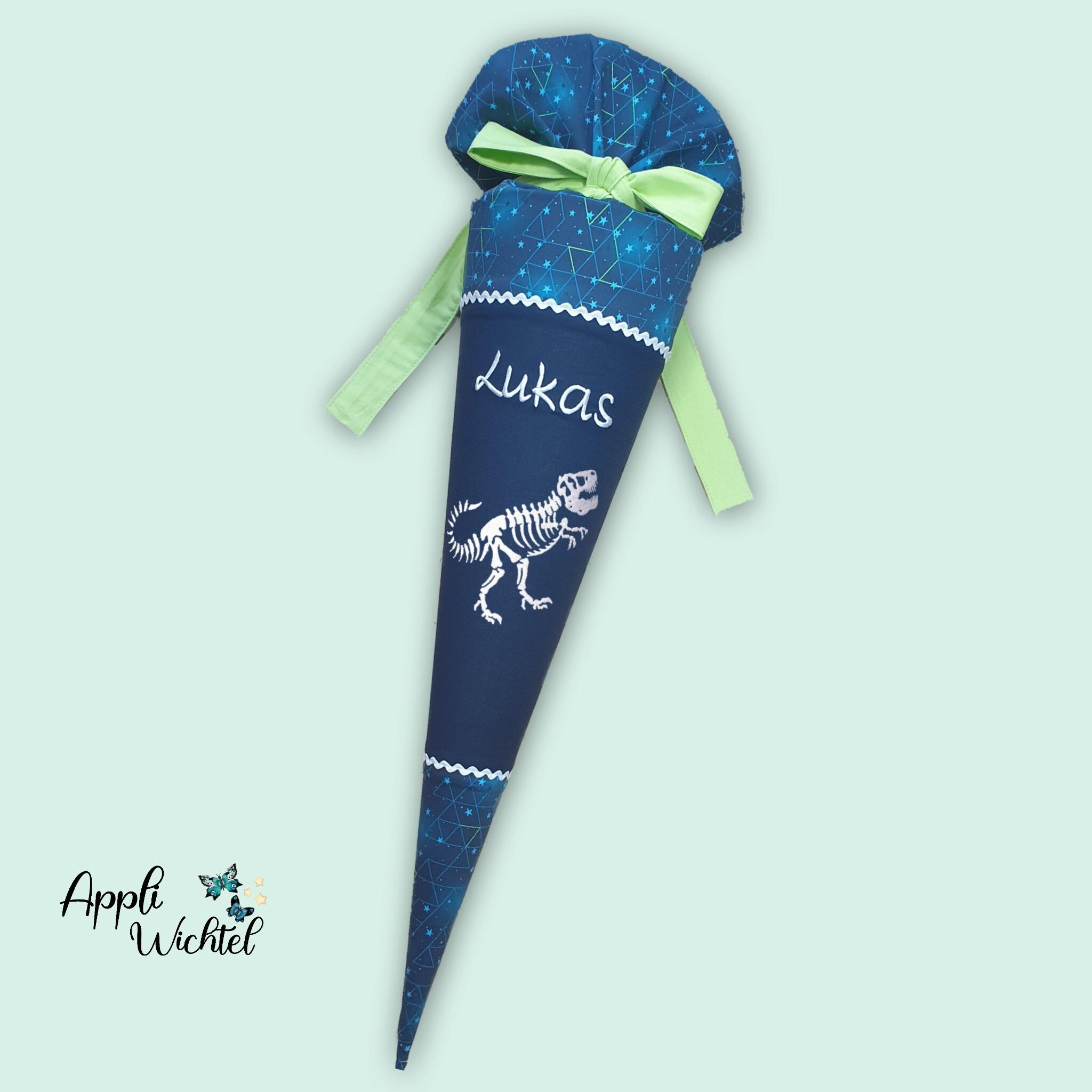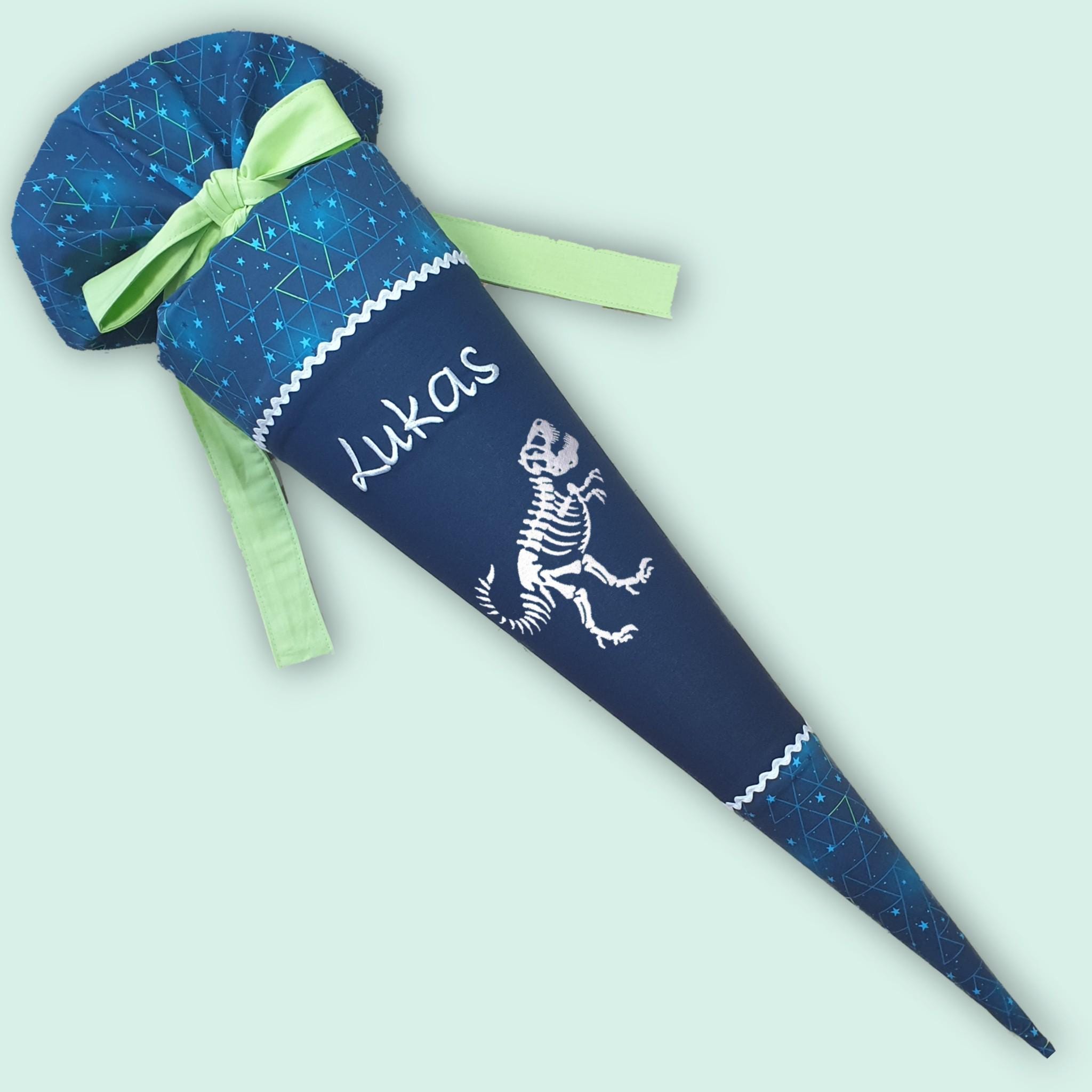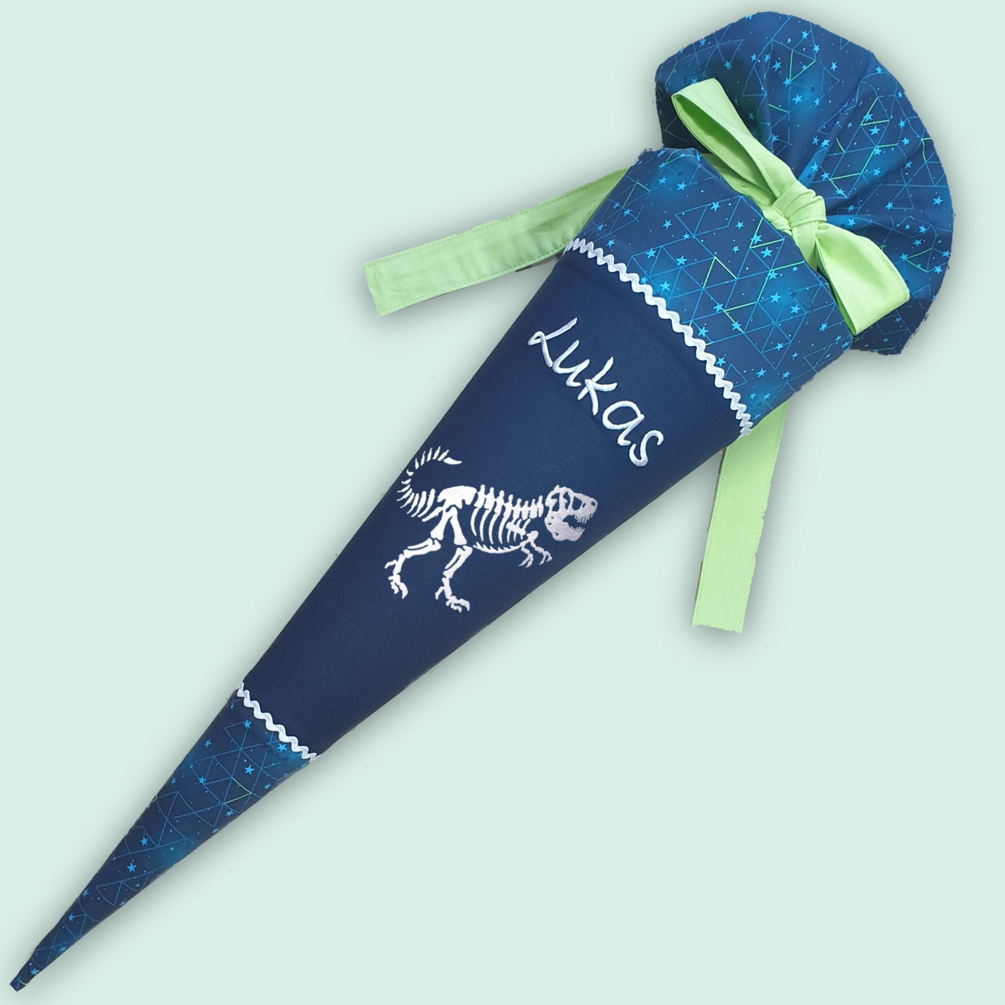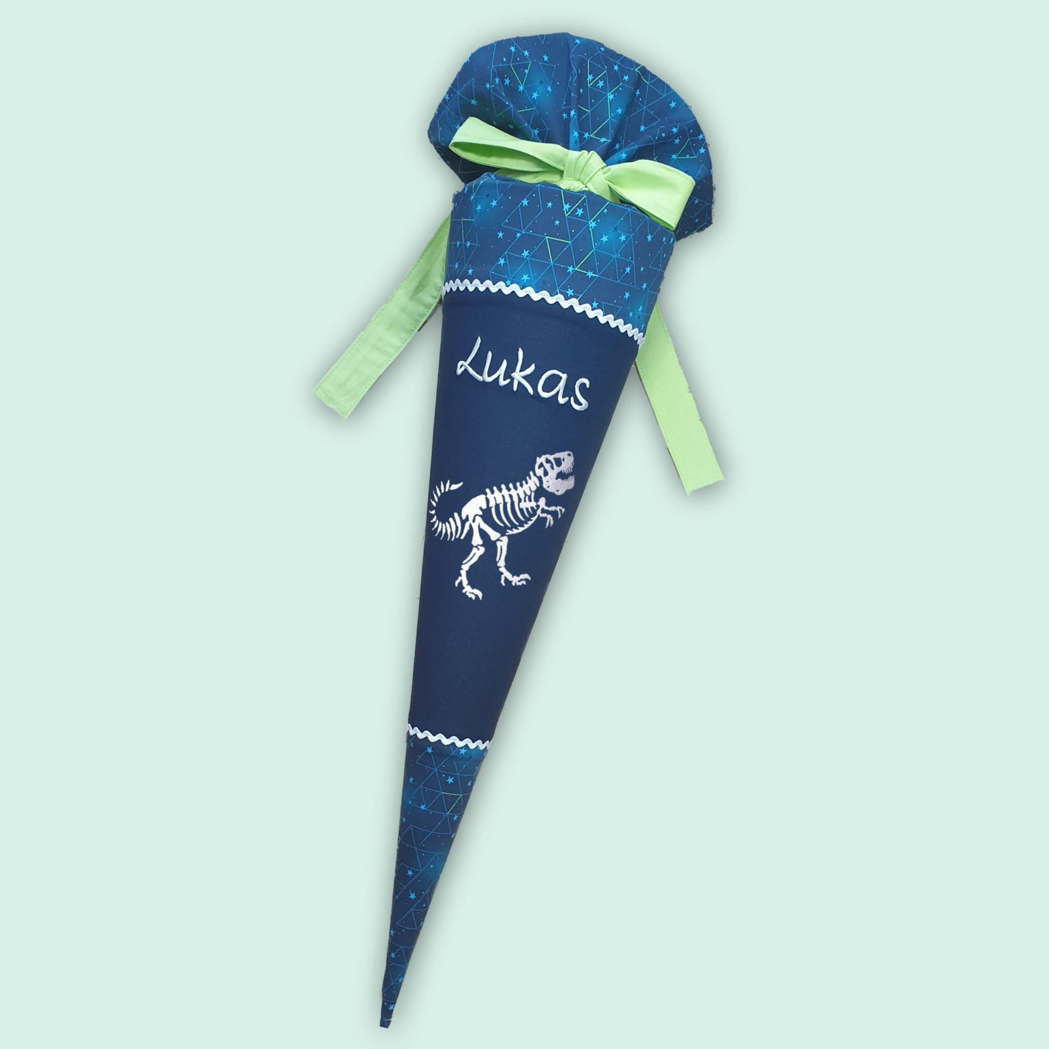 Schultüte mit Dinosaurier und Namen farblich auf den Step by Step Starship Galactus Schulranzen abgestimmt.